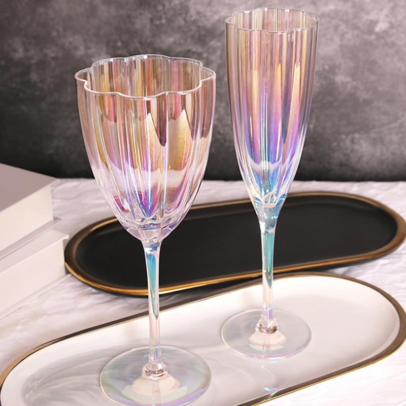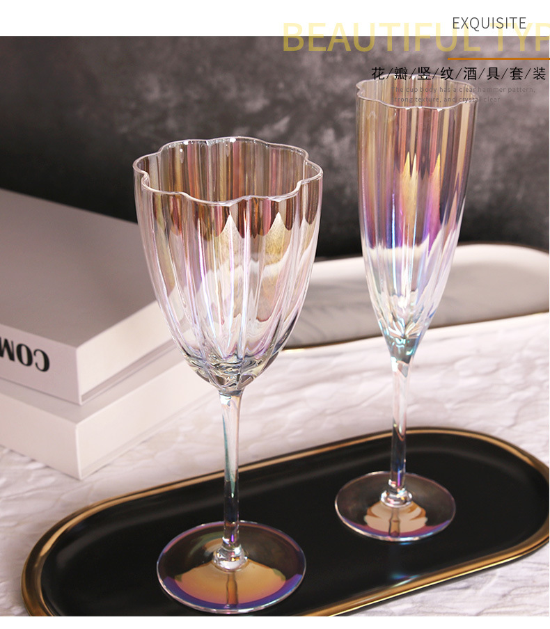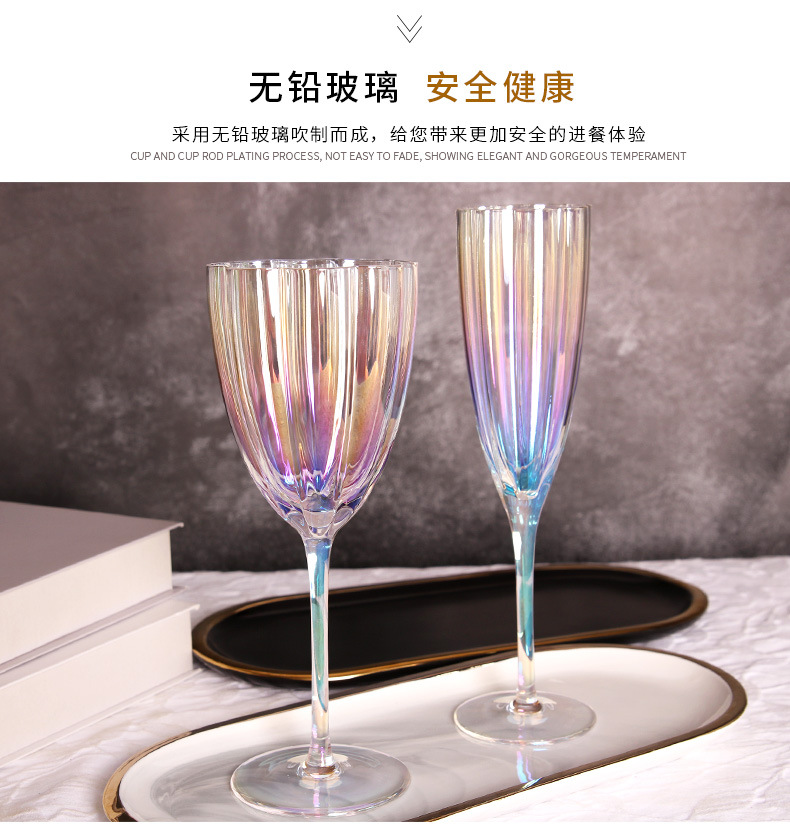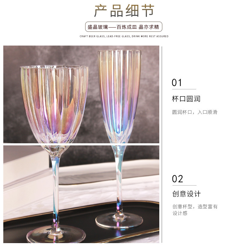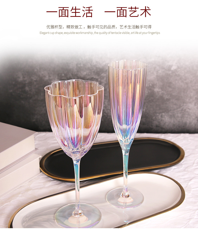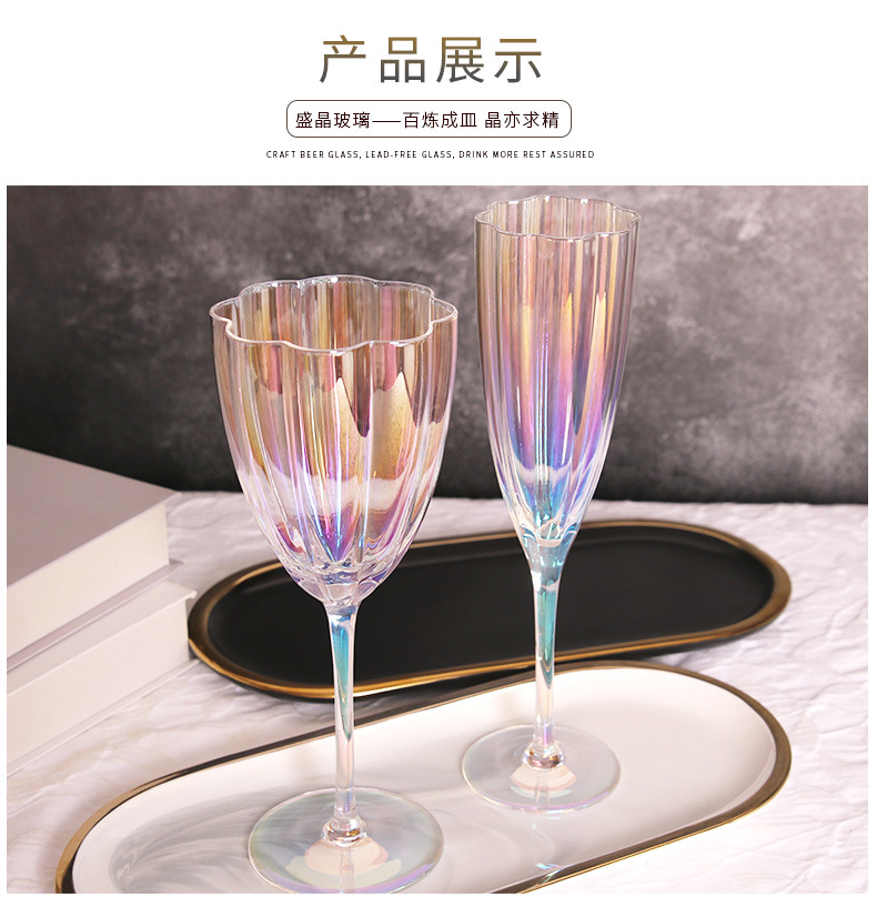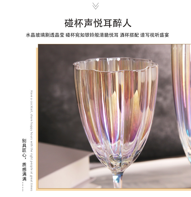 复古高脚杯炫彩色花朵杯高档玻璃红酒杯香槟杯欧式vintage中古杯
