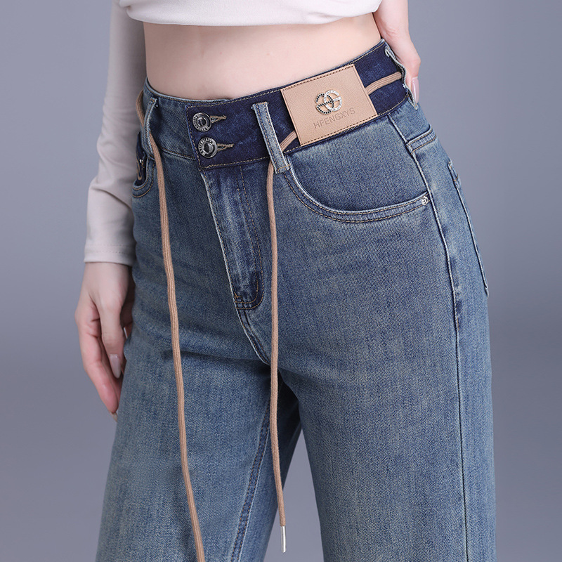 5002春秋季直筒牛仔裤女韩版宽松百搭阔腿牛仔长裤子亲肤透气女裤