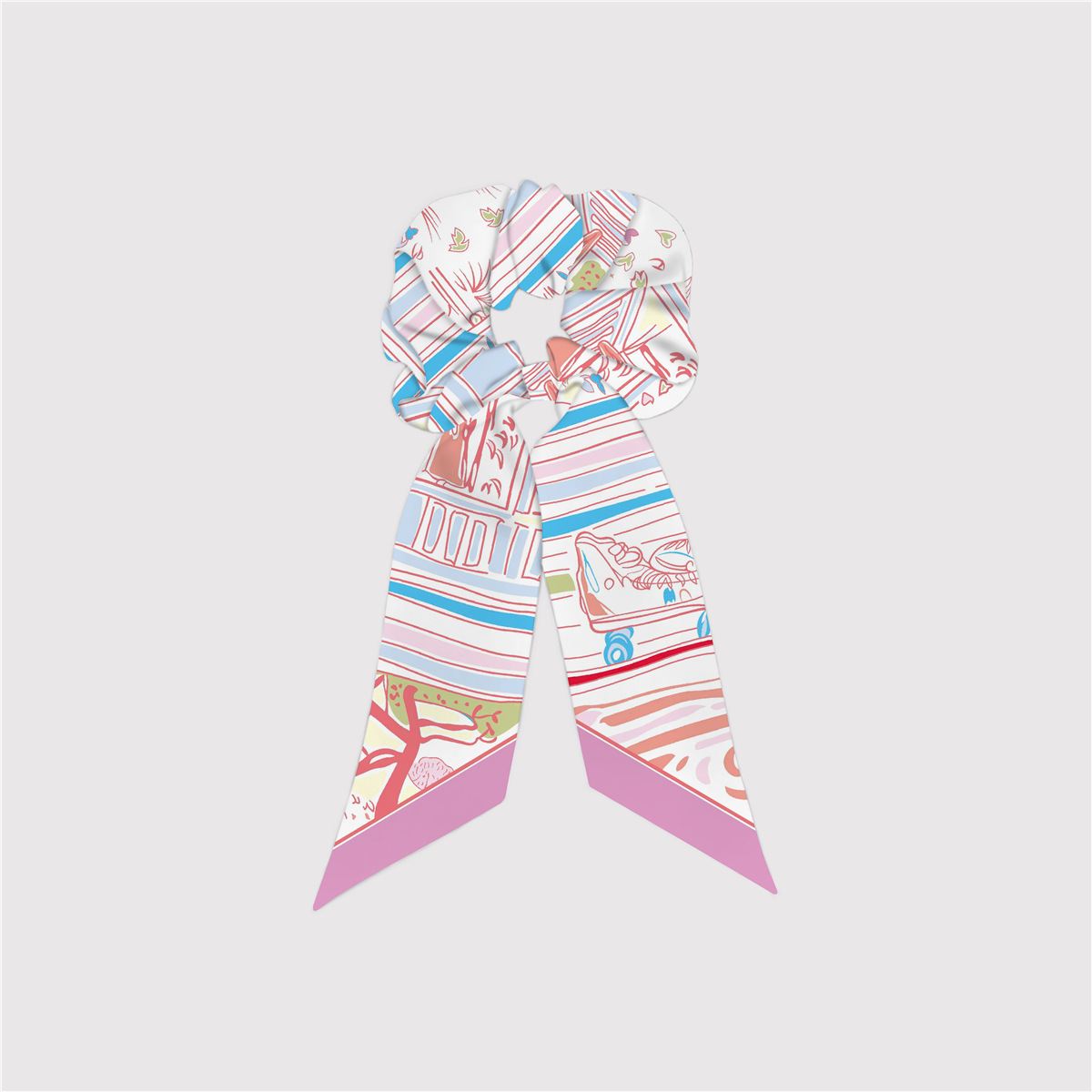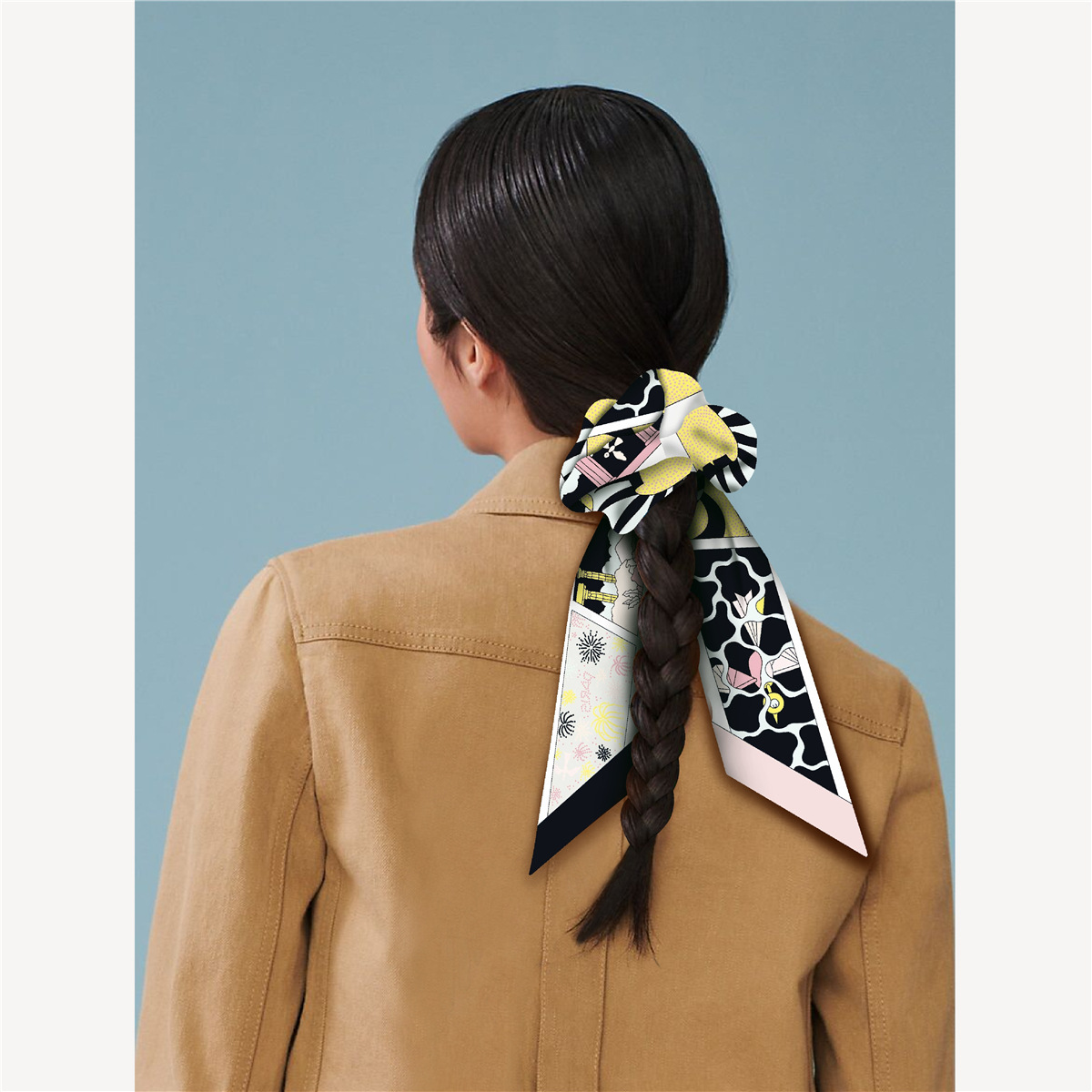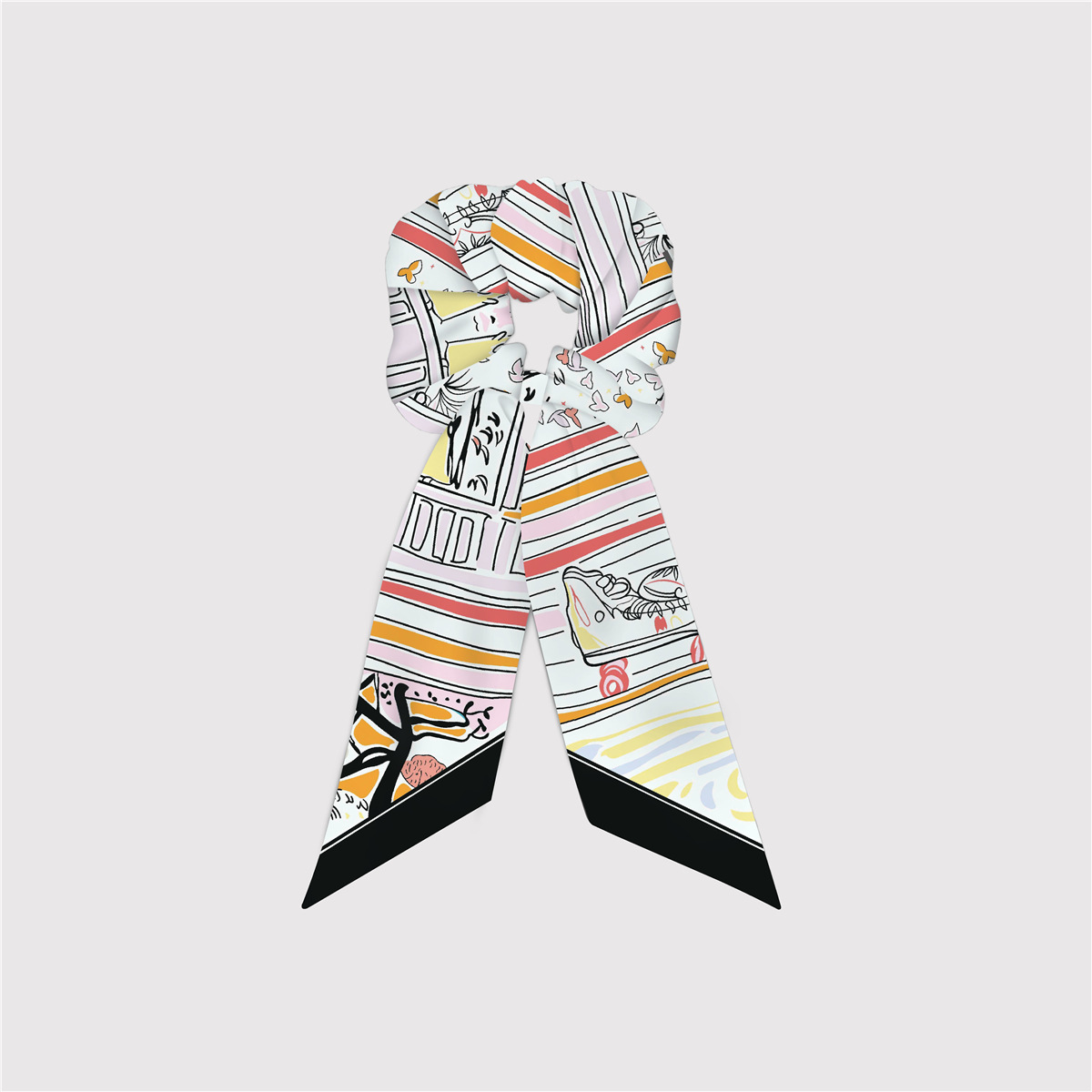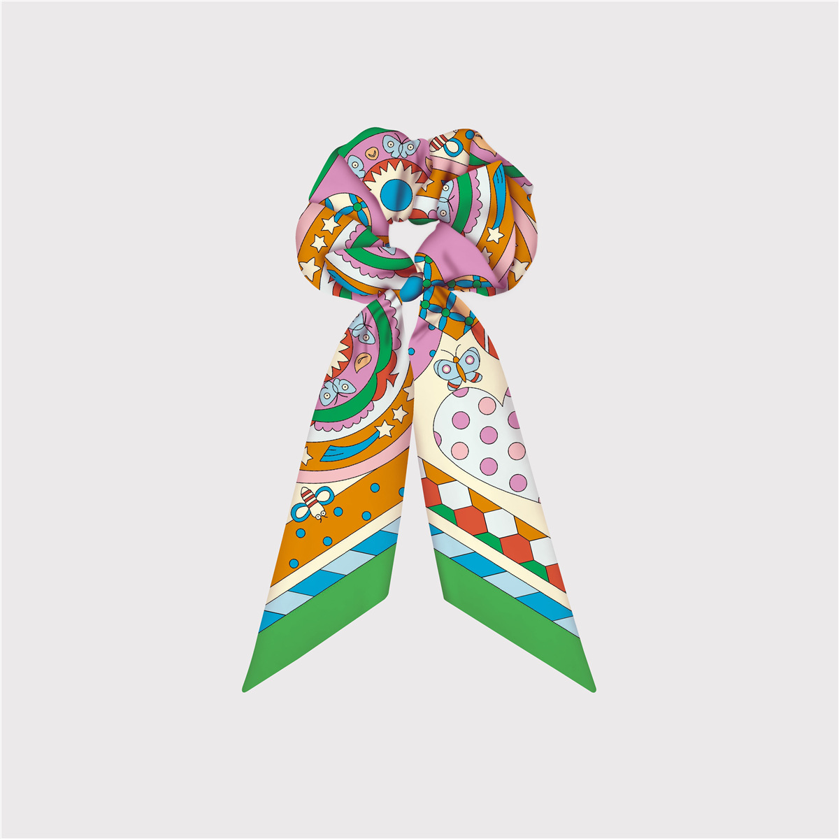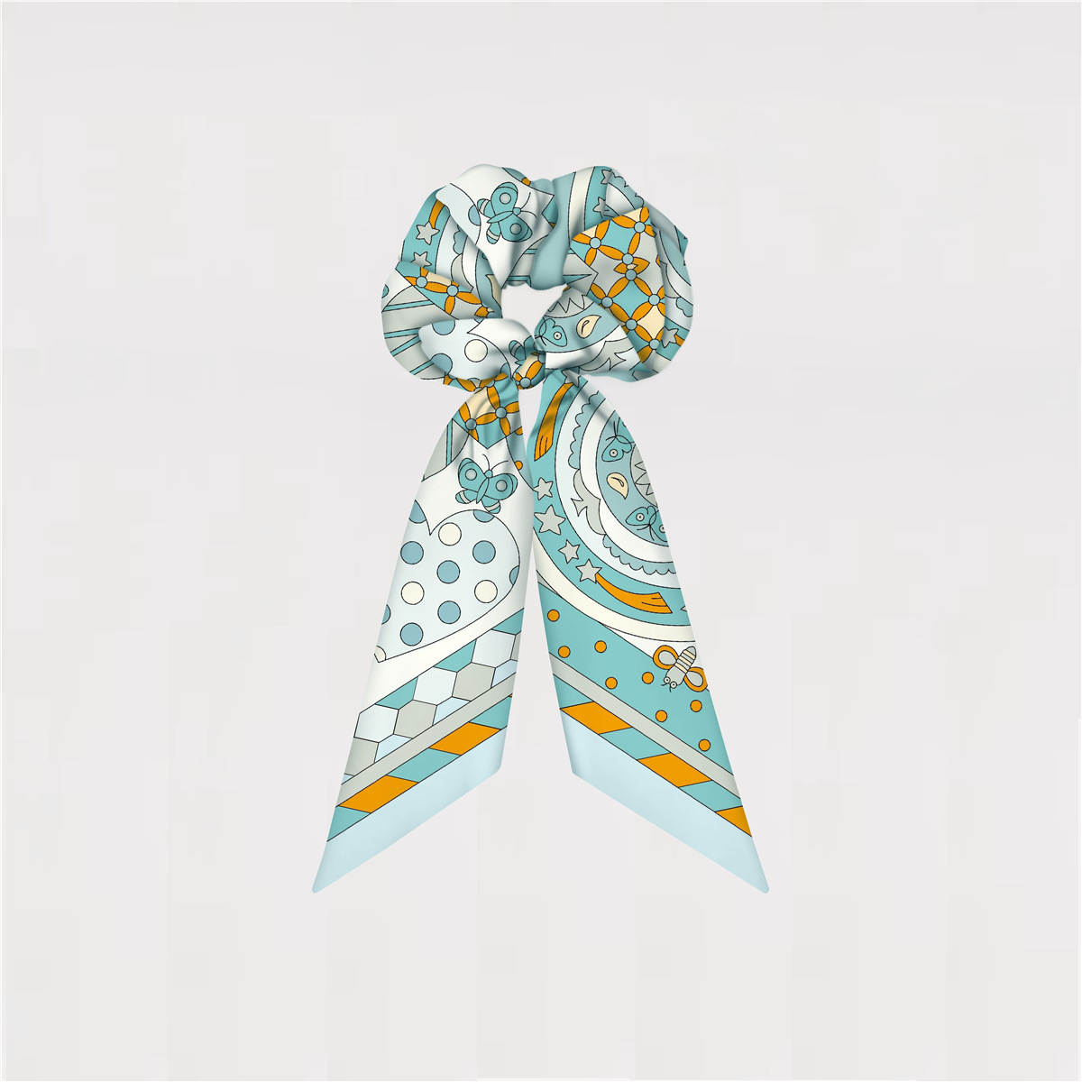 新款法式复古印花发圈女士绑发飘带松紧发带大肠圈丝巾发圈绑马尾