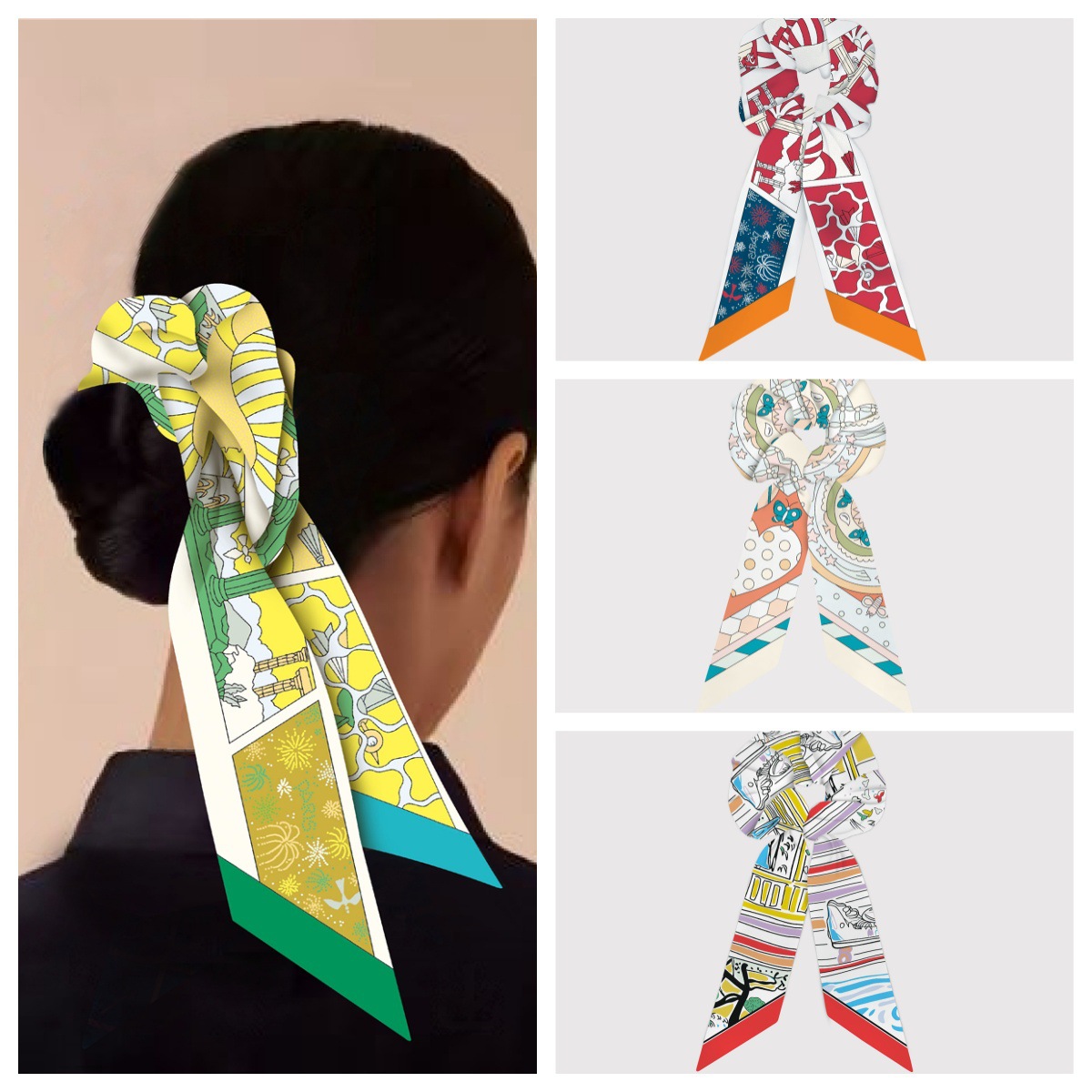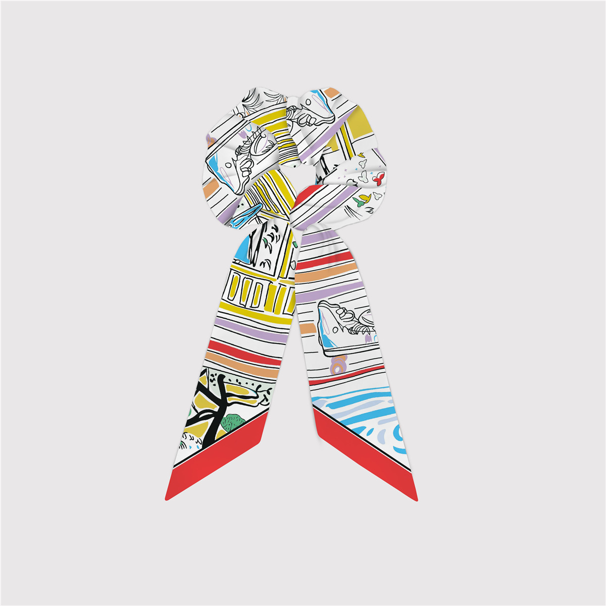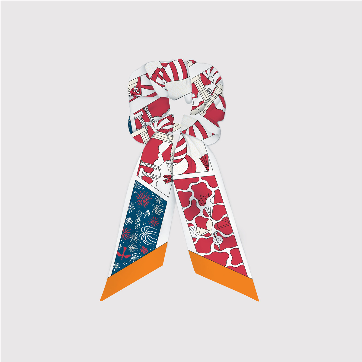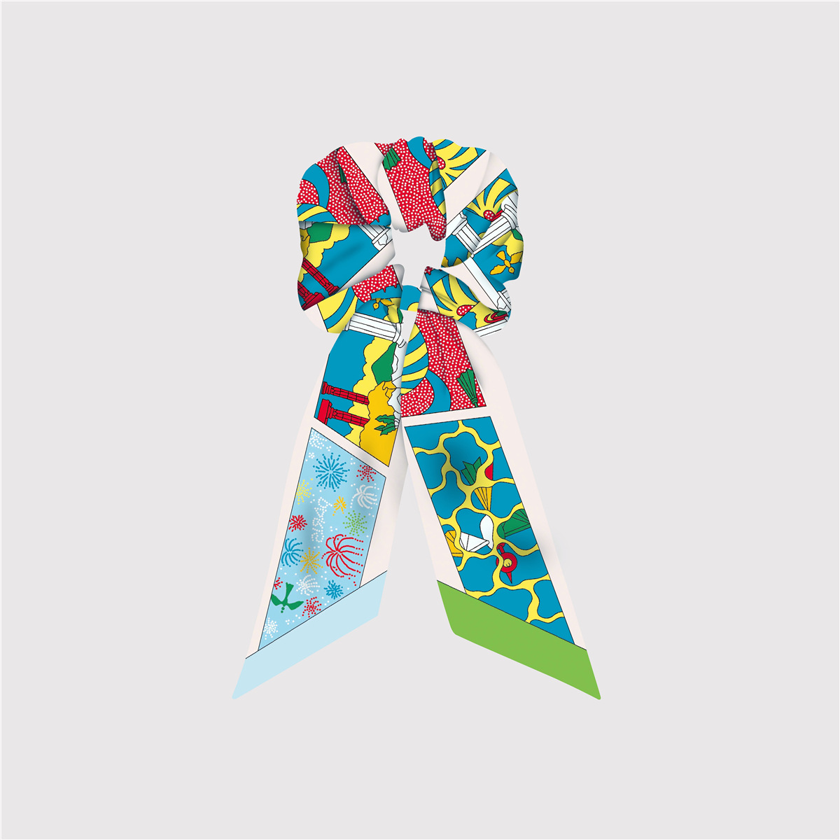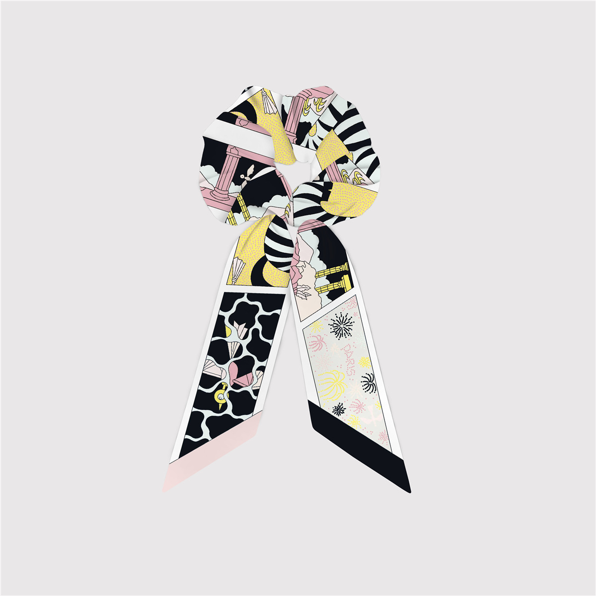 新款法式复古印花发圈女士绑发飘带松紧发带大肠圈丝巾发圈绑马尾