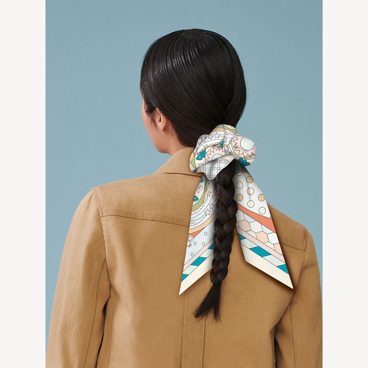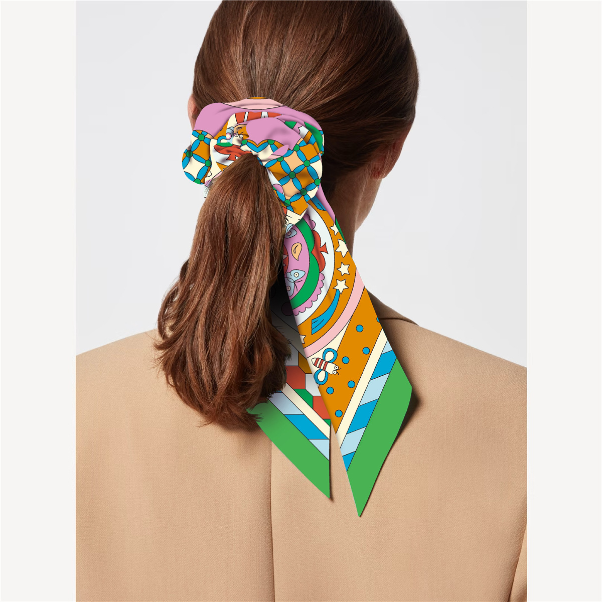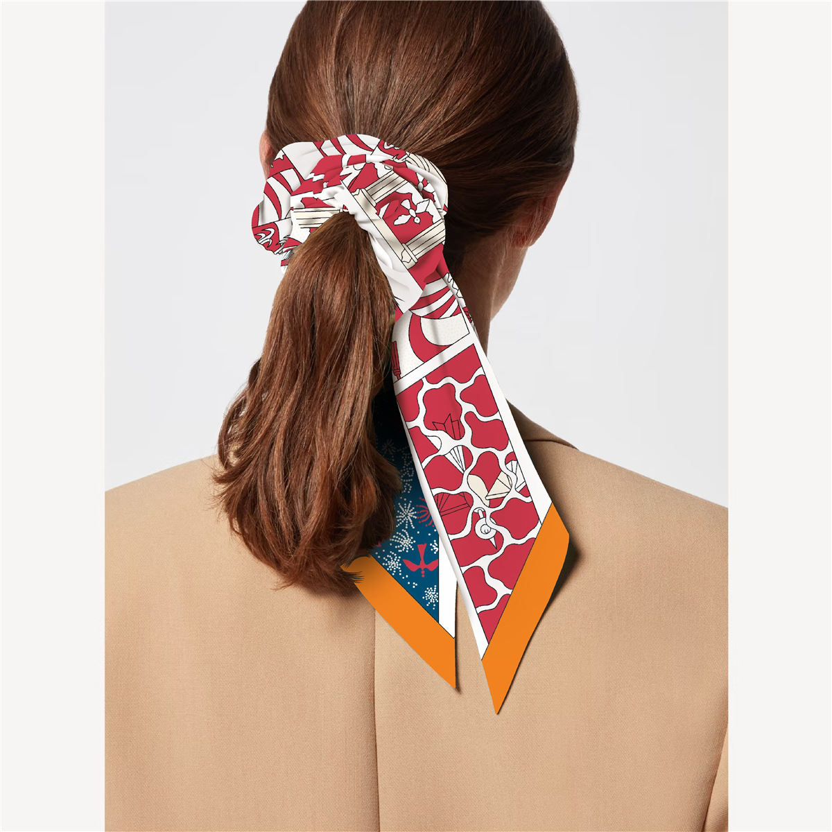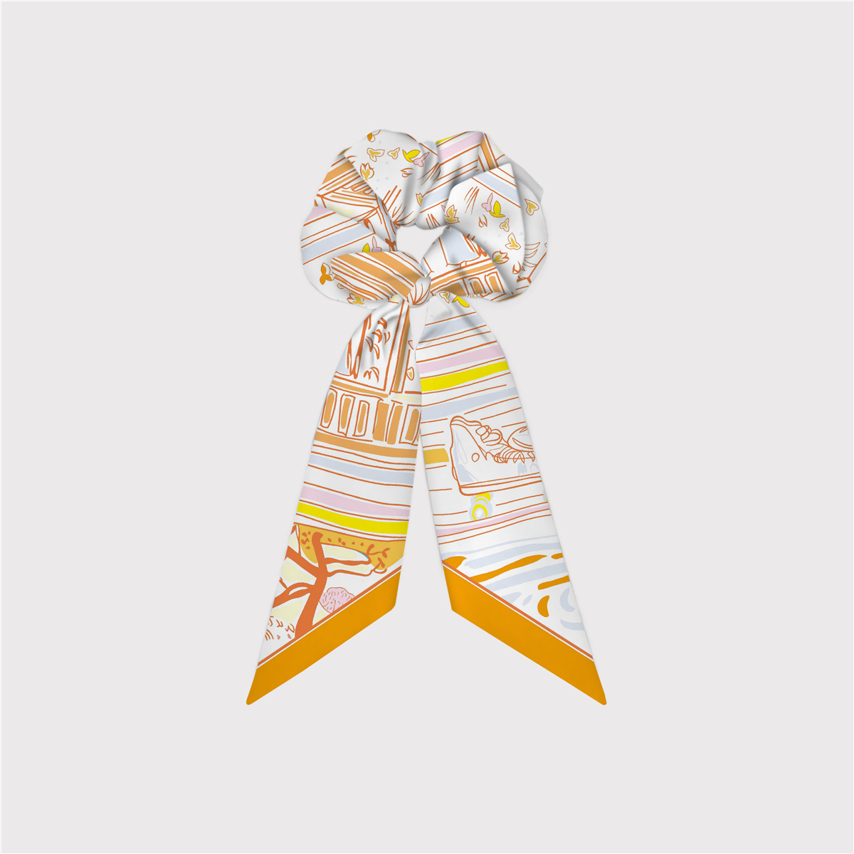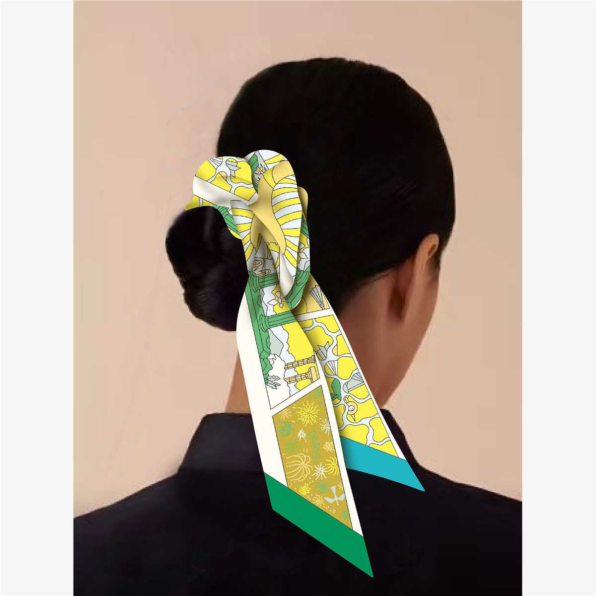 新款法式复古印花发圈女士绑发飘带松紧发带大肠圈丝巾发圈绑马尾