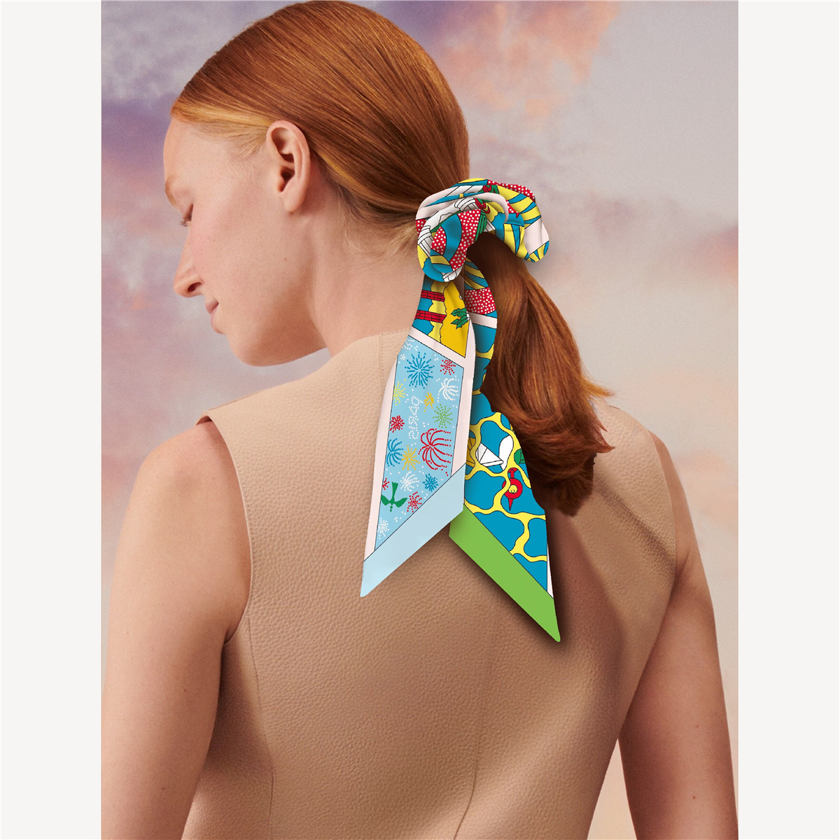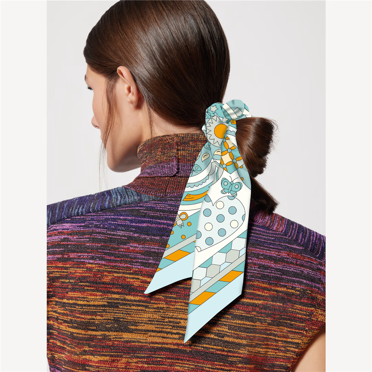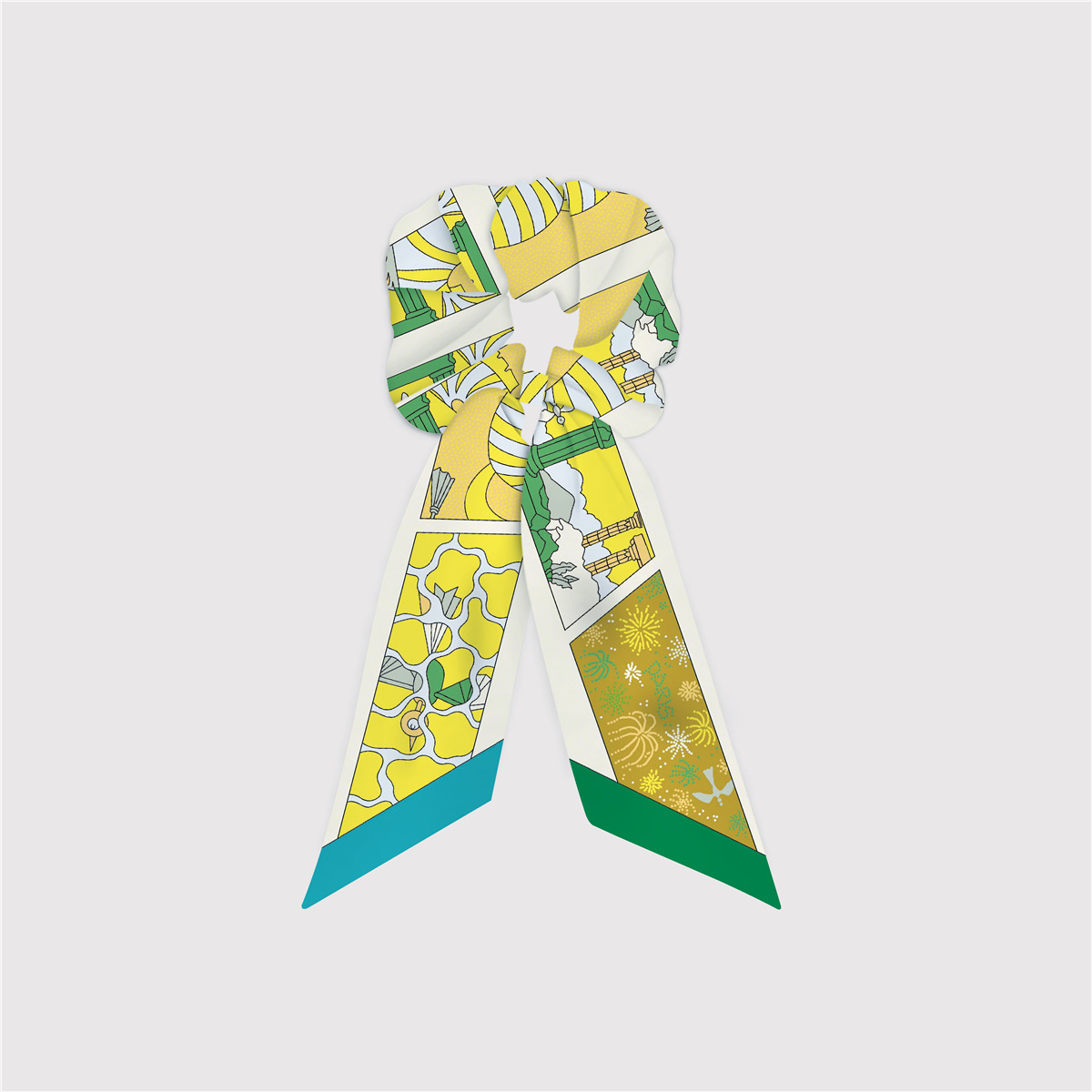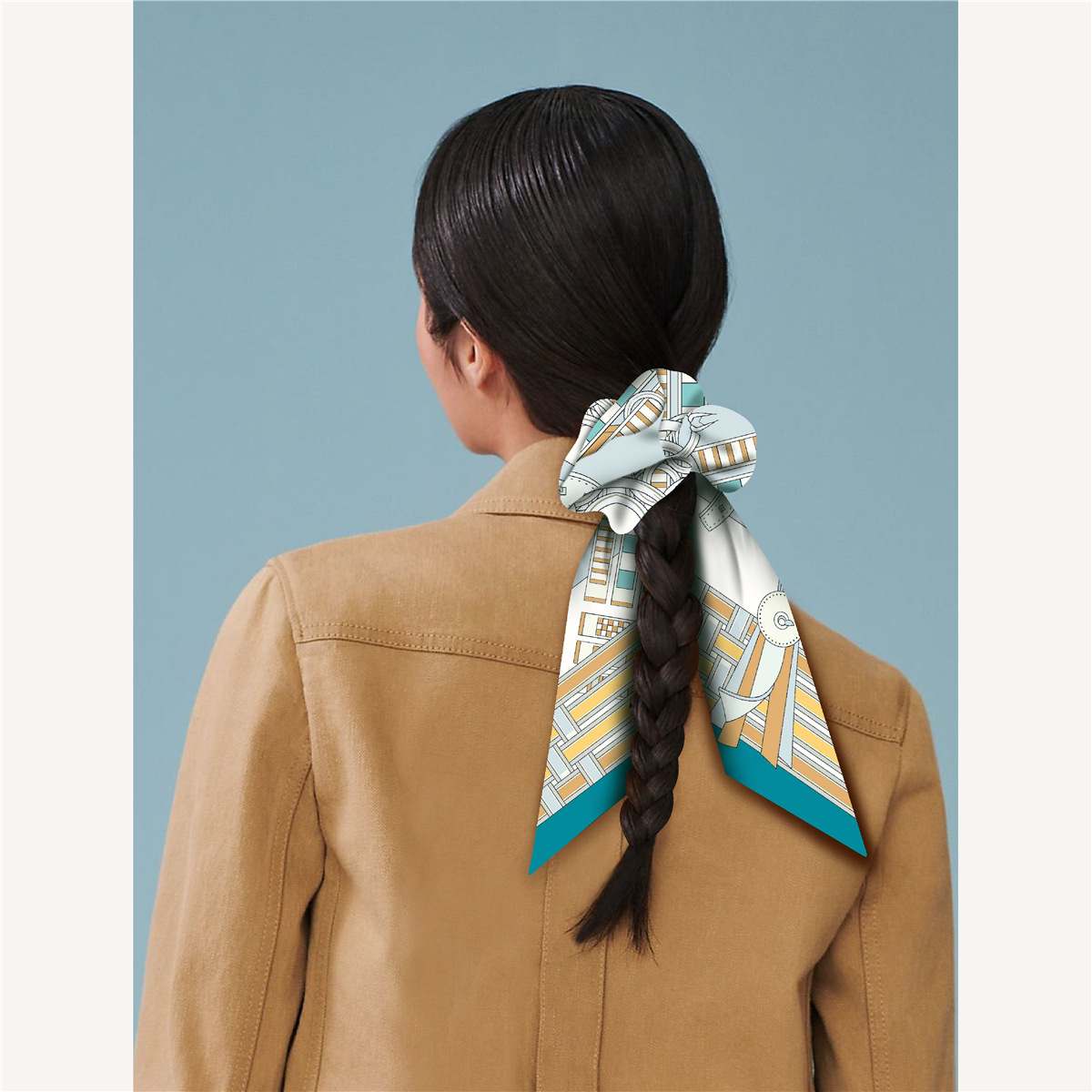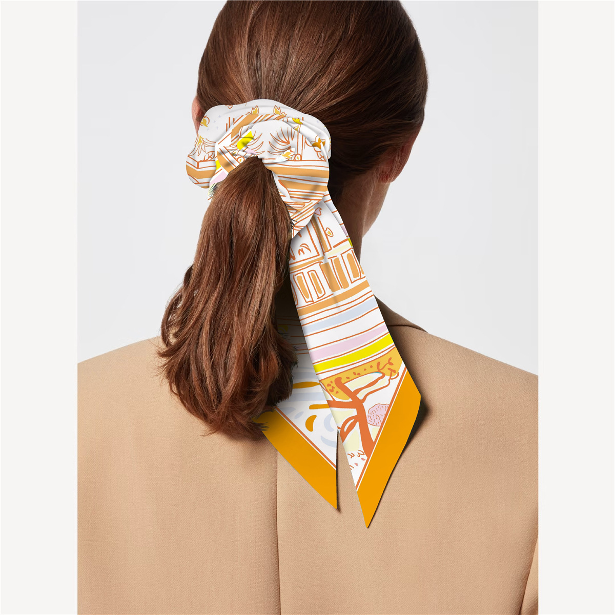新款法式复古印花发圈女士绑发飘带松紧发带大肠圈丝巾发圈绑马尾