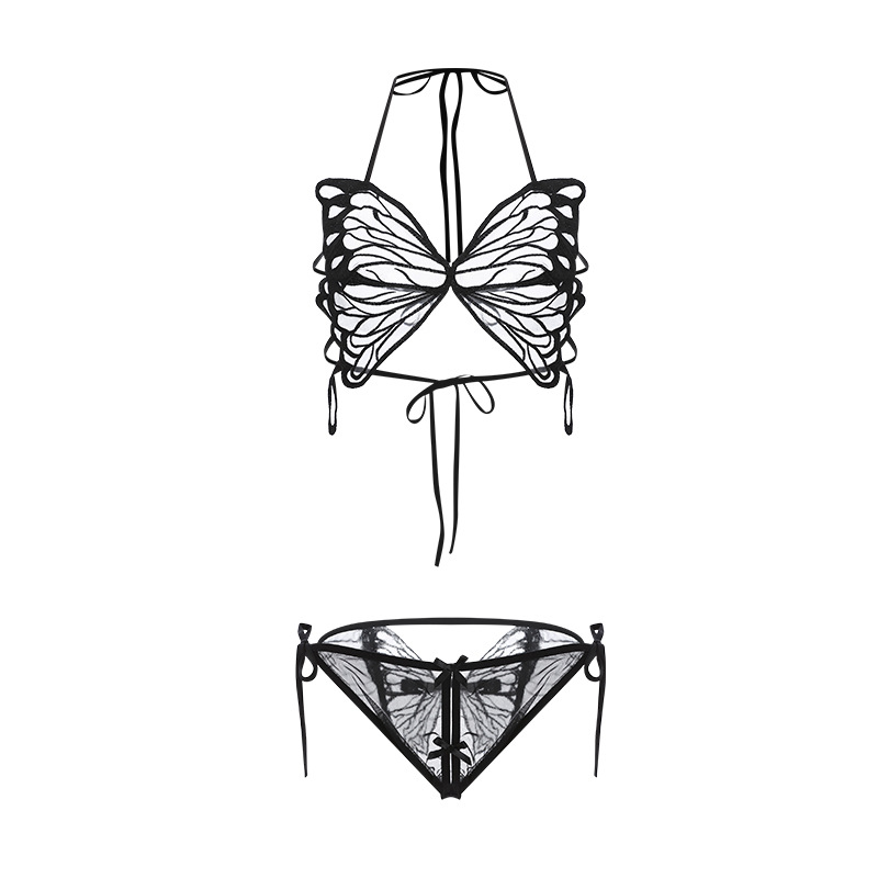 瑰若情趣内衣性感透视网纱激情蝴蝶三点露背开档免脱制服套装2112