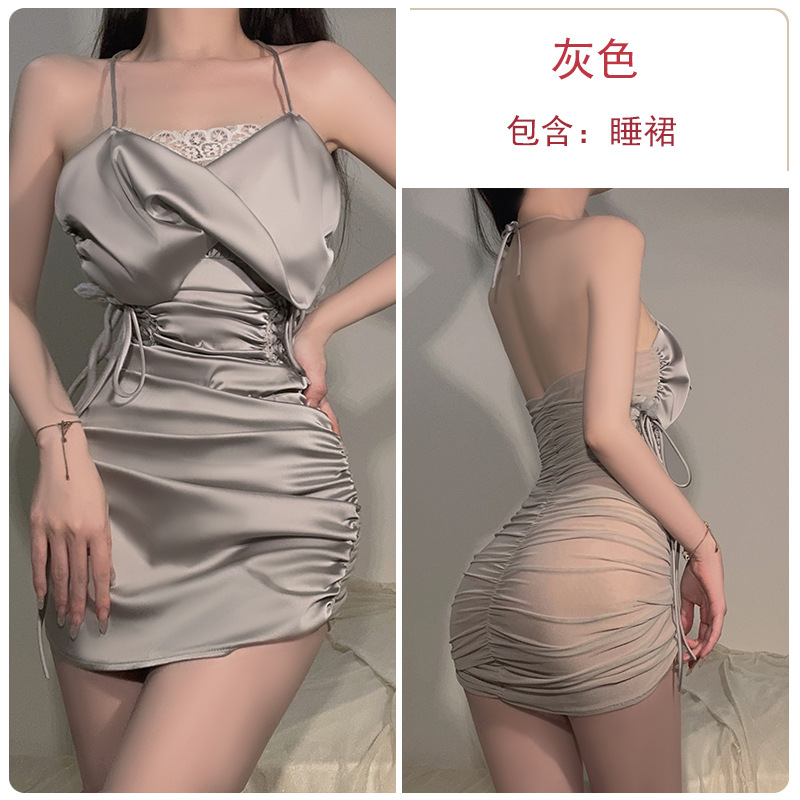 DZ瑰若大码睡衣网纱透视诱惑纯欲蕾丝吊带睡裙情趣内衣女套装1612