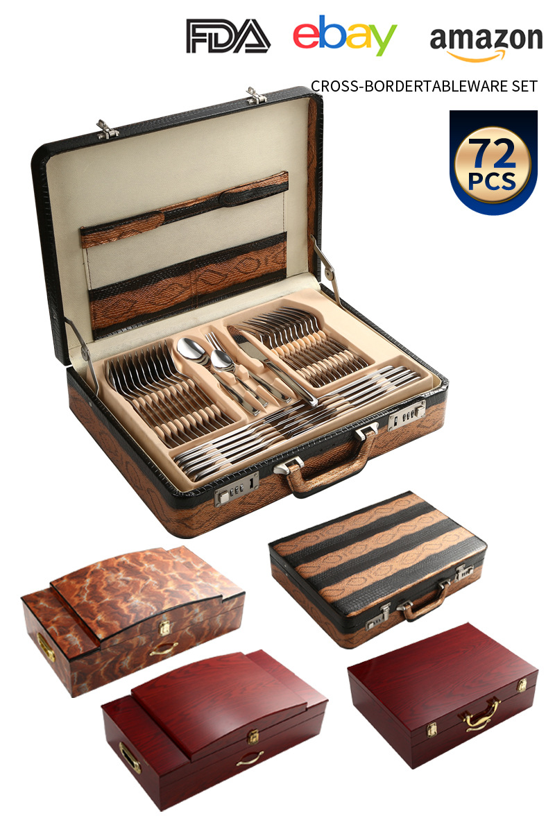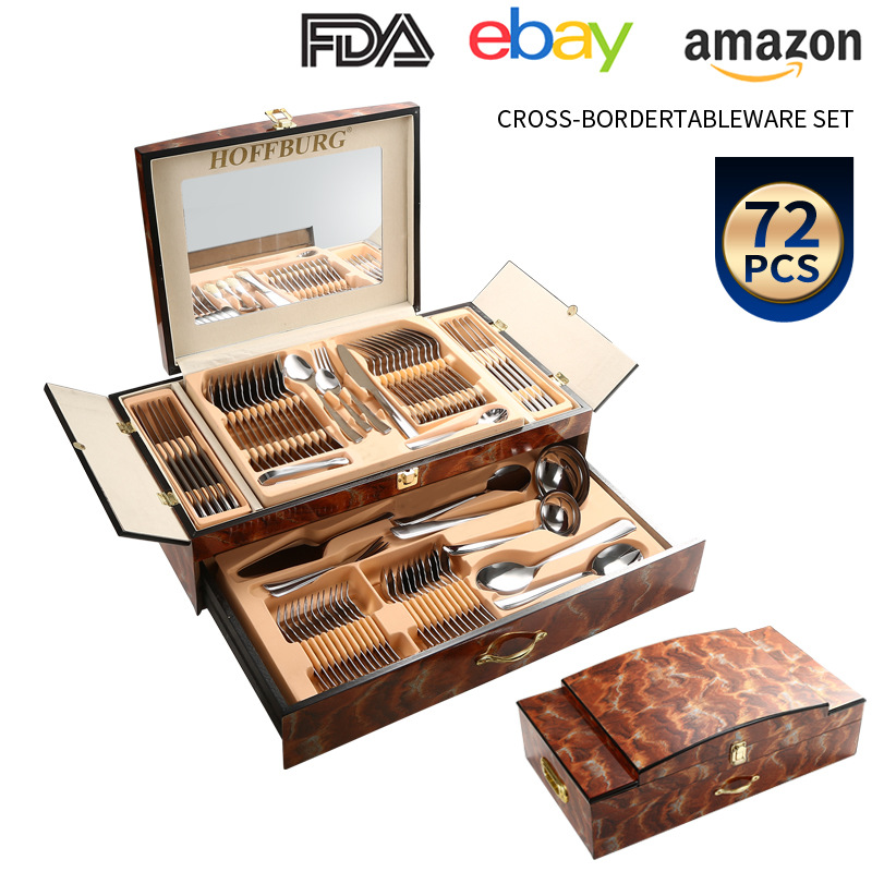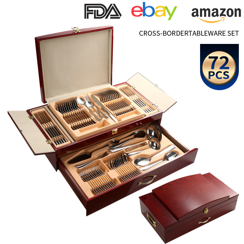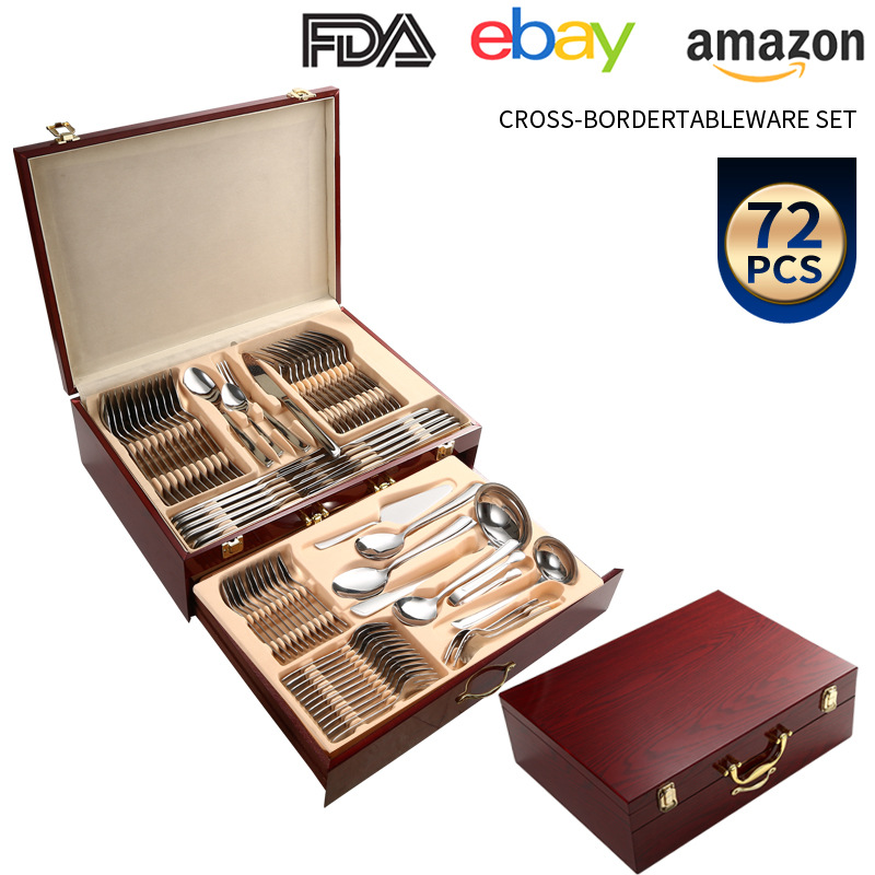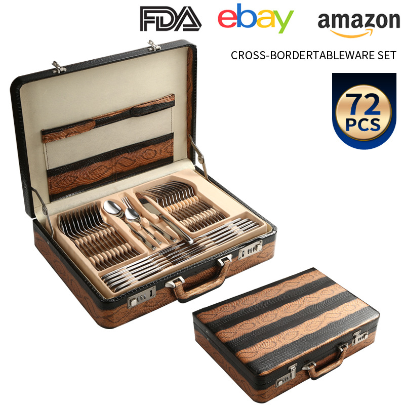 跨境亚马逊不锈钢西餐套装餐具批发72件套刀叉勺礼盒套装商用送礼
