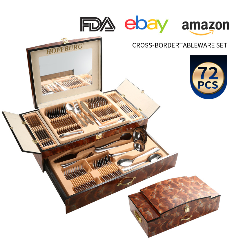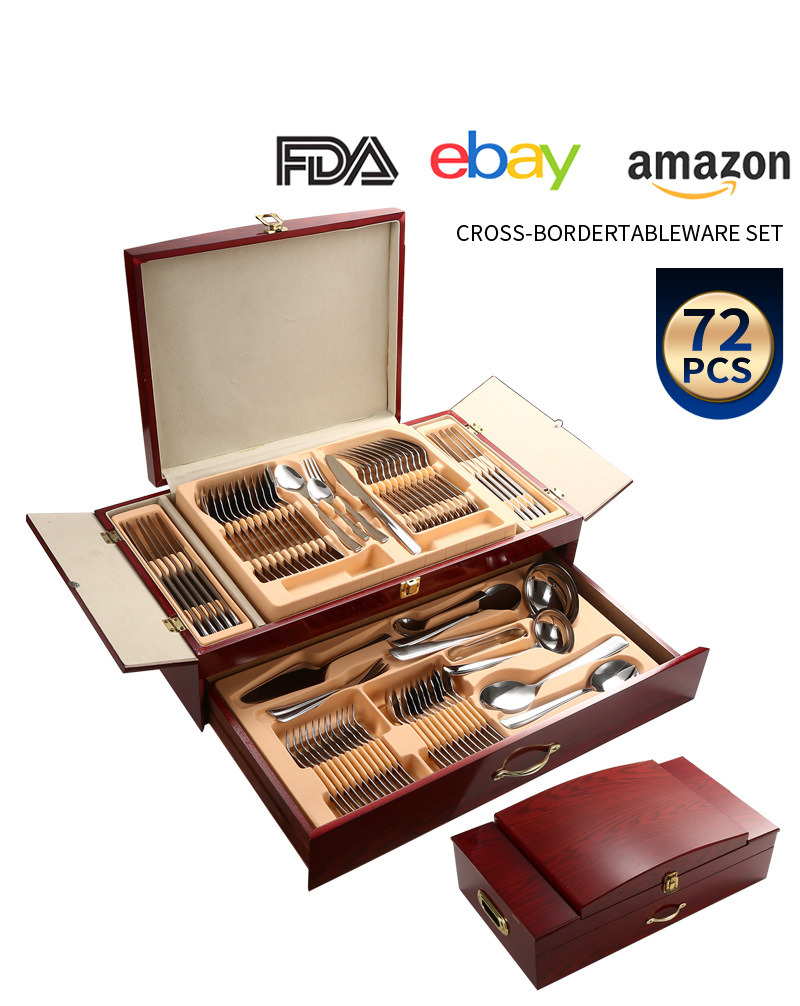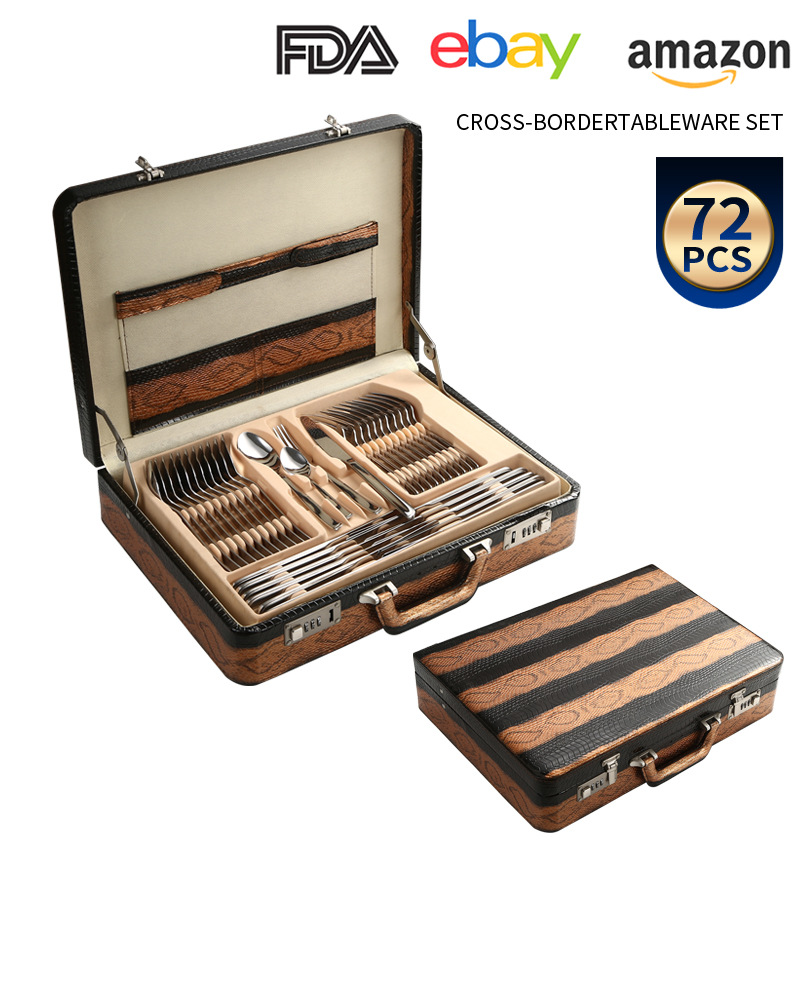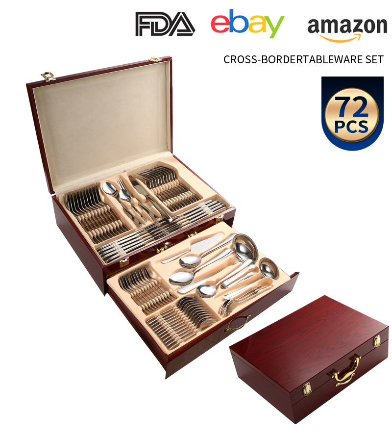 跨境亚马逊不锈钢西餐套装餐具批发72件套刀叉勺礼盒套装商用送礼