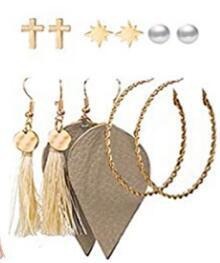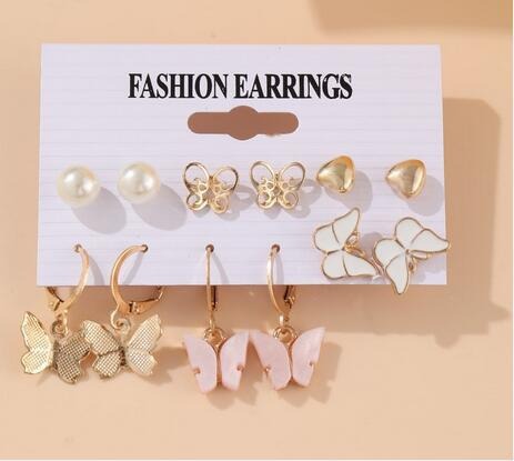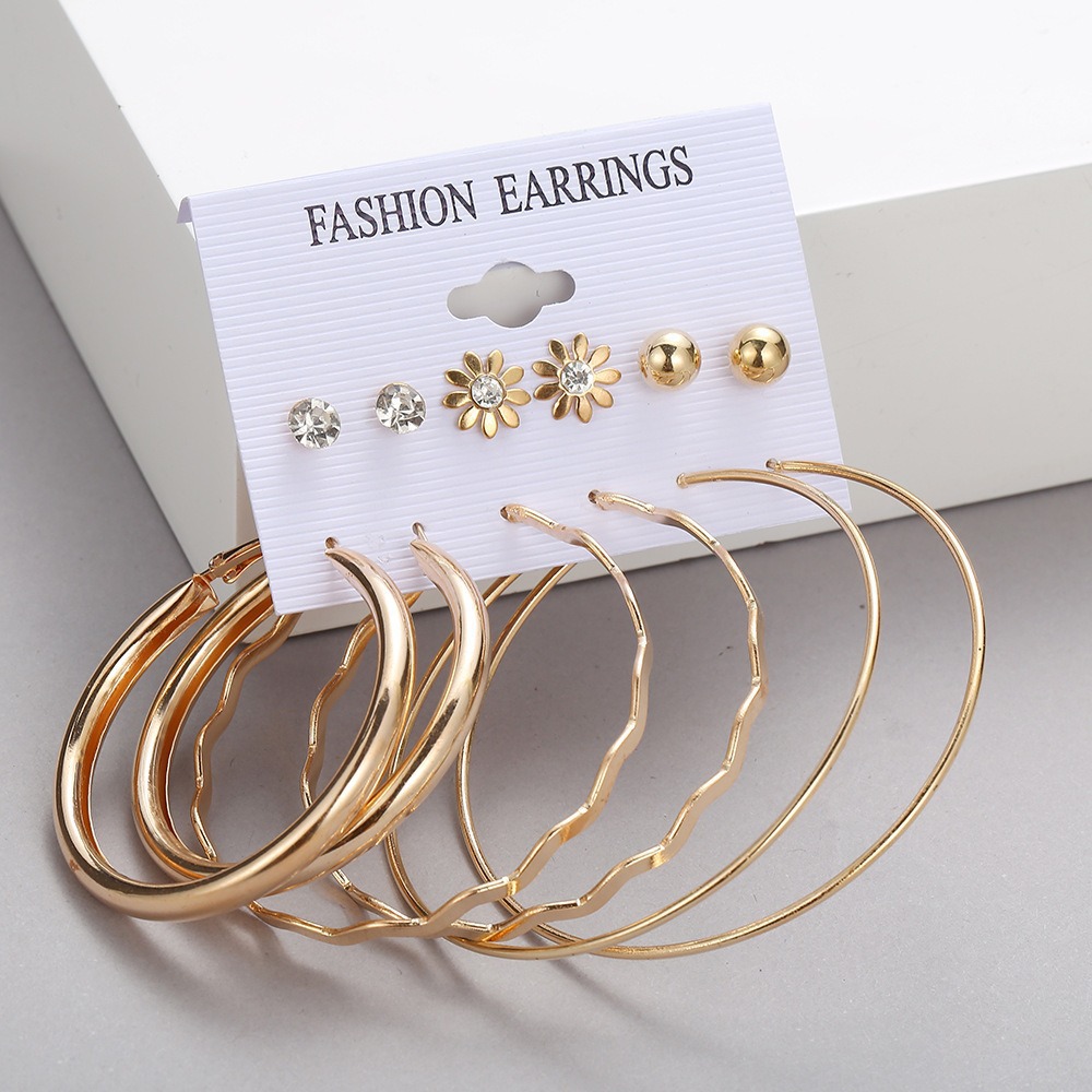 XP17 跨境热销欧美耳饰 夸张C形气质珍珠金属耳饰三角形金属9件套