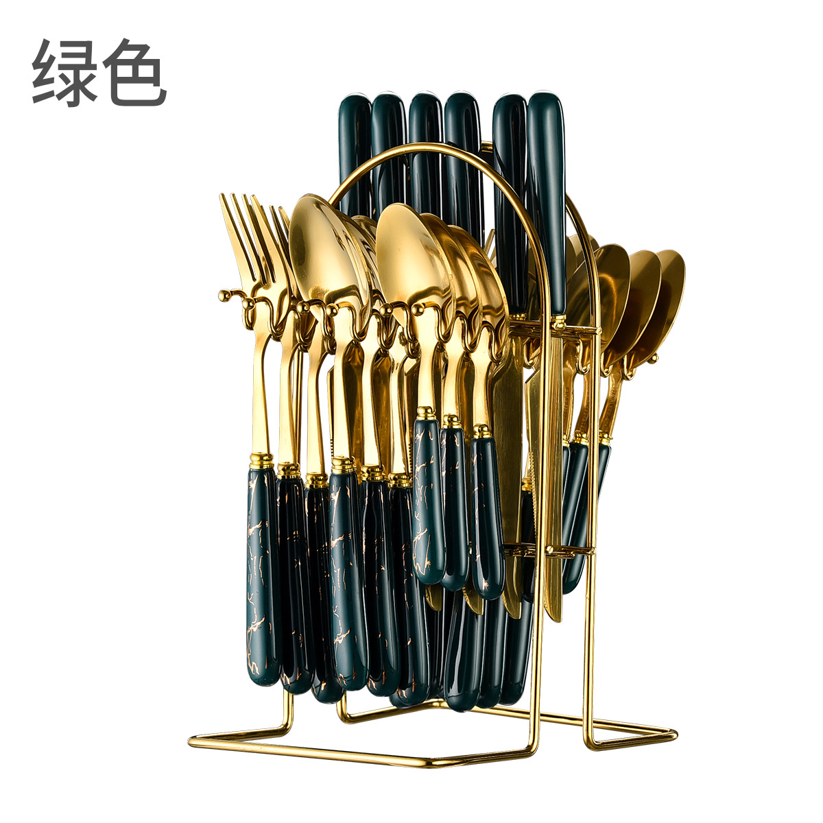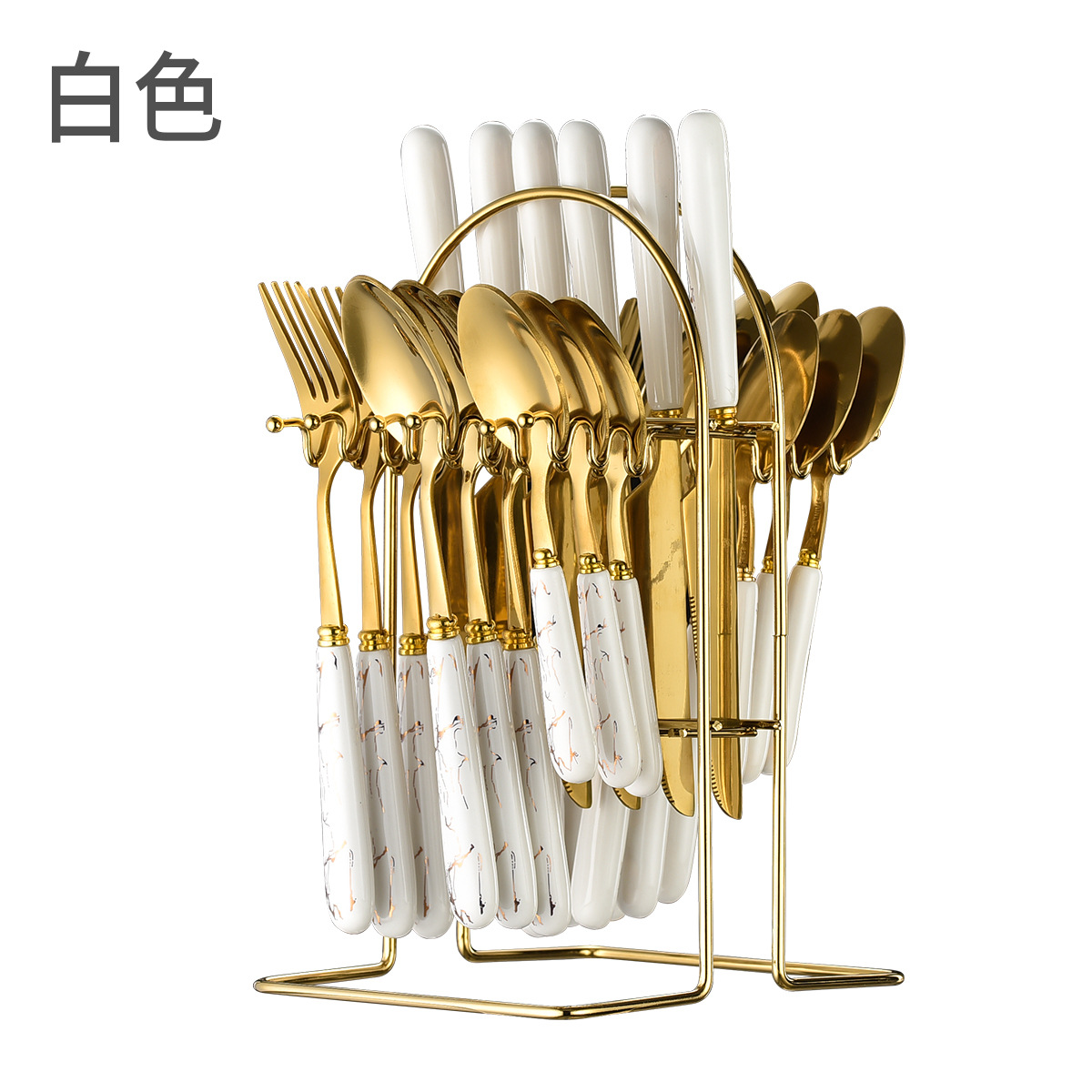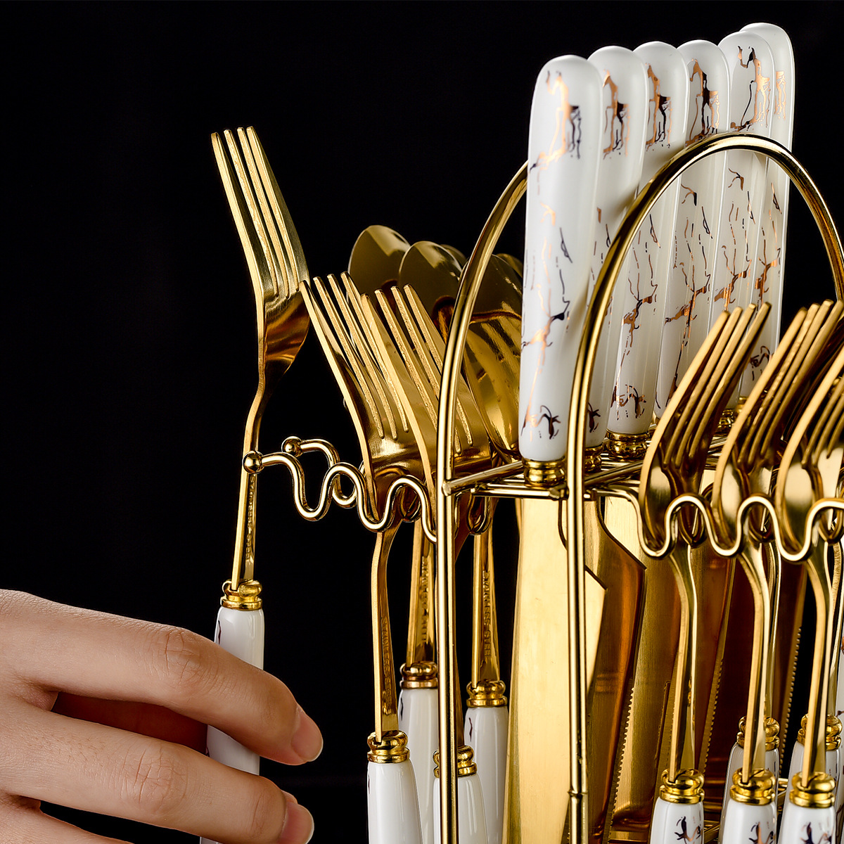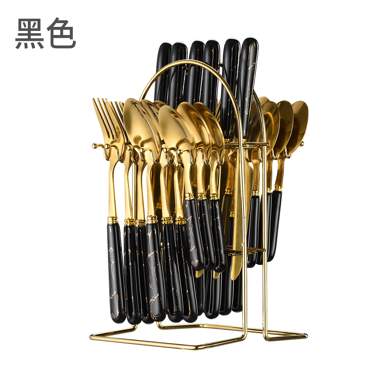 跨境不锈钢刀叉勺24件套欧式陶瓷柄复古轻奢礼盒餐具牛排刀叉套装