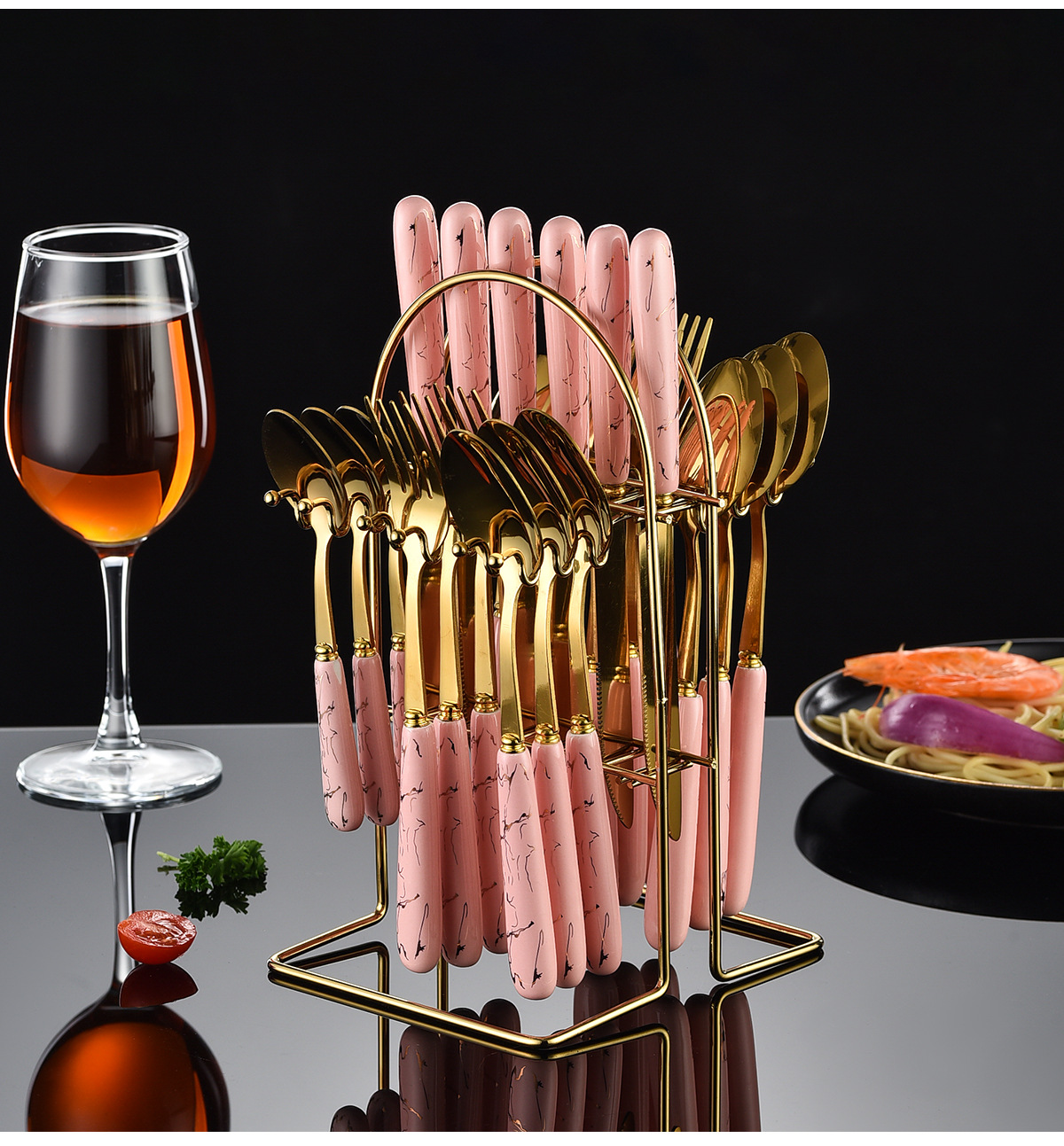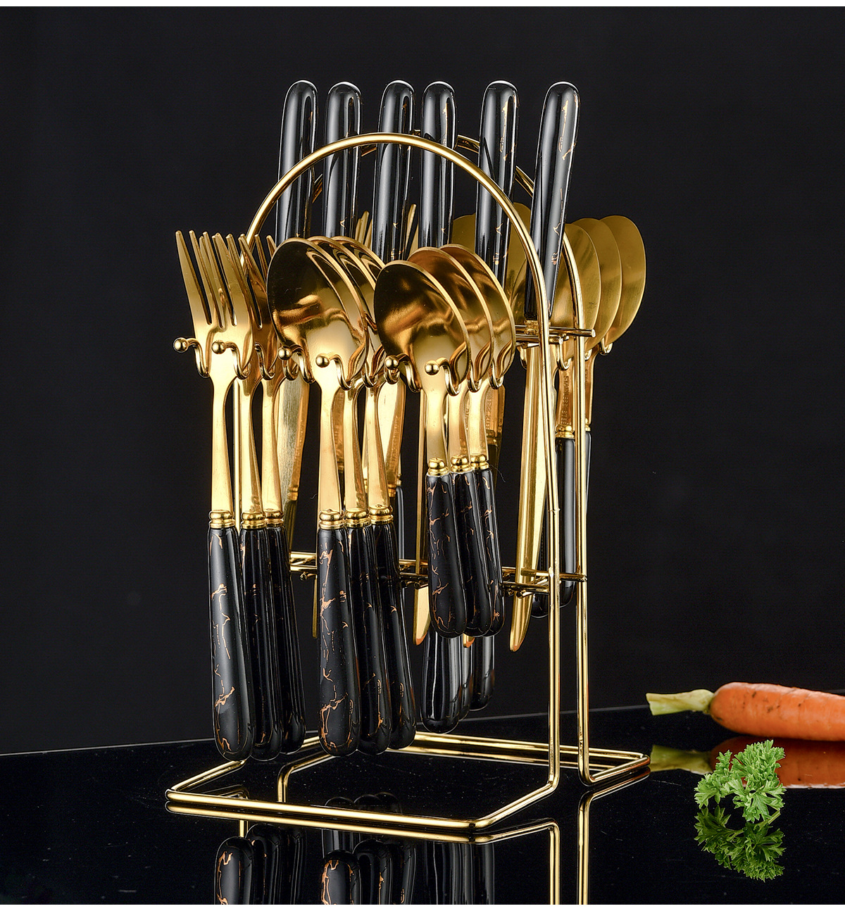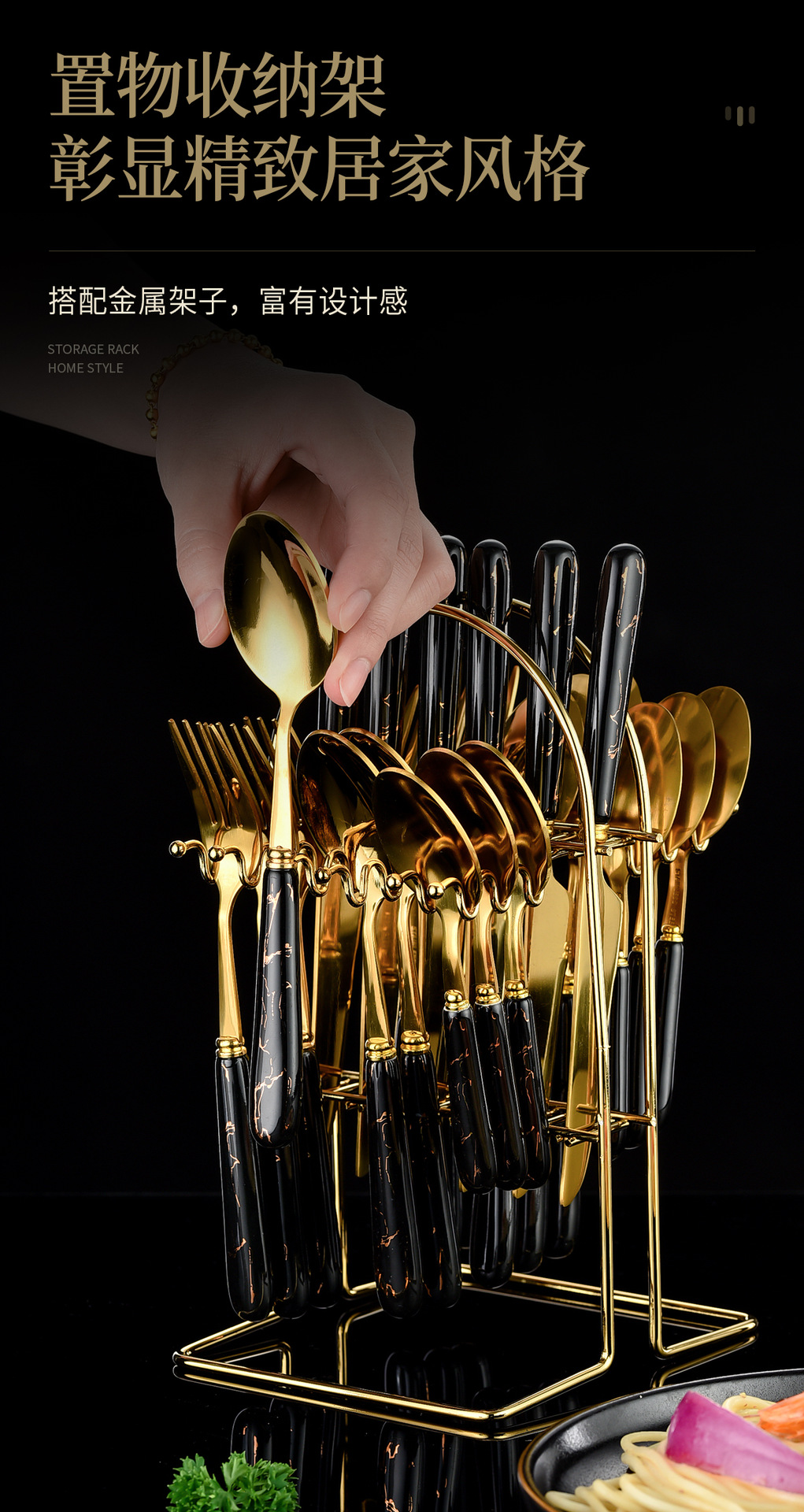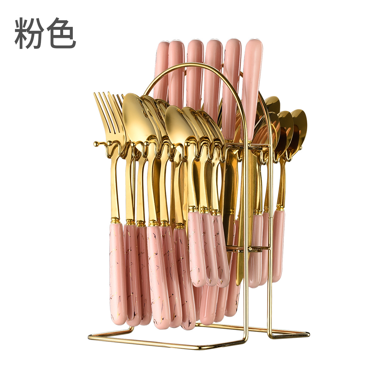 跨境不锈钢刀叉勺24件套欧式陶瓷柄复古轻奢礼盒餐具牛排刀叉套装