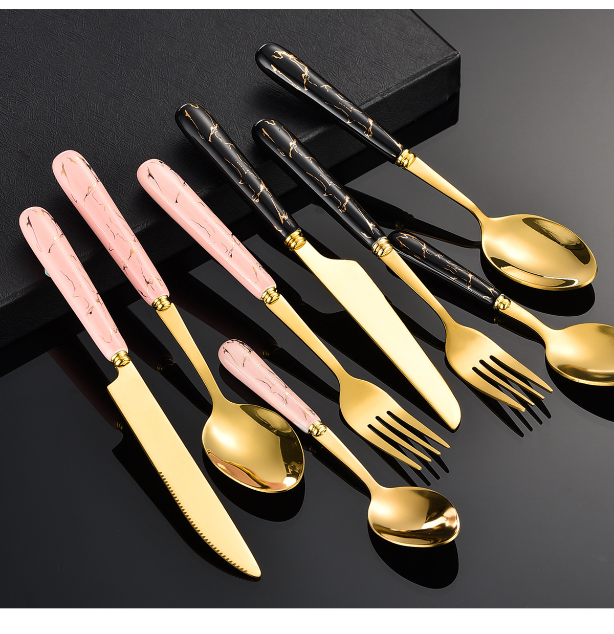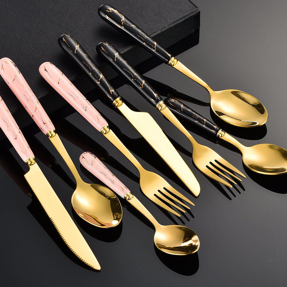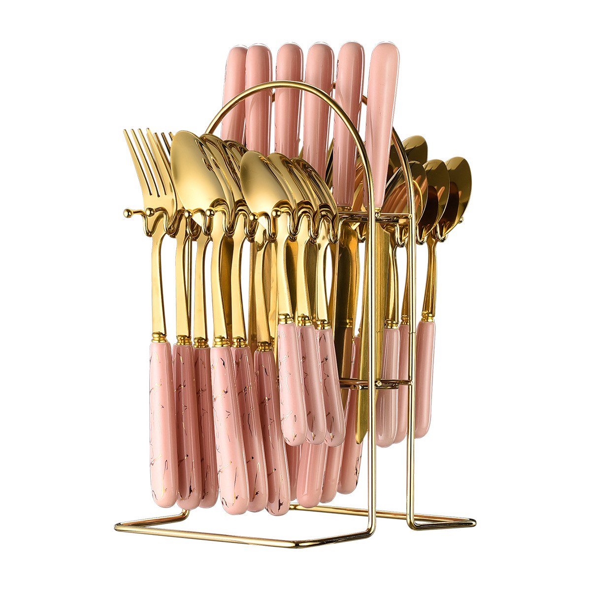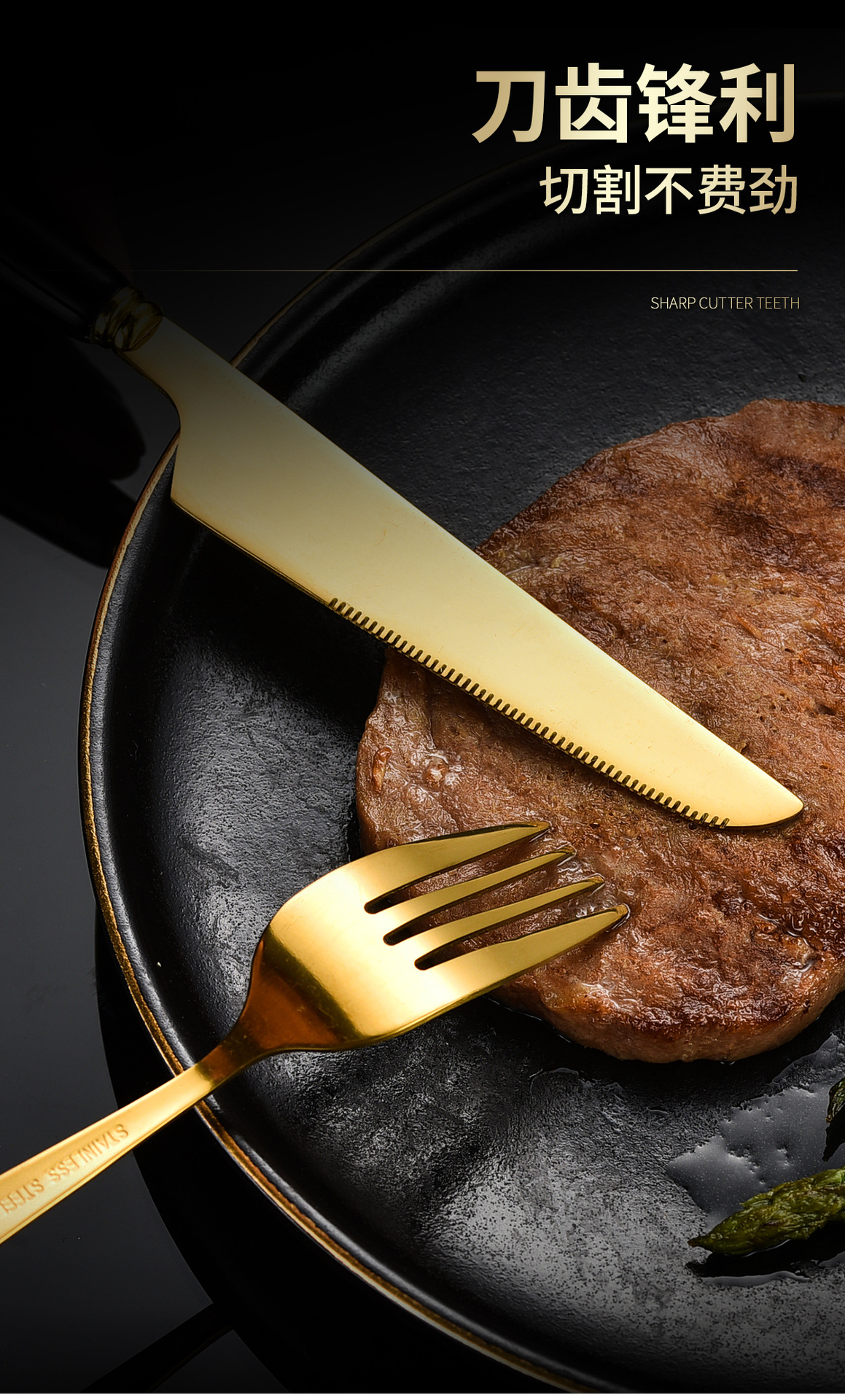 跨境不锈钢刀叉勺24件套欧式陶瓷柄复古轻奢礼盒餐具牛排刀叉套装