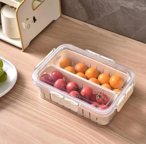 PET加厚保鲜收纳盒密封冰箱蔬果储物分装盒冷冻沥水带盖