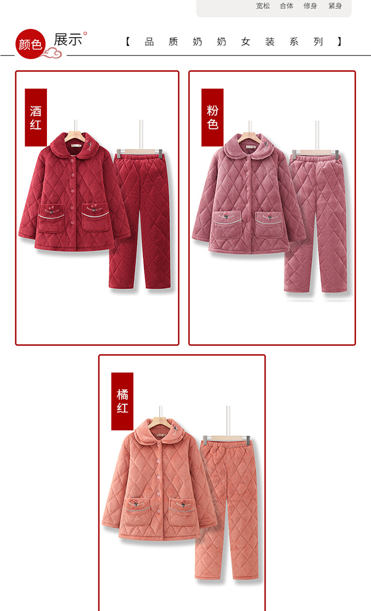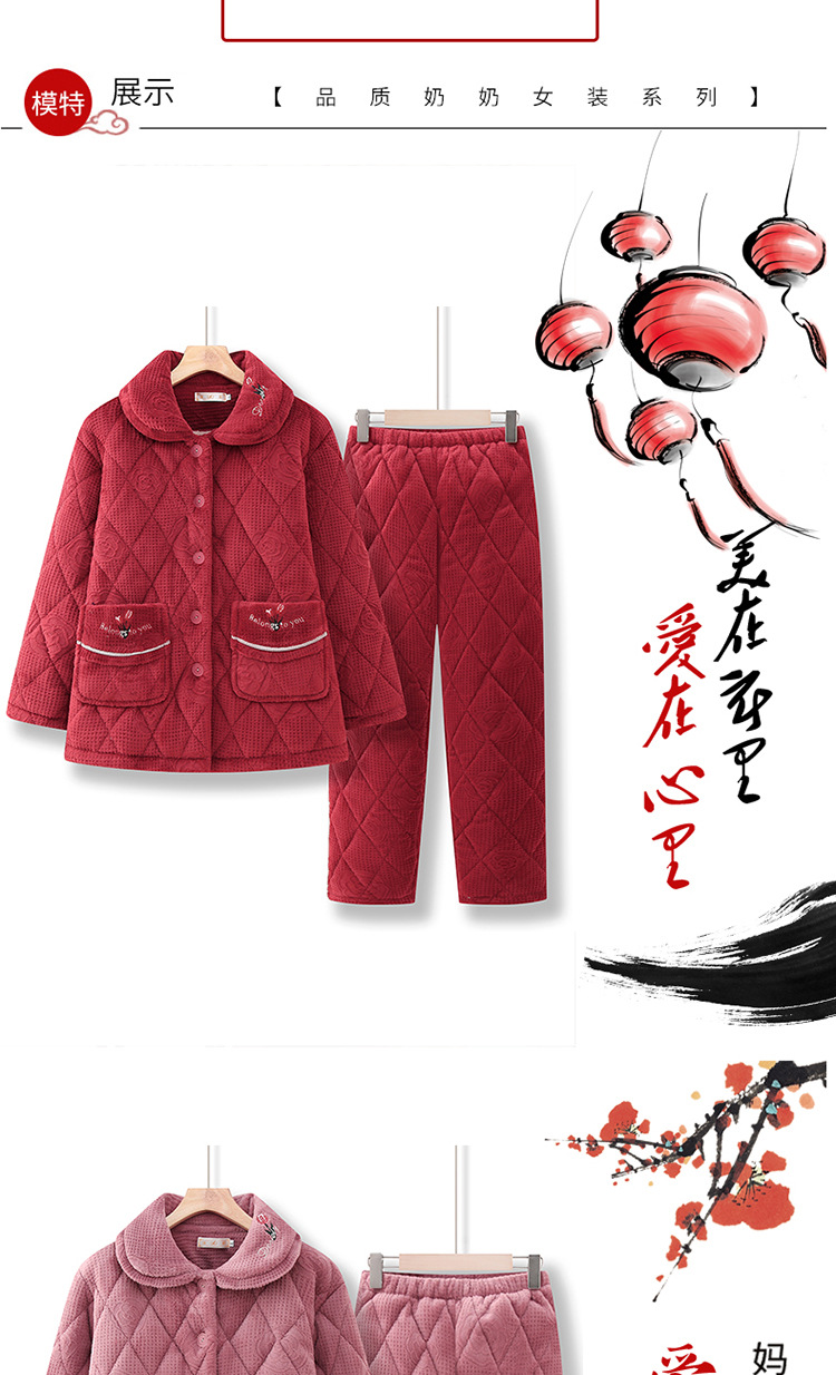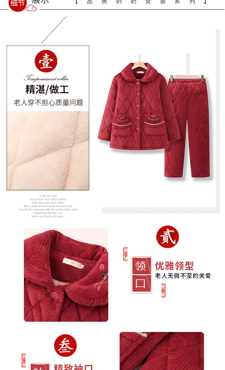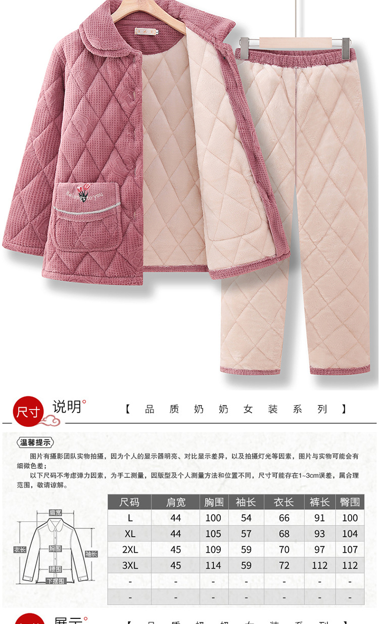 妈妈冬装加绒保暖睡衣奶奶冬季加厚家居服中老年女士棉衣棉裤套装