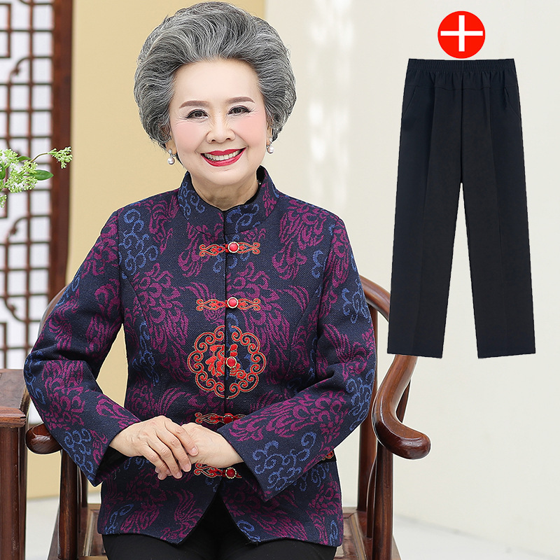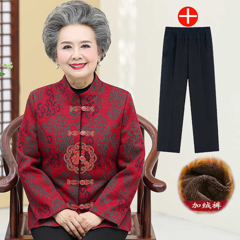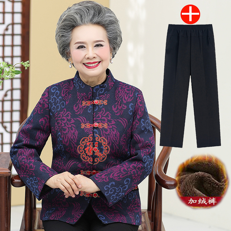 中老年人春秋装女80岁奶奶唐装加绒加厚外套70妈妈冬季老太太过寿