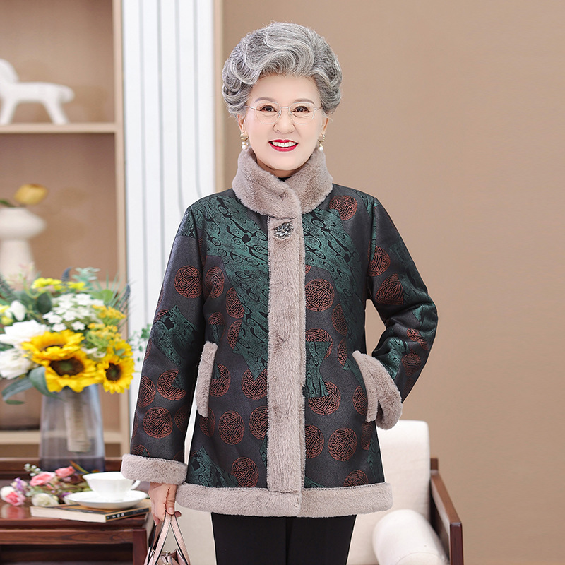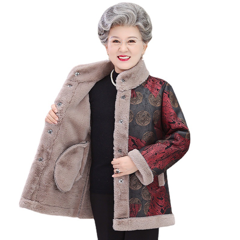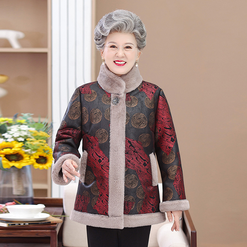 奶奶装加绒外套妈妈皮毛一体衣服加厚老太太洋气上衣老年人冬装女