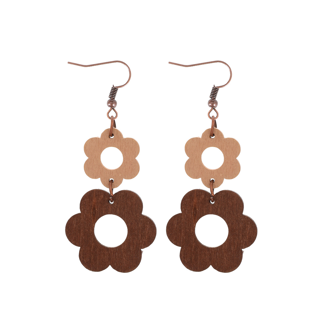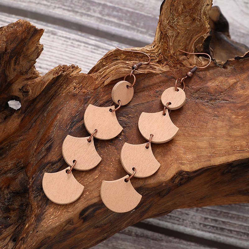跨境巴洛克复古三层扇形木质耳环花朵耳环欧美女士亚马逊速卖通