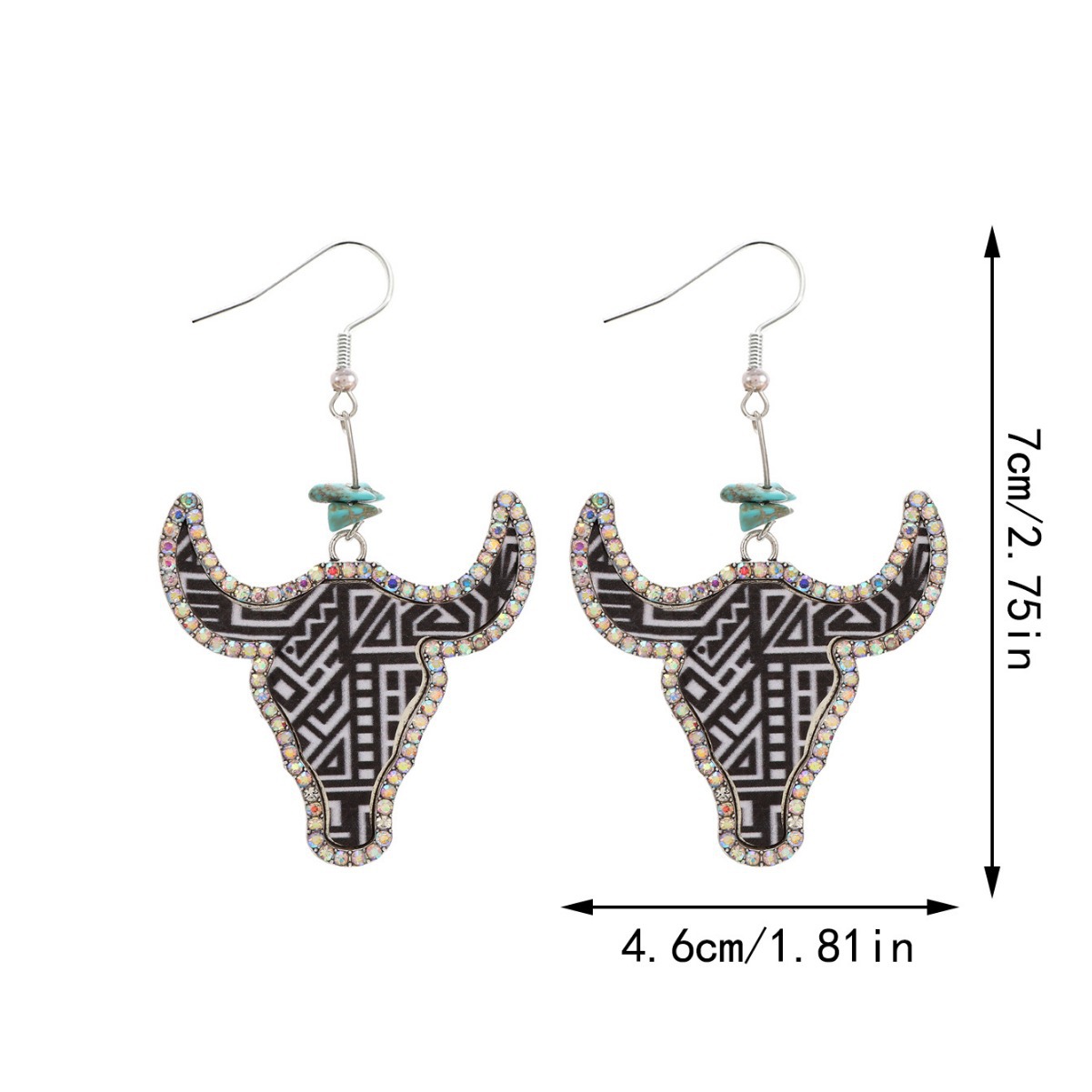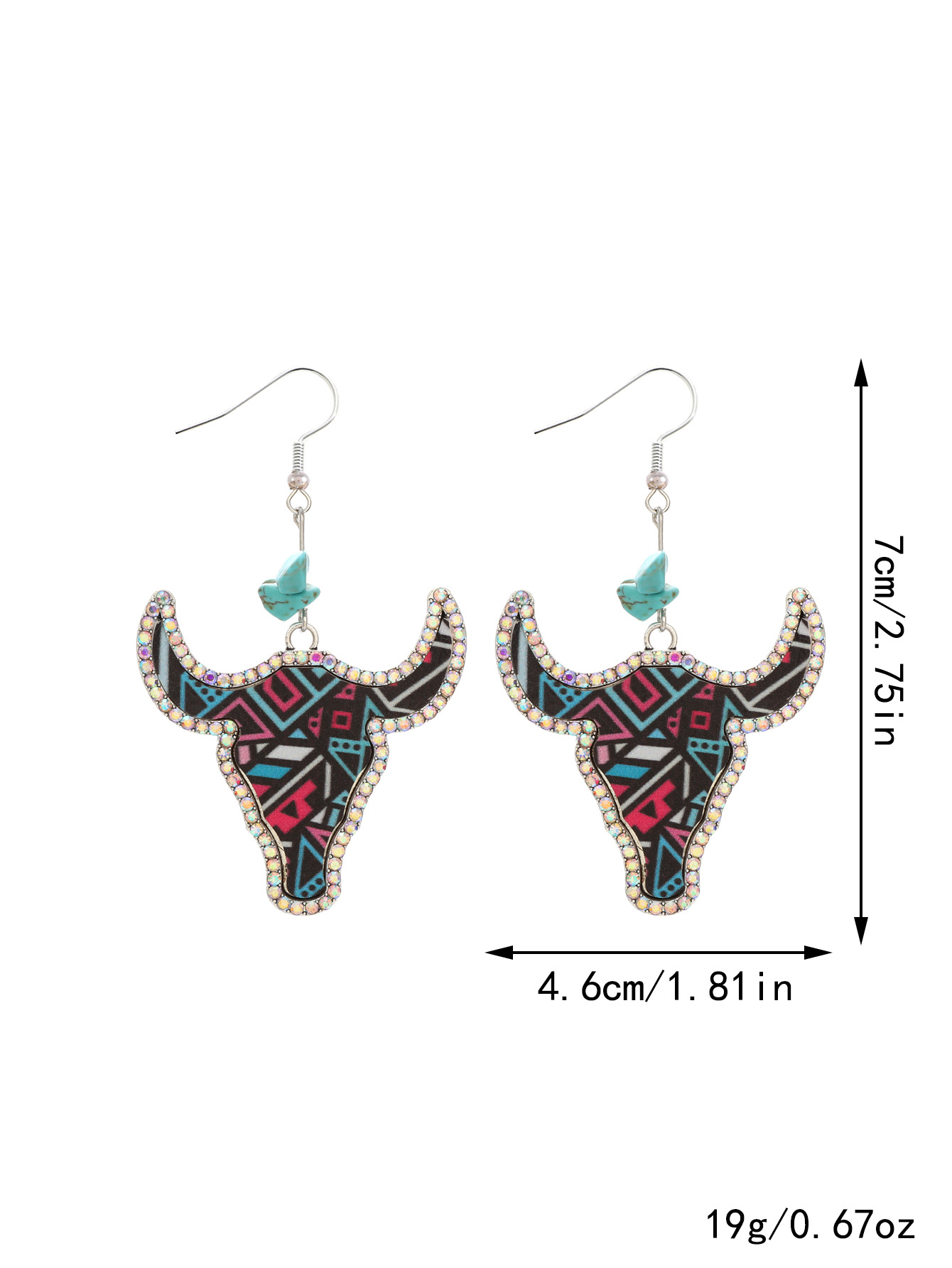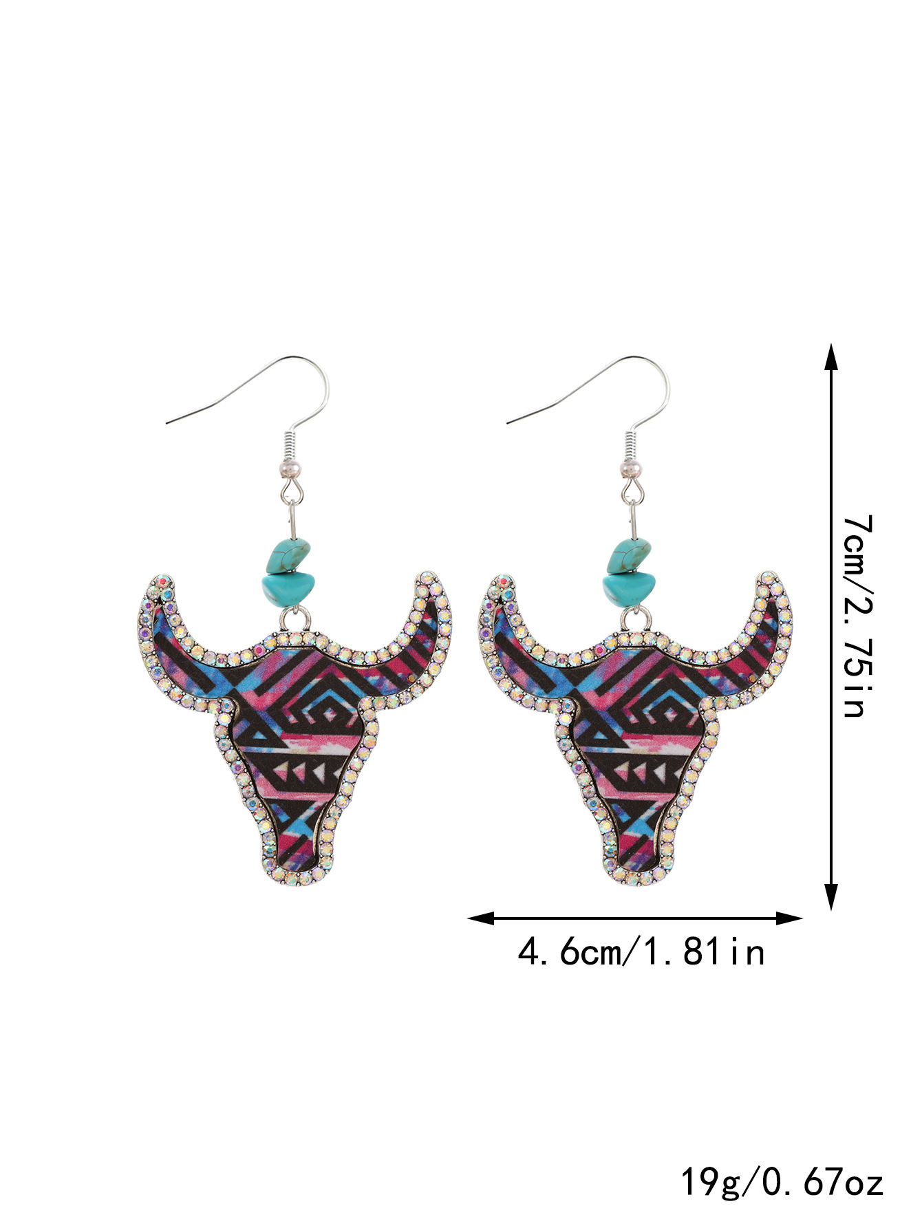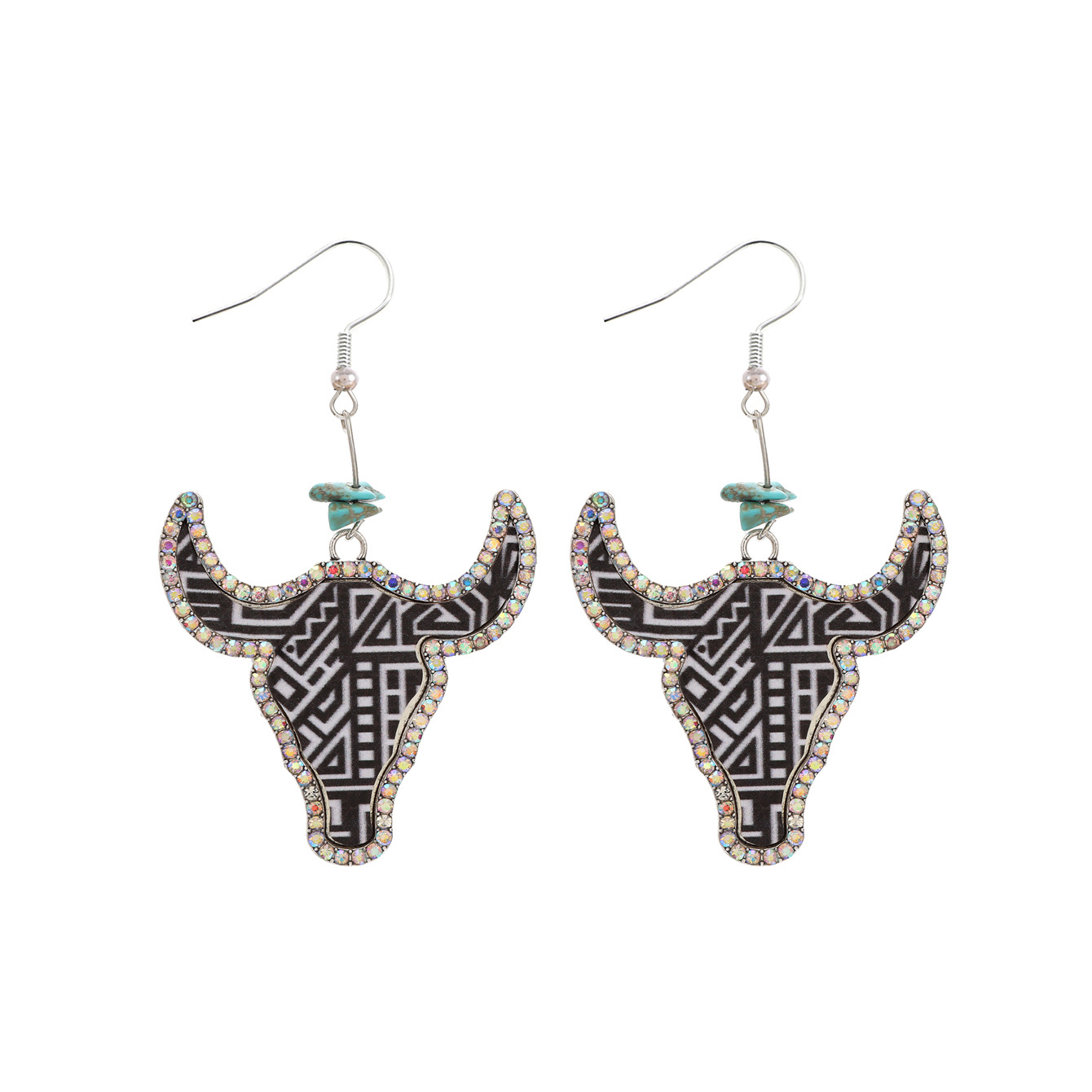 跨境西部牛仔风牛头彩色皮革耳环点钻复古异域风耳环速卖通亚马逊