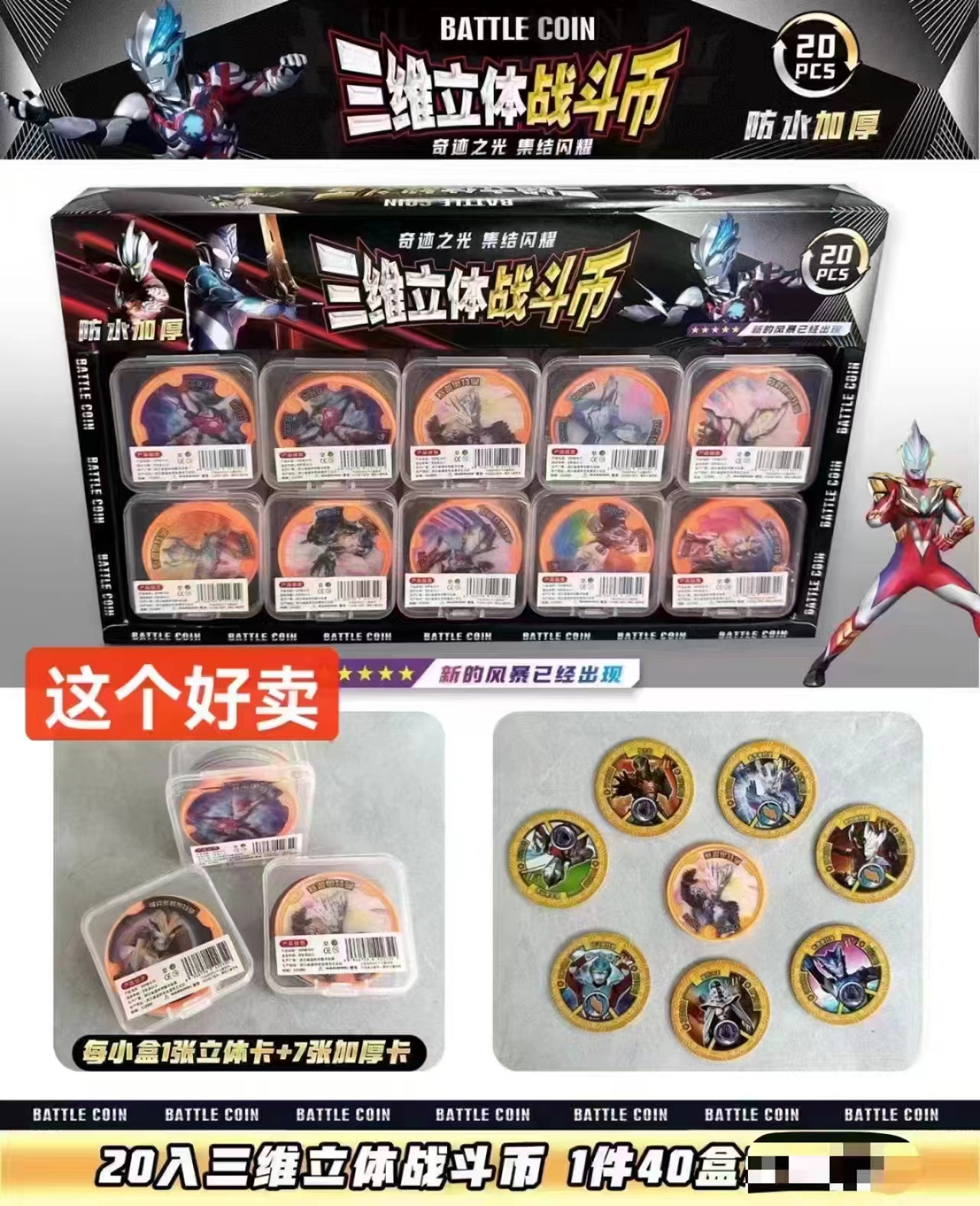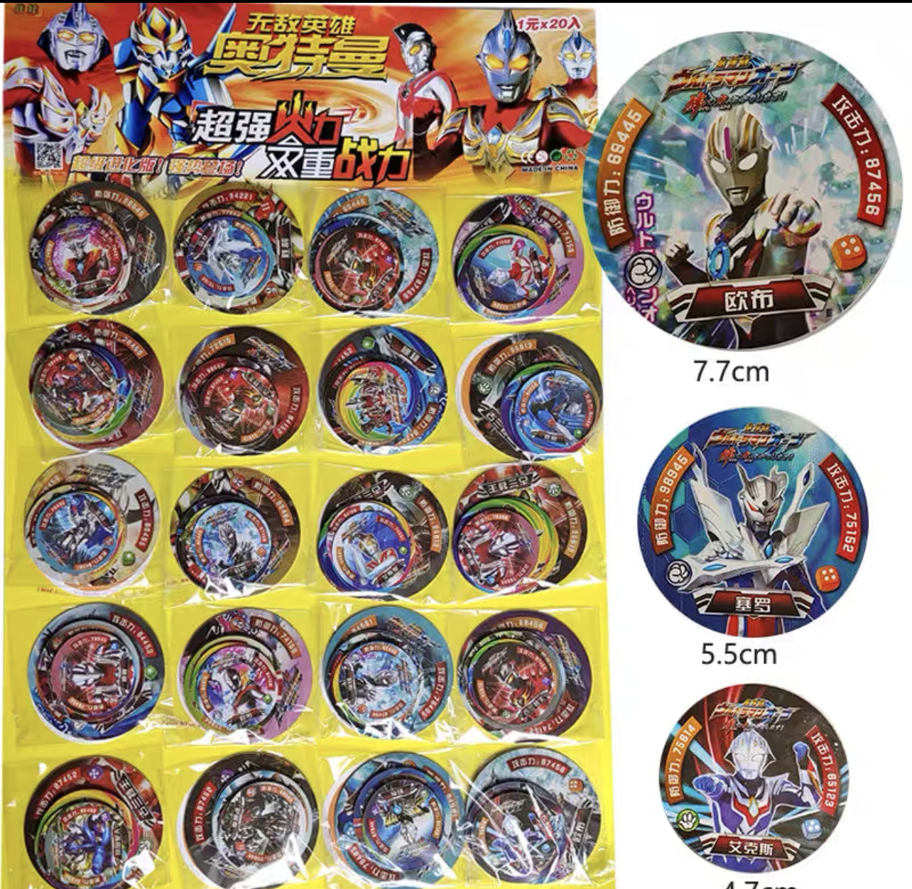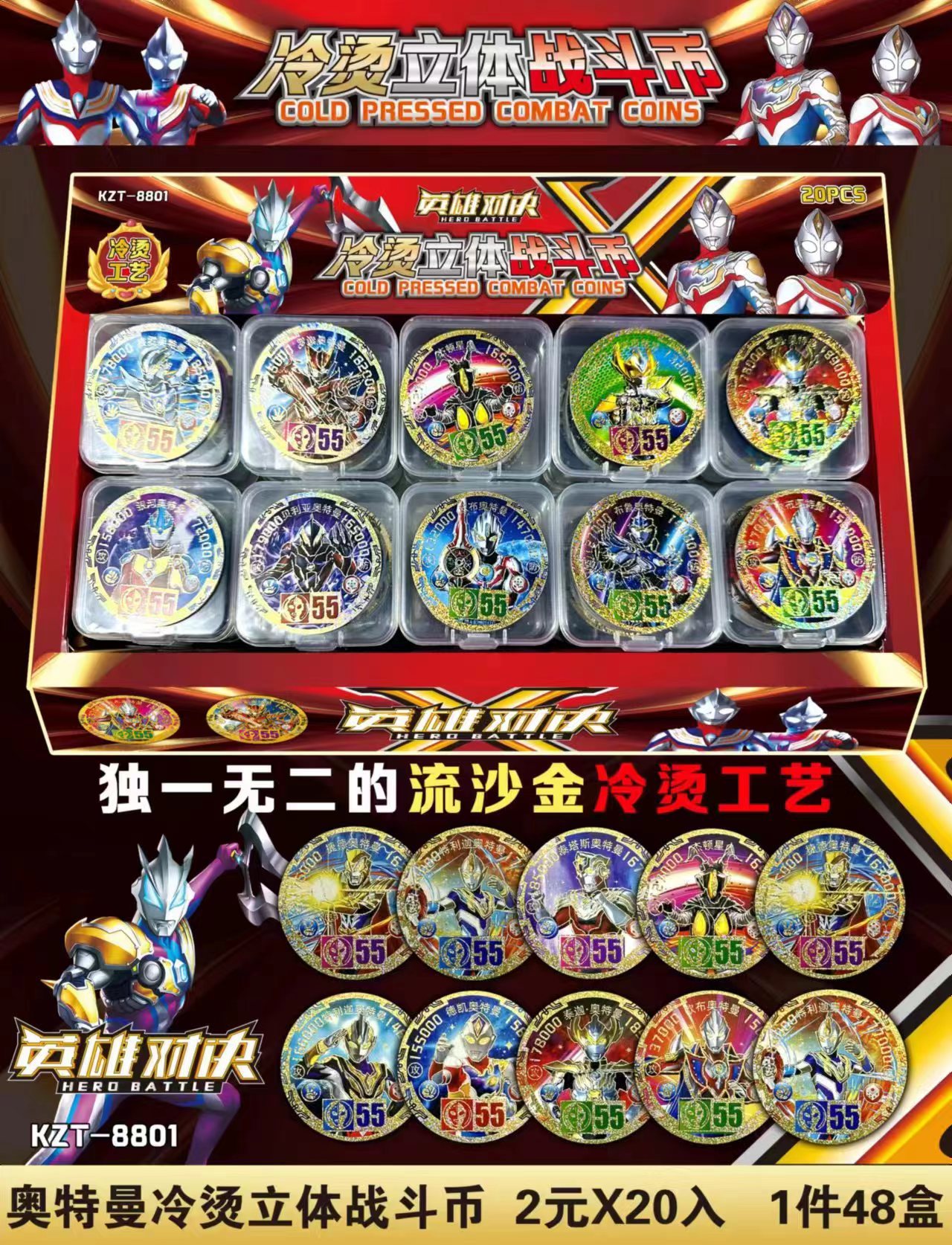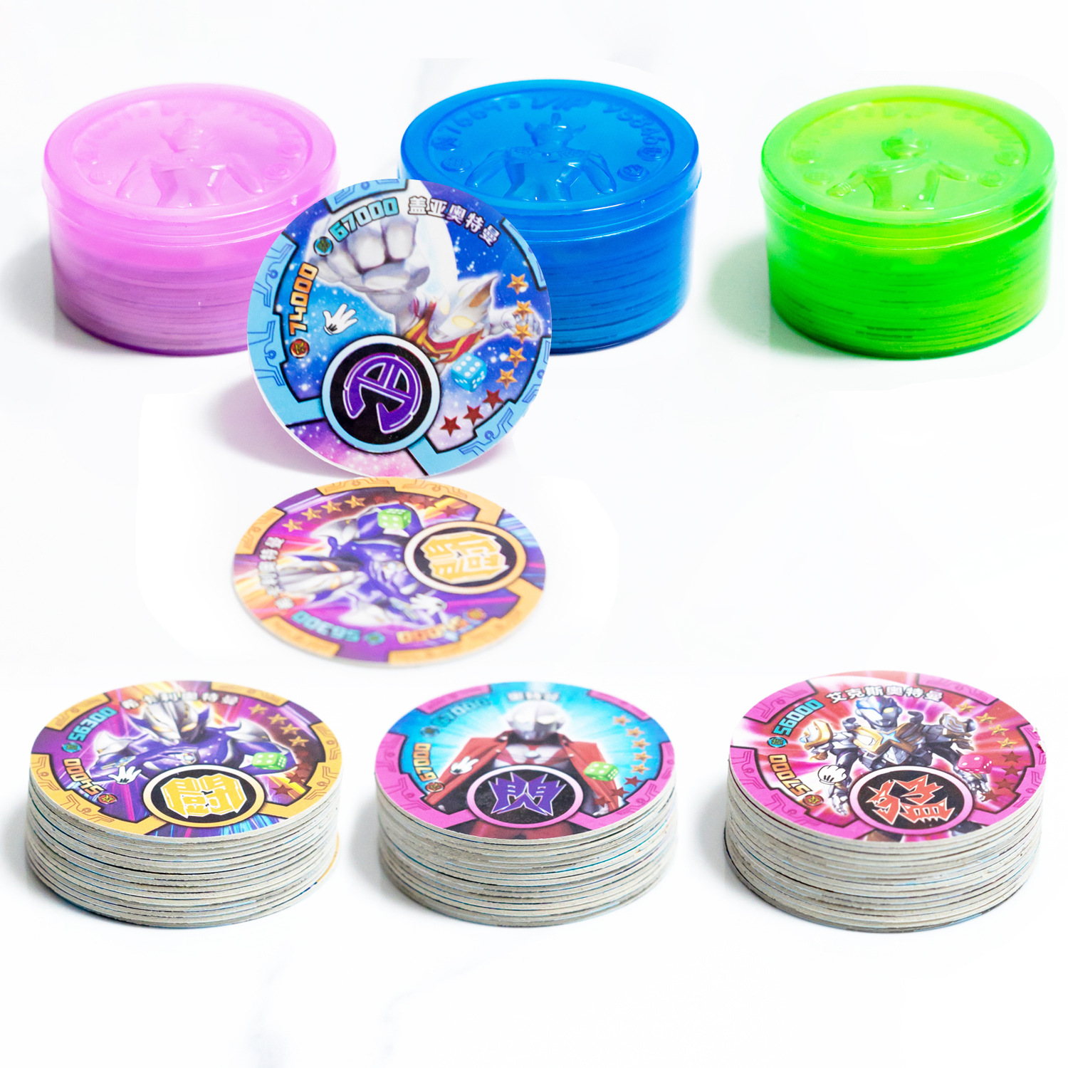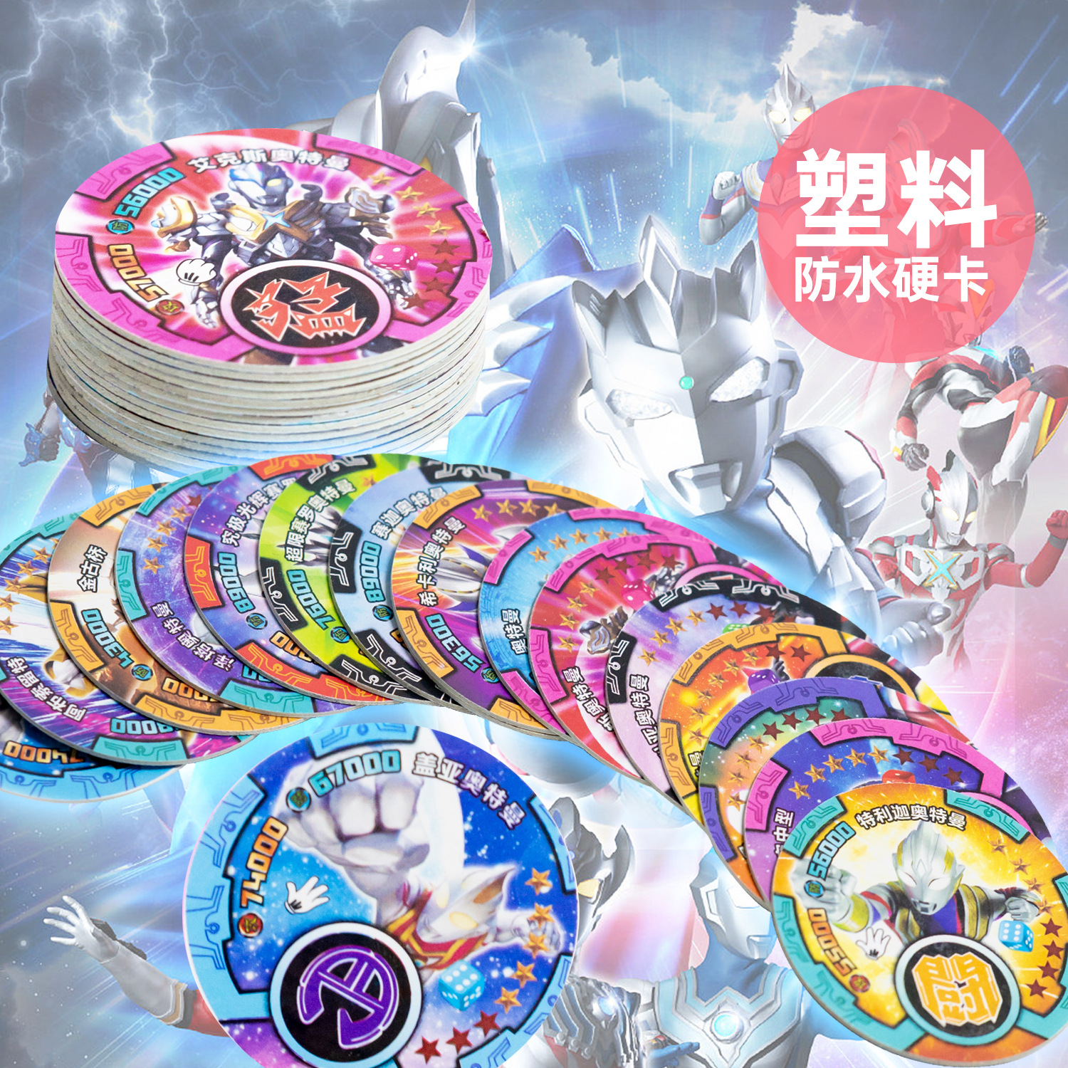 奥特曼圆卡塑料卡片防水加厚游戏战斗币硬卡铁卡卷边全套儿童玩具