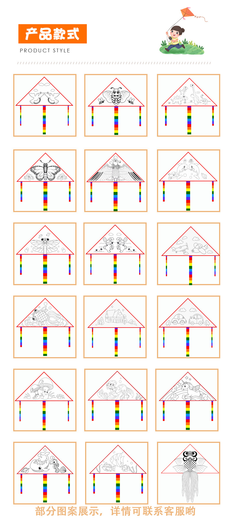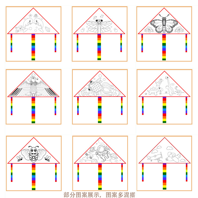 diy空白风筝涂鸦 微风易飞填色风筝儿童diy教学涂色风筝