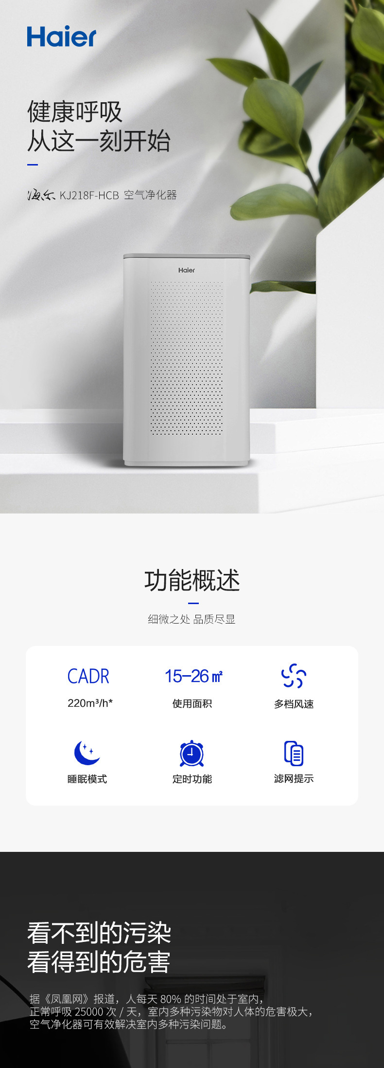 海.尔KJ218F-HCB空气净化器家用卧室空气净化器