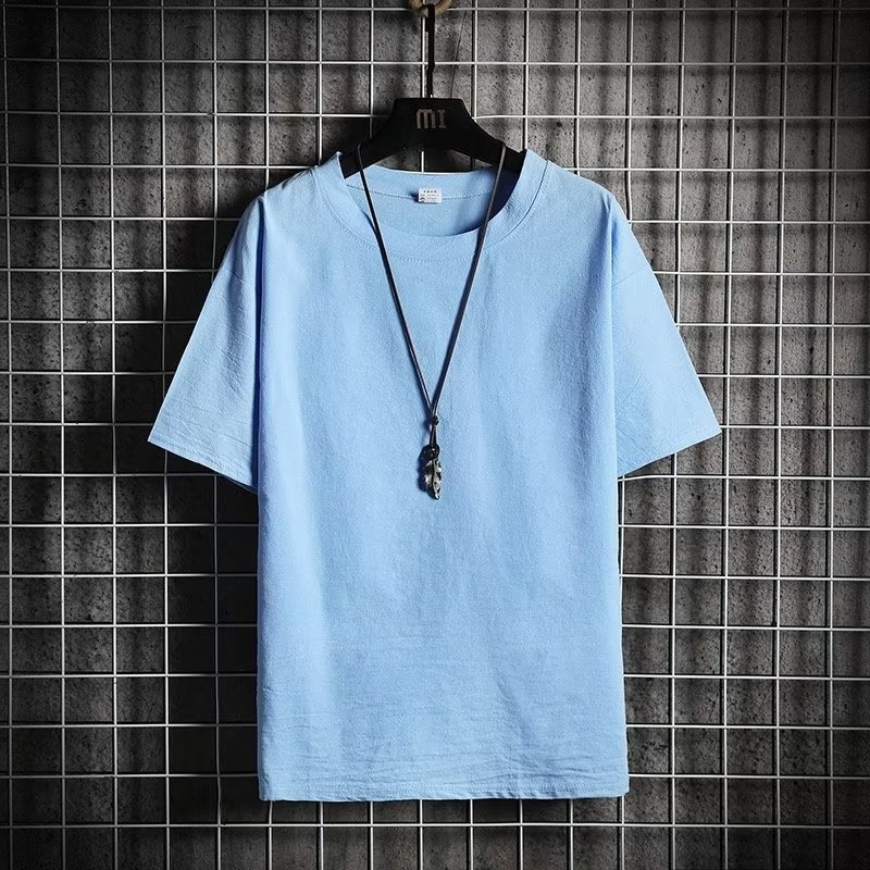 厂家批发亚麻短袖t恤男士夏季新款潮牌潮流宽松棉麻半袖纯色体恤