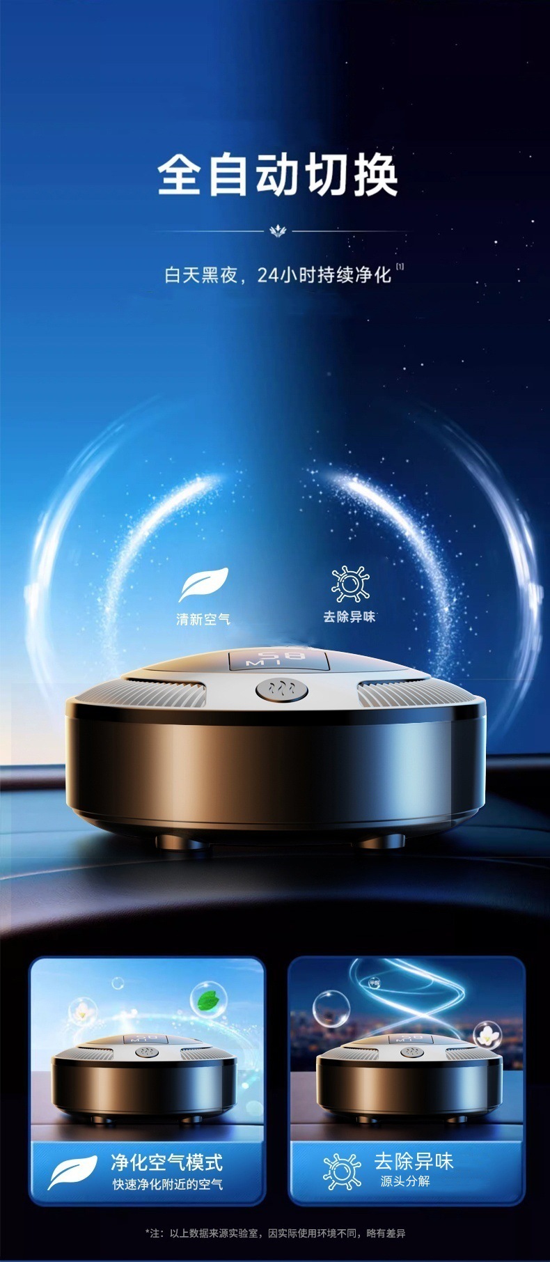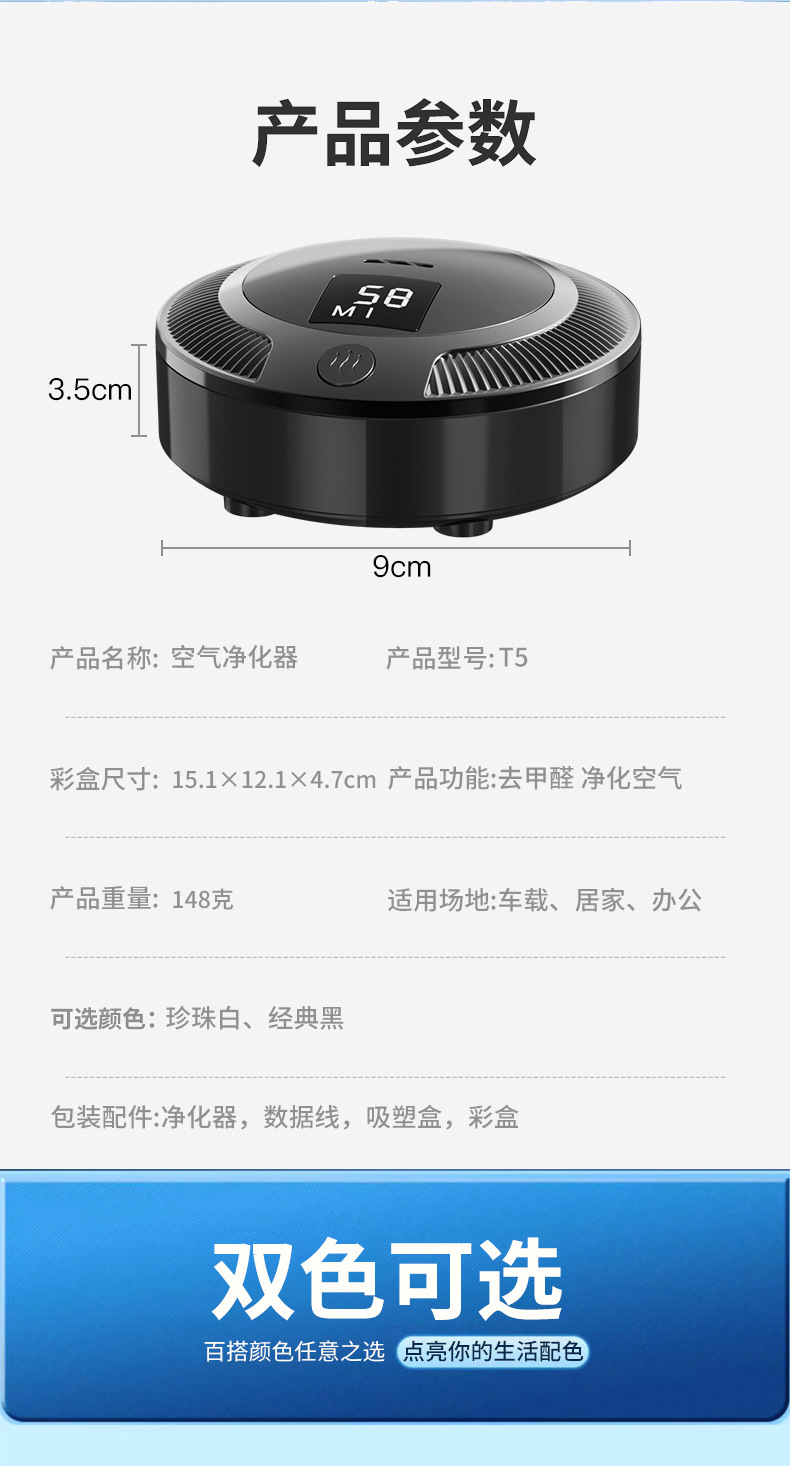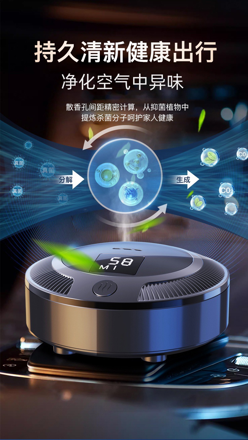 车载空气净化器数显充电款车家两用迷你除味神器车内摆件除味器