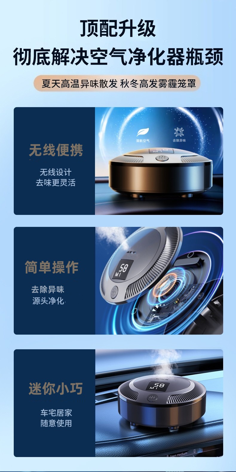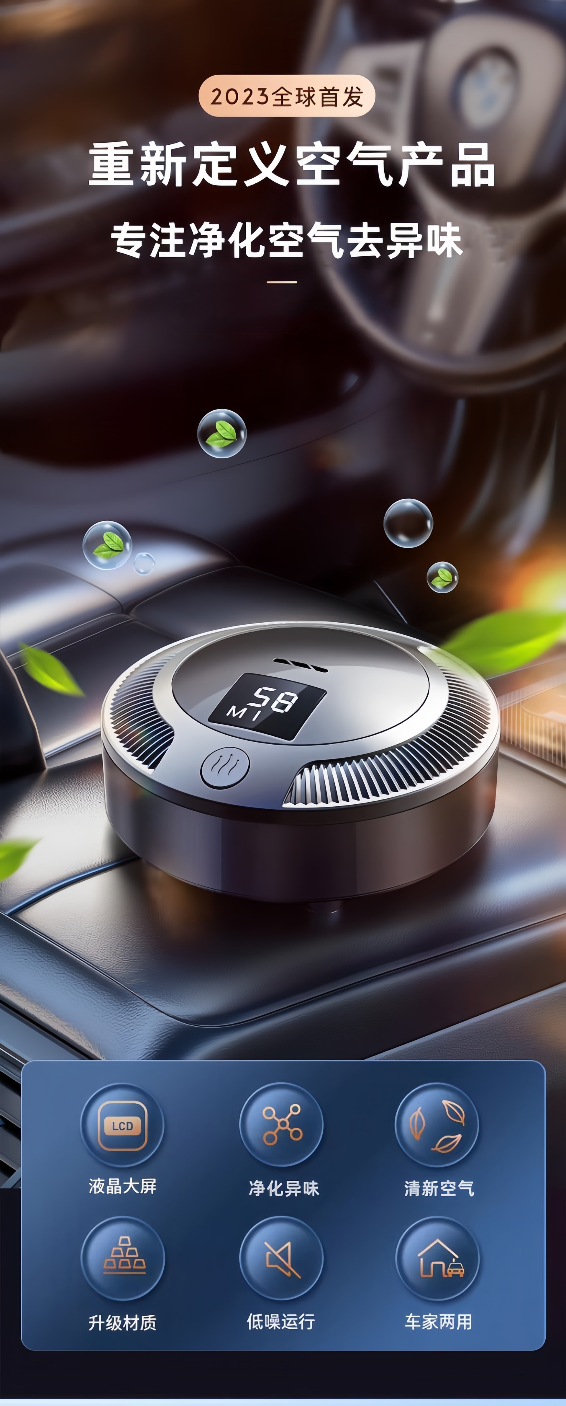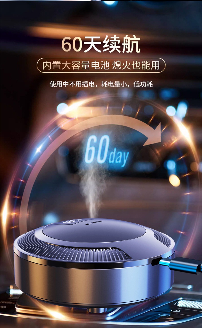 车载空气净化器数显充电款车家两用迷你除味神器车内摆件除味器