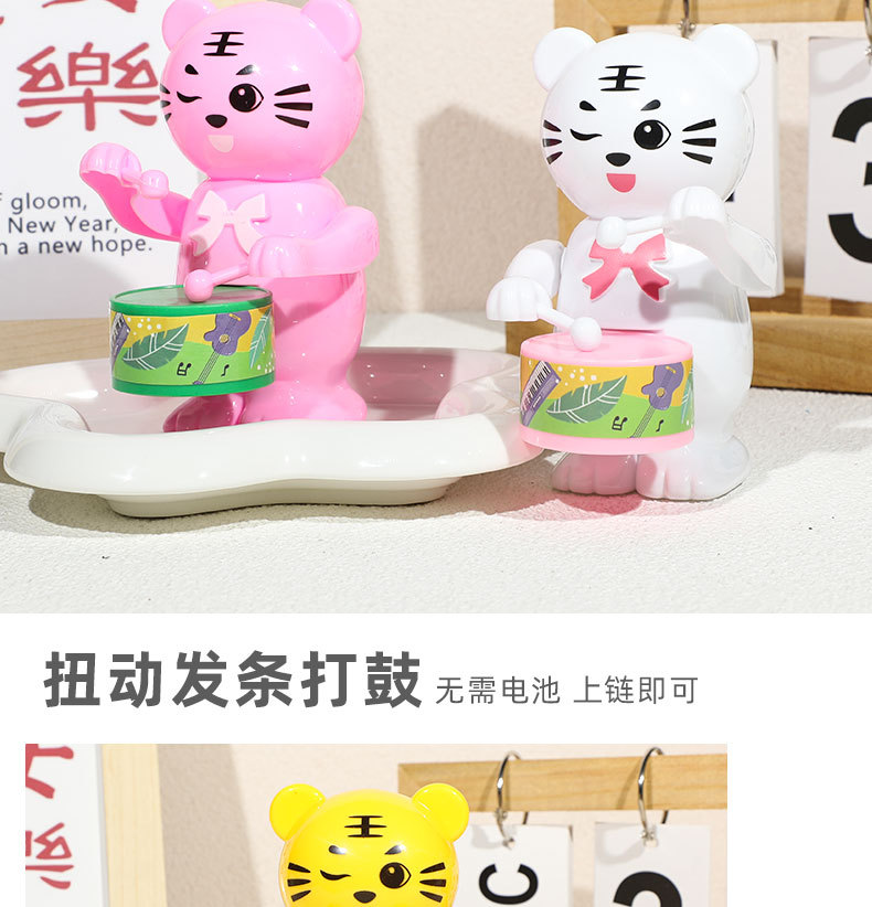 地摊批发 上链发条打鼓小老虎 上弦小动物会敲鼓萌虎婴儿宝宝玩具