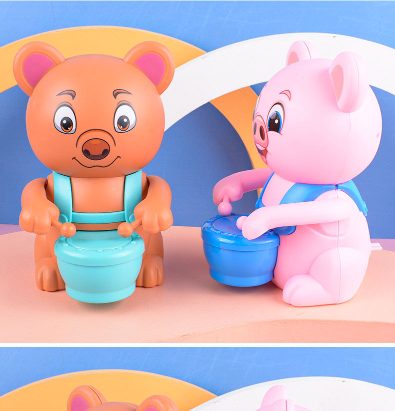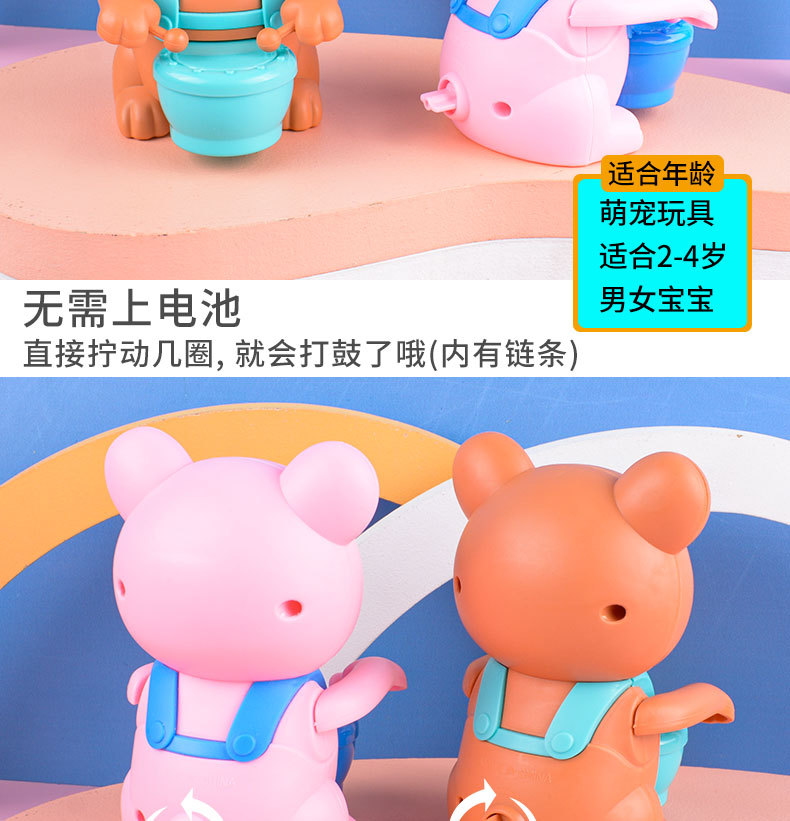 儿童新创意上链发条玩具上链男孩女孩打鼓小熊小猪地摊小玩具批发