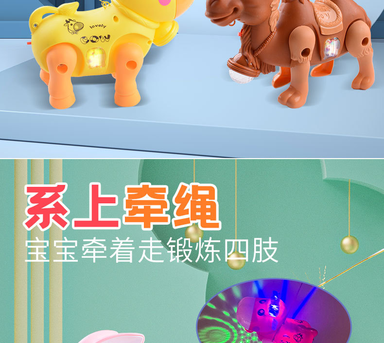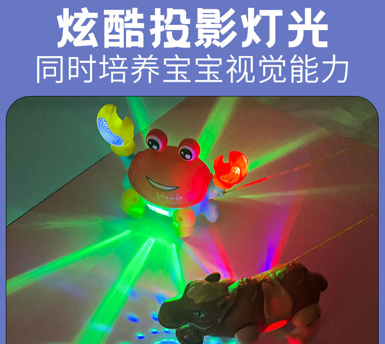地摊批发螃蟹牵绳玩具电动爬行动物发光小牛儿童闪光音乐早教玩具