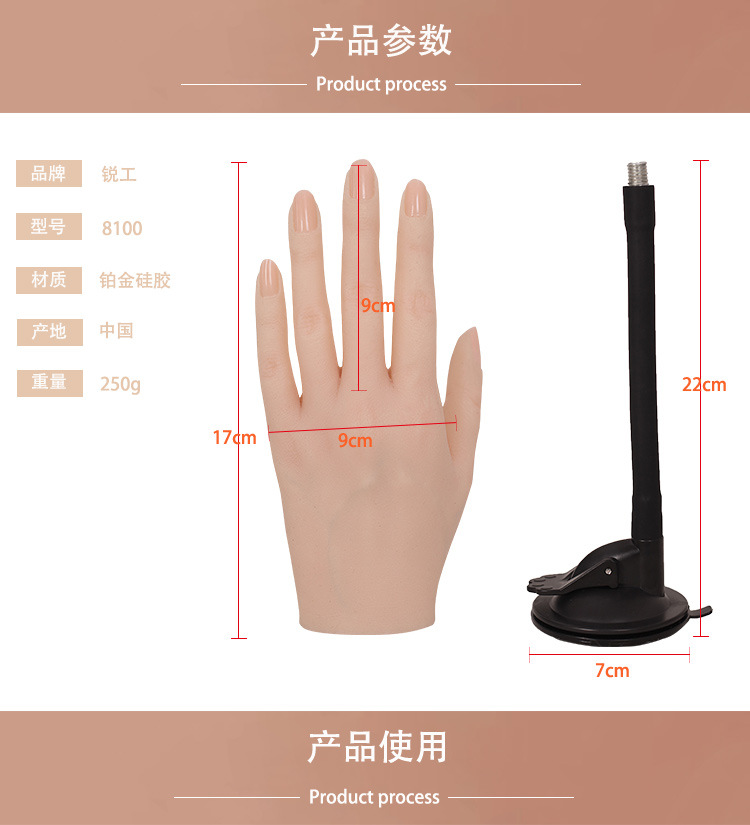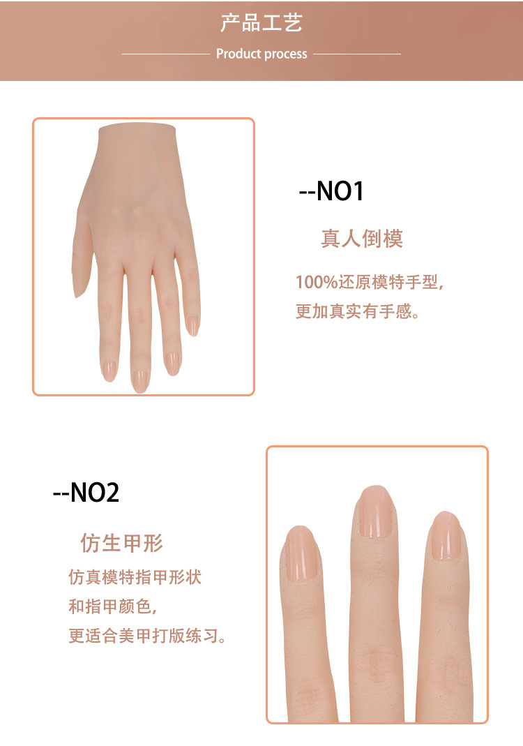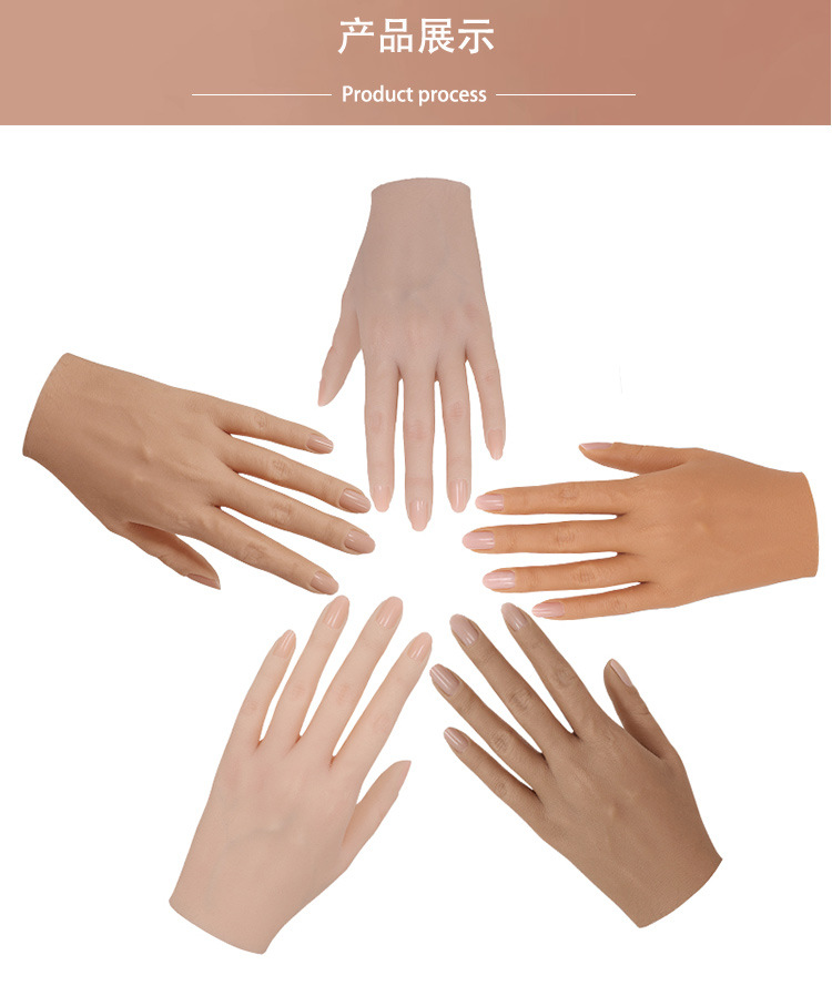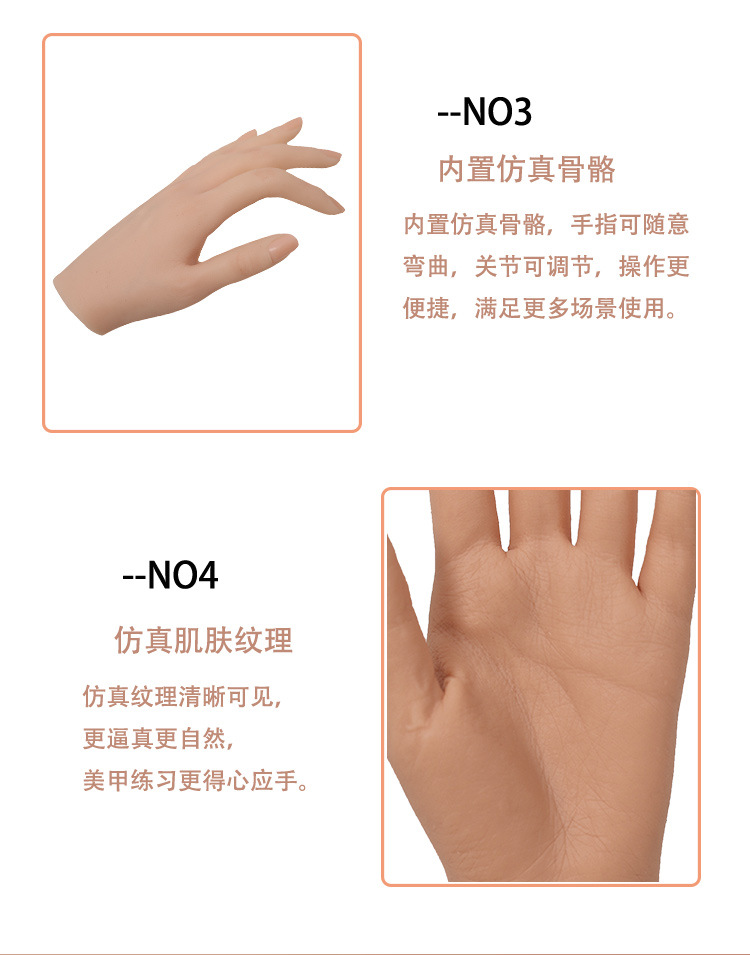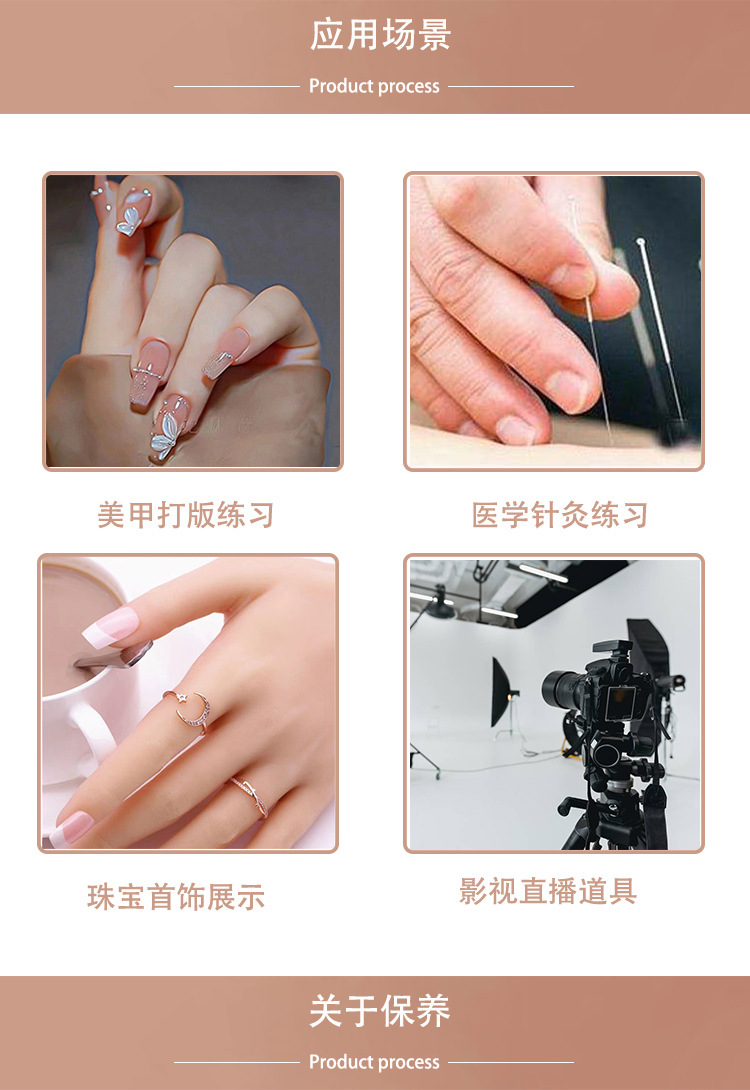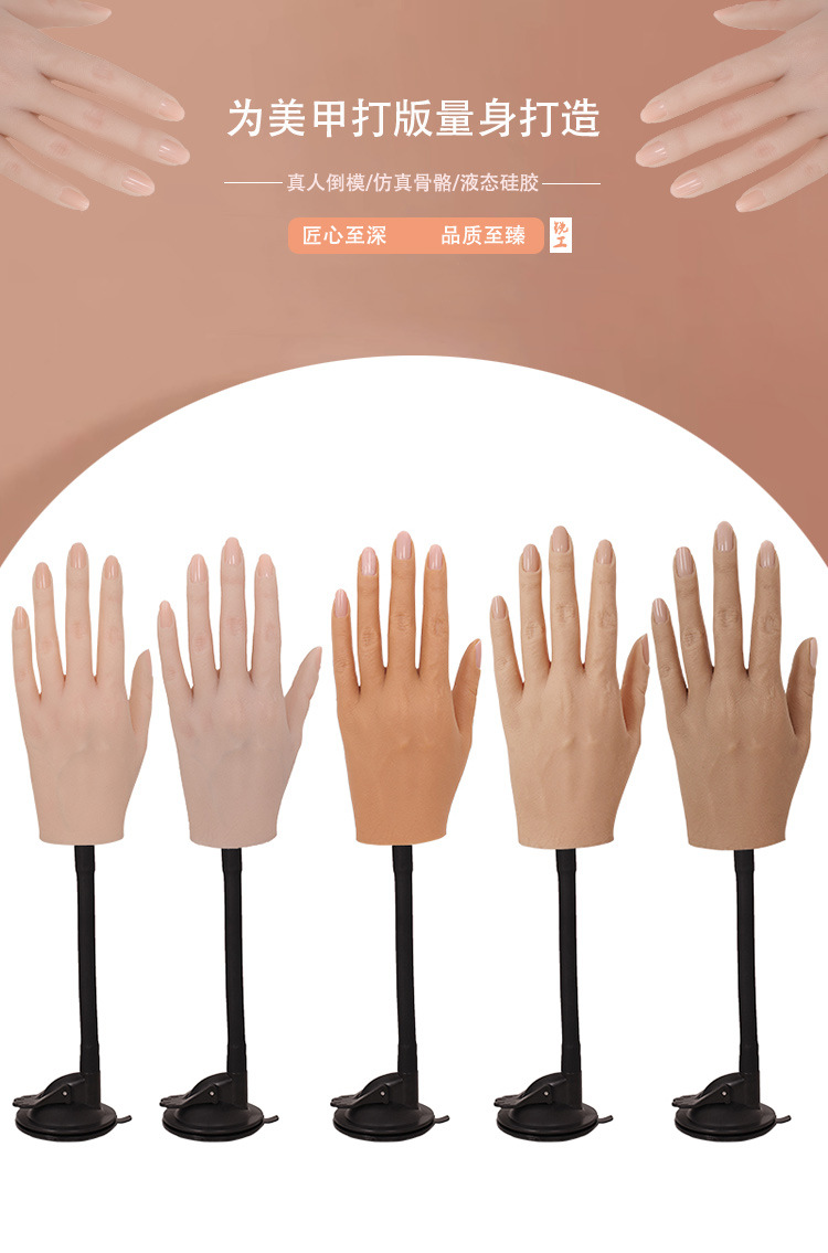 新款美甲打版练习铂金硅胶手模型直播展示道具带骨手指可弯曲