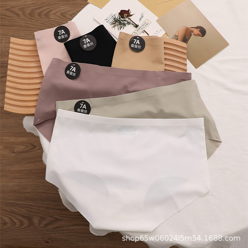 7A桑蚕丝冰丝内裤女奶皮中腰无痕少女裆三角裤女士美拉德透气
