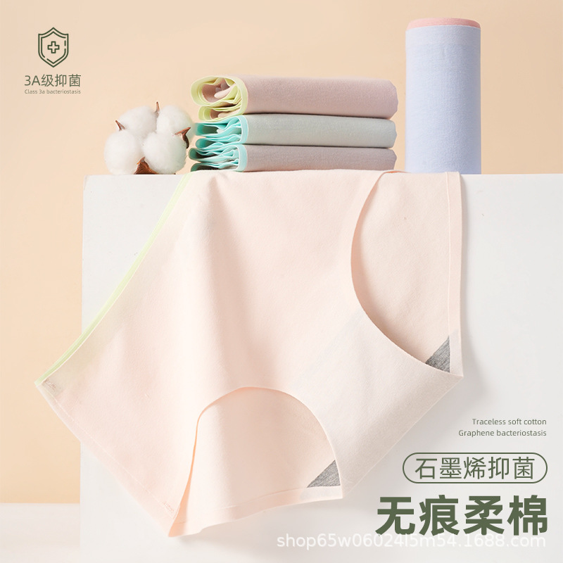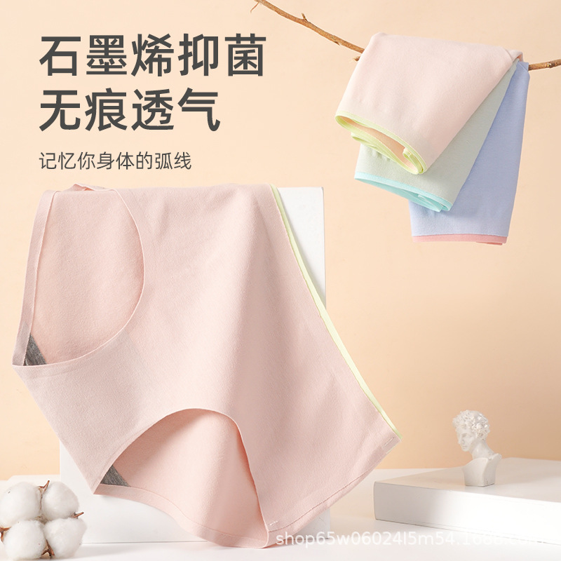 无痕内裤女中腰石墨烯裆菌少女学生内裤秋冬款撞色日系女三角裤
