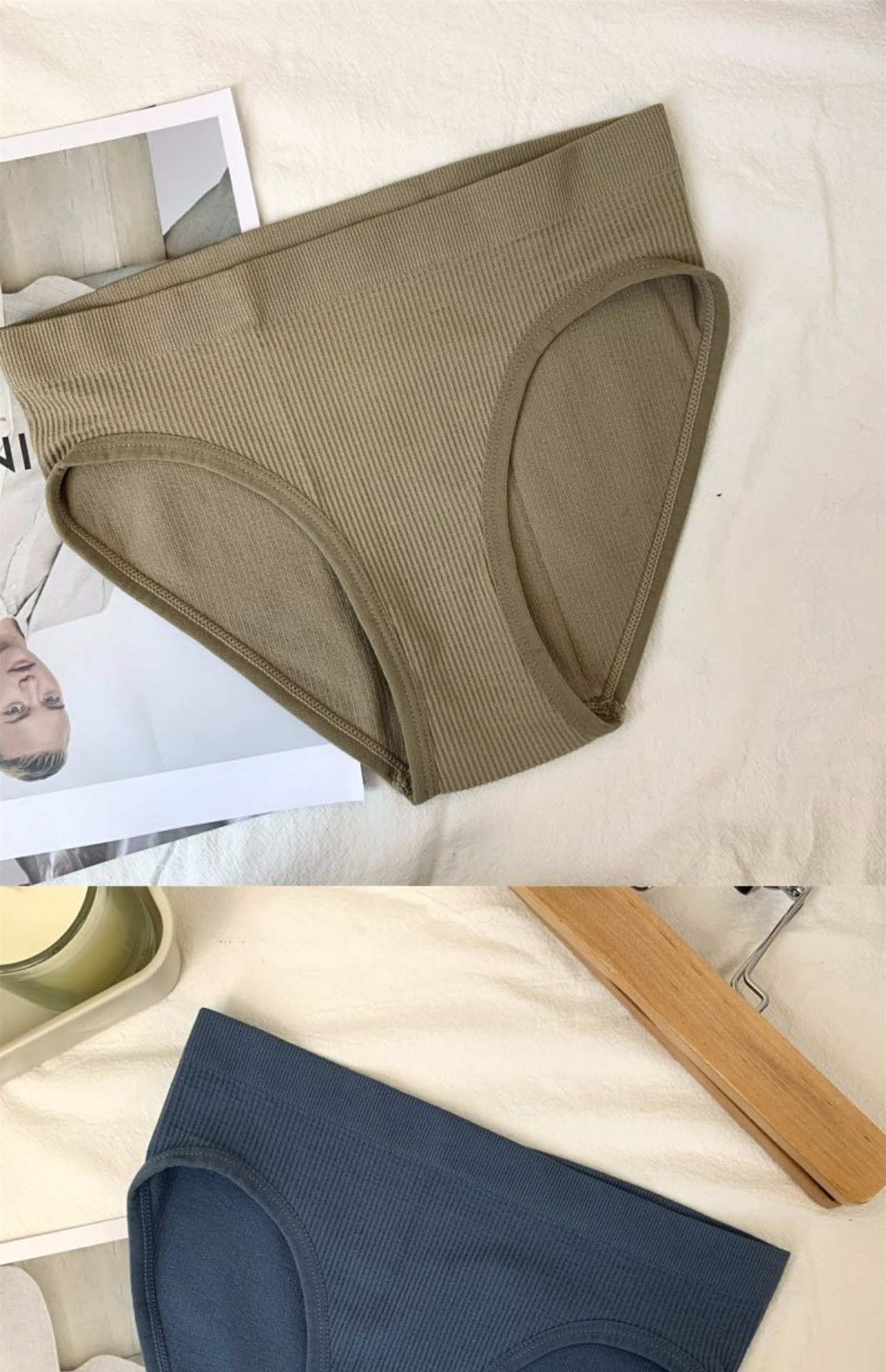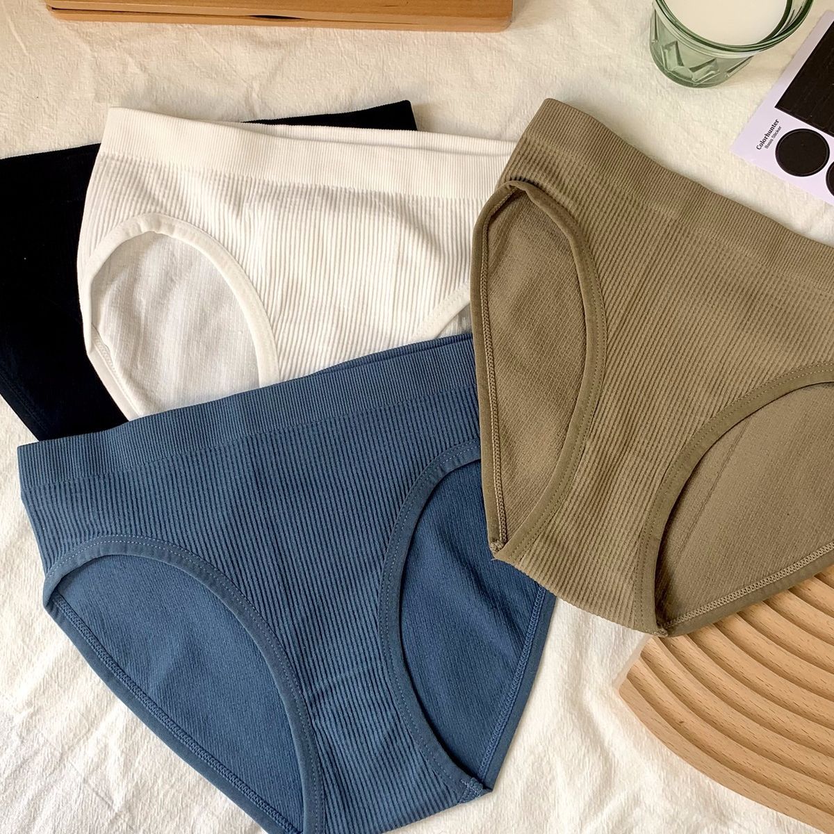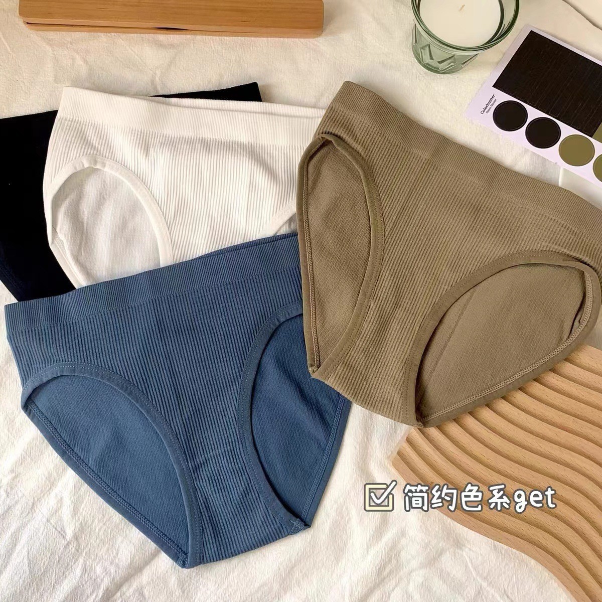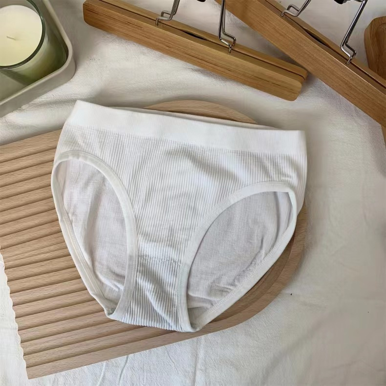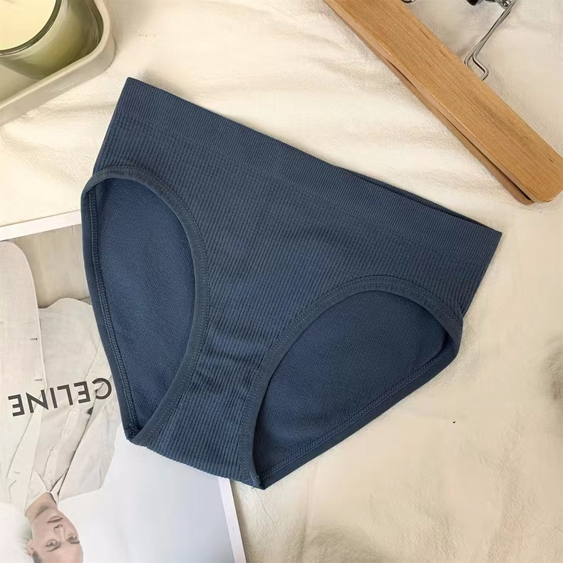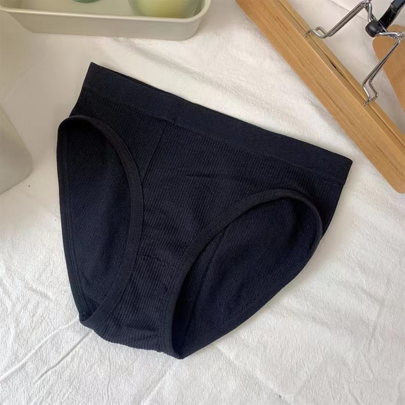 日系少女条纹舒适纯棉内裤女无缝素色中腰外贸批发运动欧美三角裤