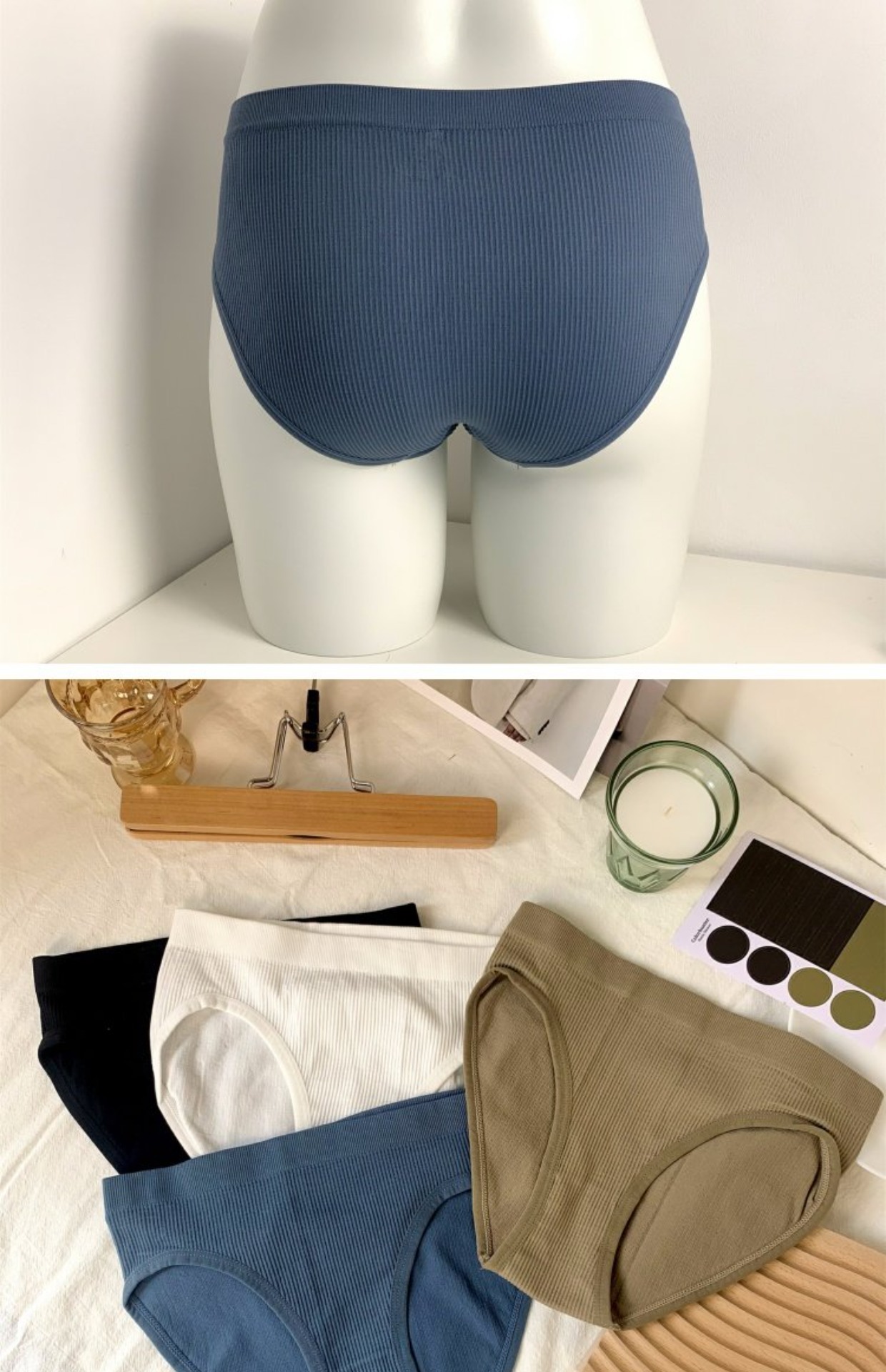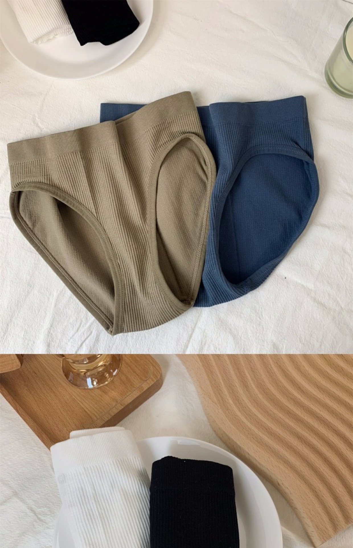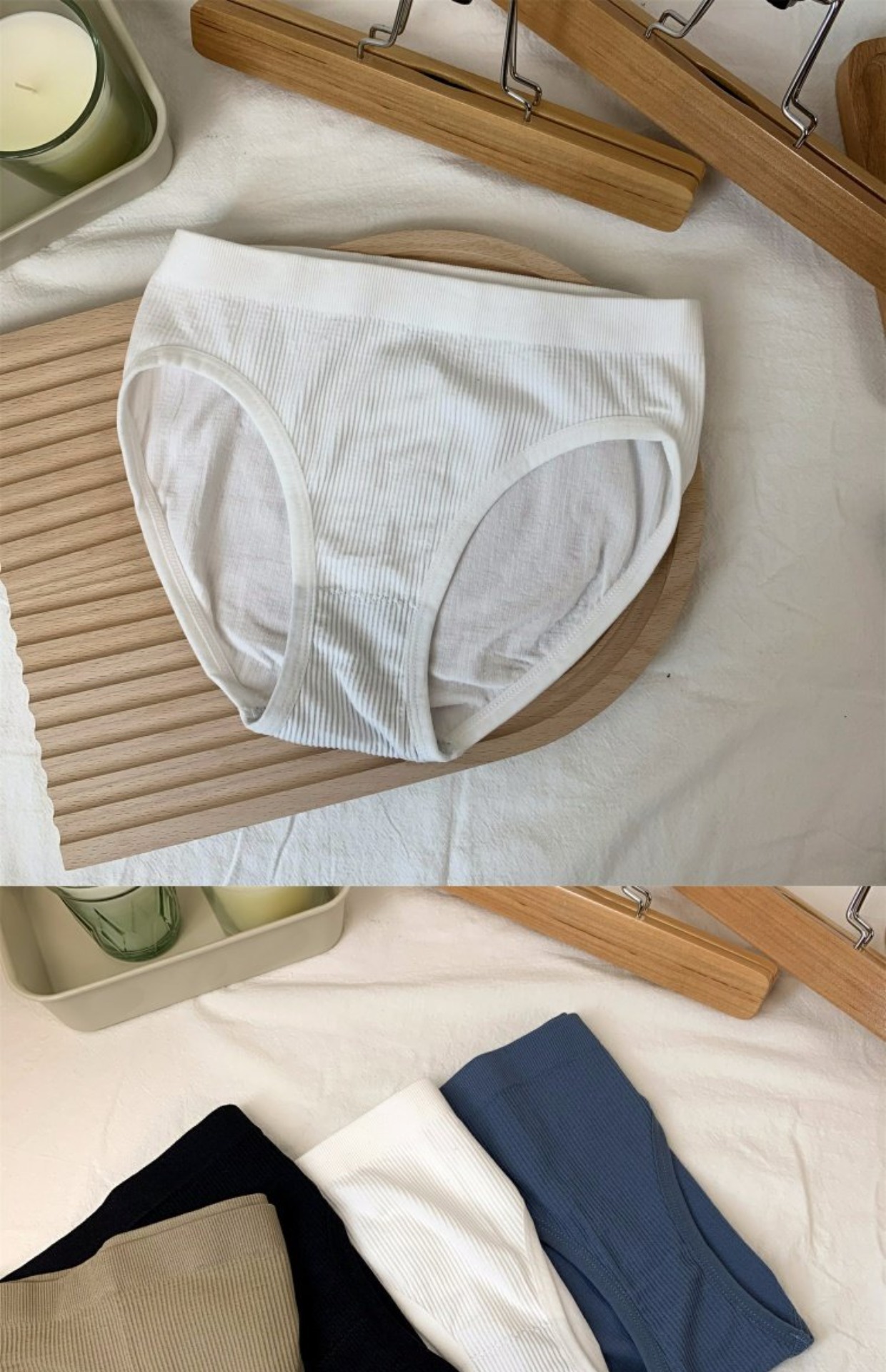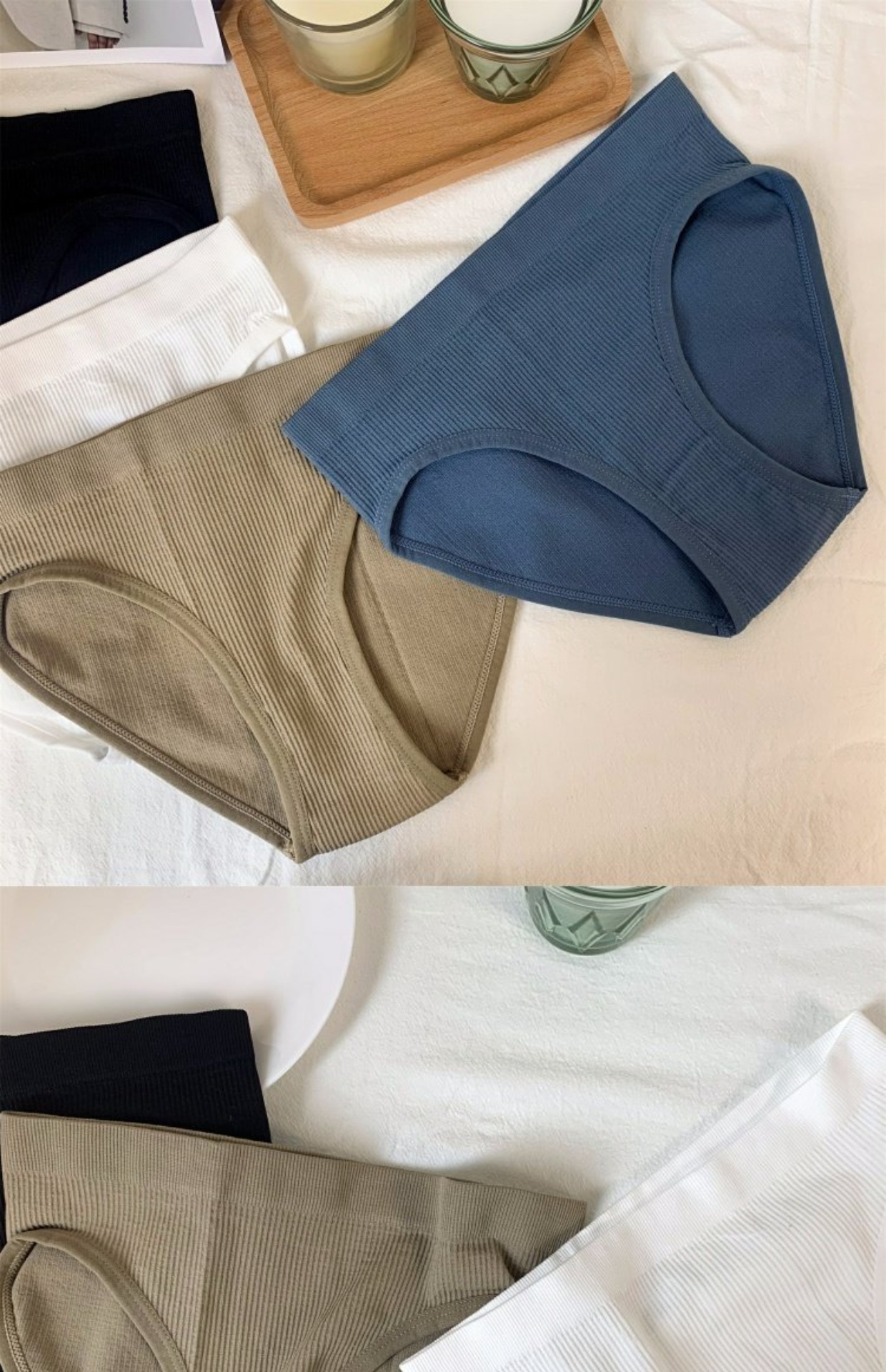 日系少女条纹舒适纯棉内裤女无缝素色中腰外贸批发运动欧美三角裤