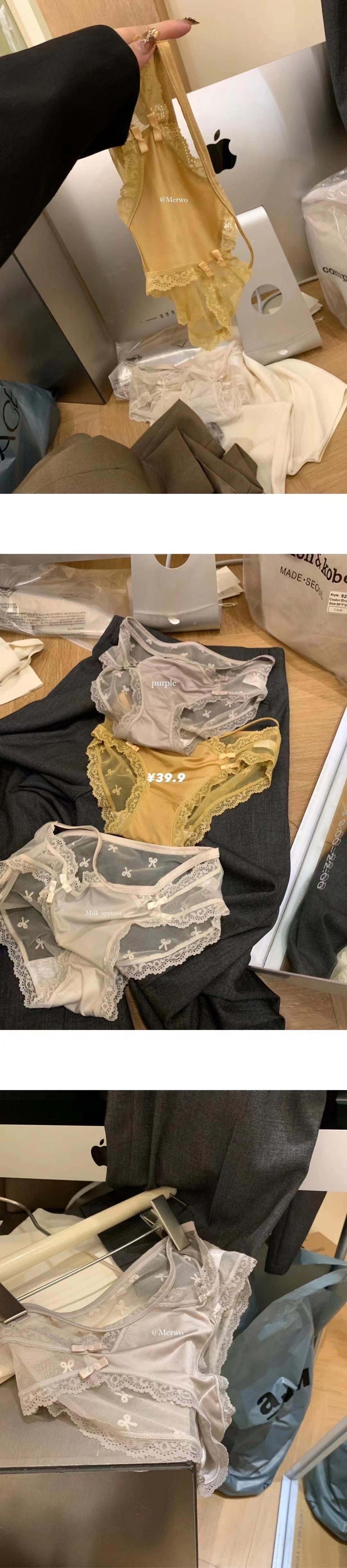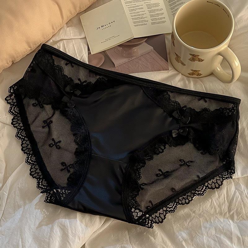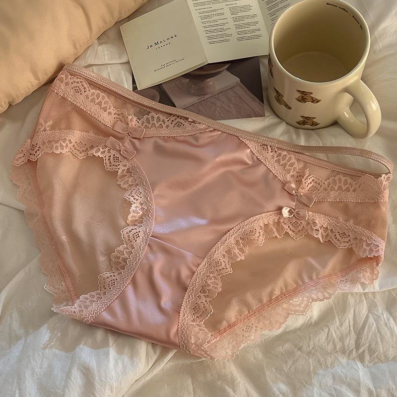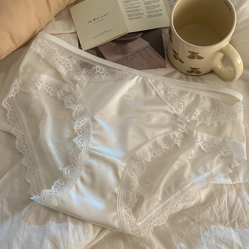 纯欲法式缎面镂空蕾丝网纱透气少女风三角裤性感冰丝春夏内裤女