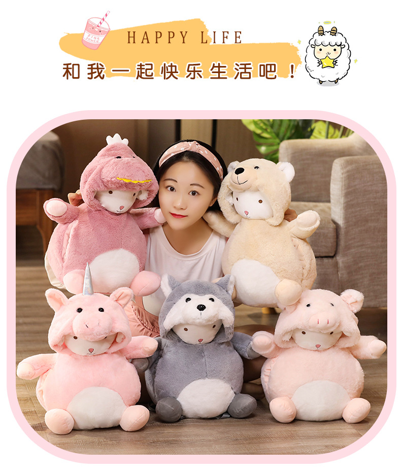 毛绒玩具卡通创意羊公仔三合一娃娃玩偶节日礼物女孩睡觉兔子抱枕