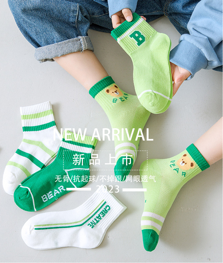 无骨抗起球 儿童棉袜短筒高橡筋春夏款薄棉网眼潮袜男童中大童