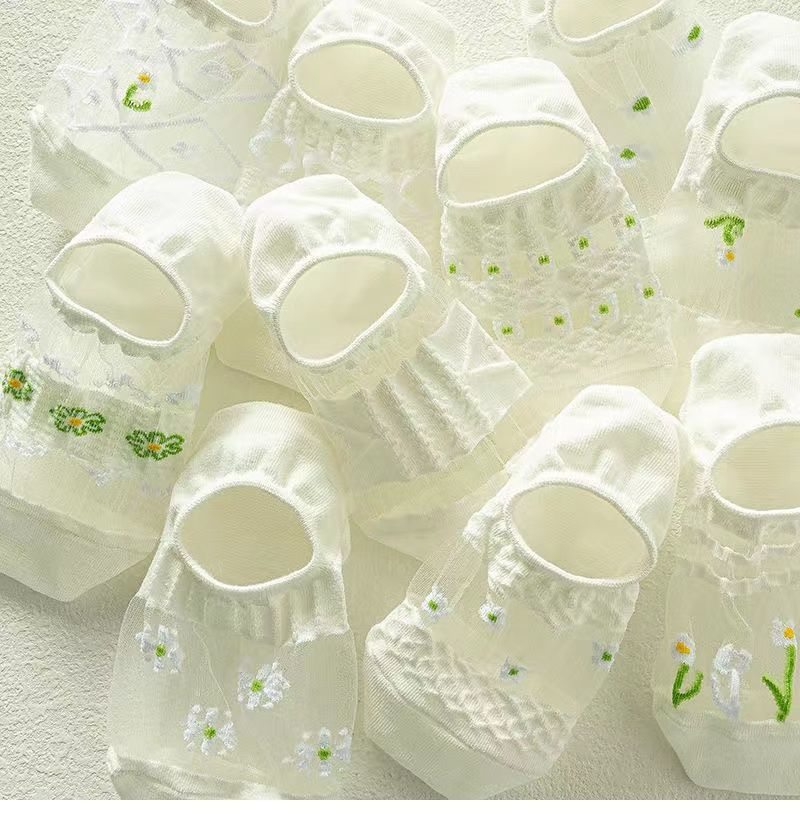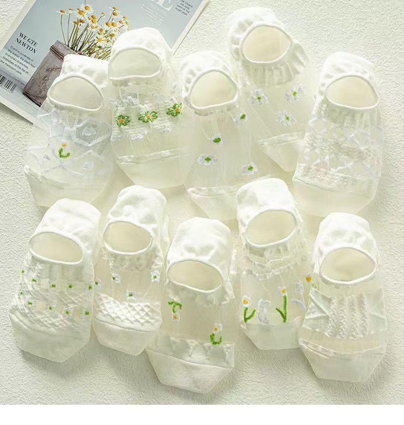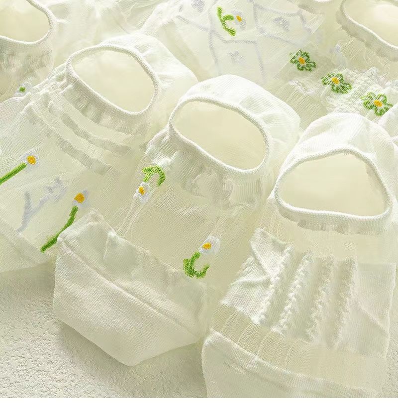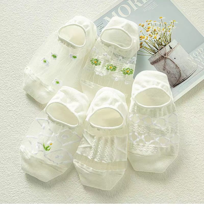 船袜女夏白色镂空透气清凉夏季袜子短款隐形袜超薄透气不掉跟袜子