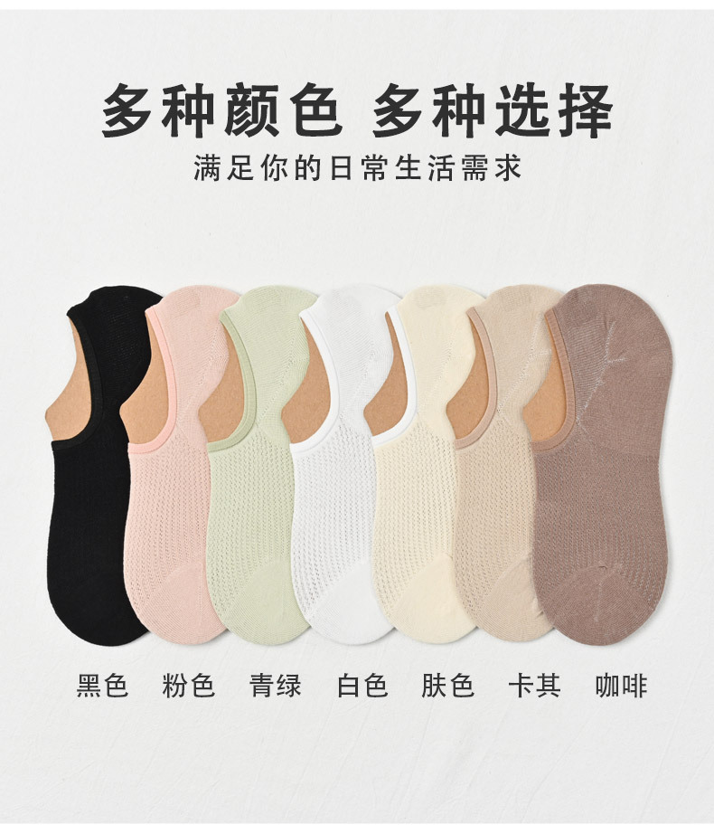 2023年夏季新款袜子女棉袜透气网眼超薄款防滑不掉跟隐形短筒船袜