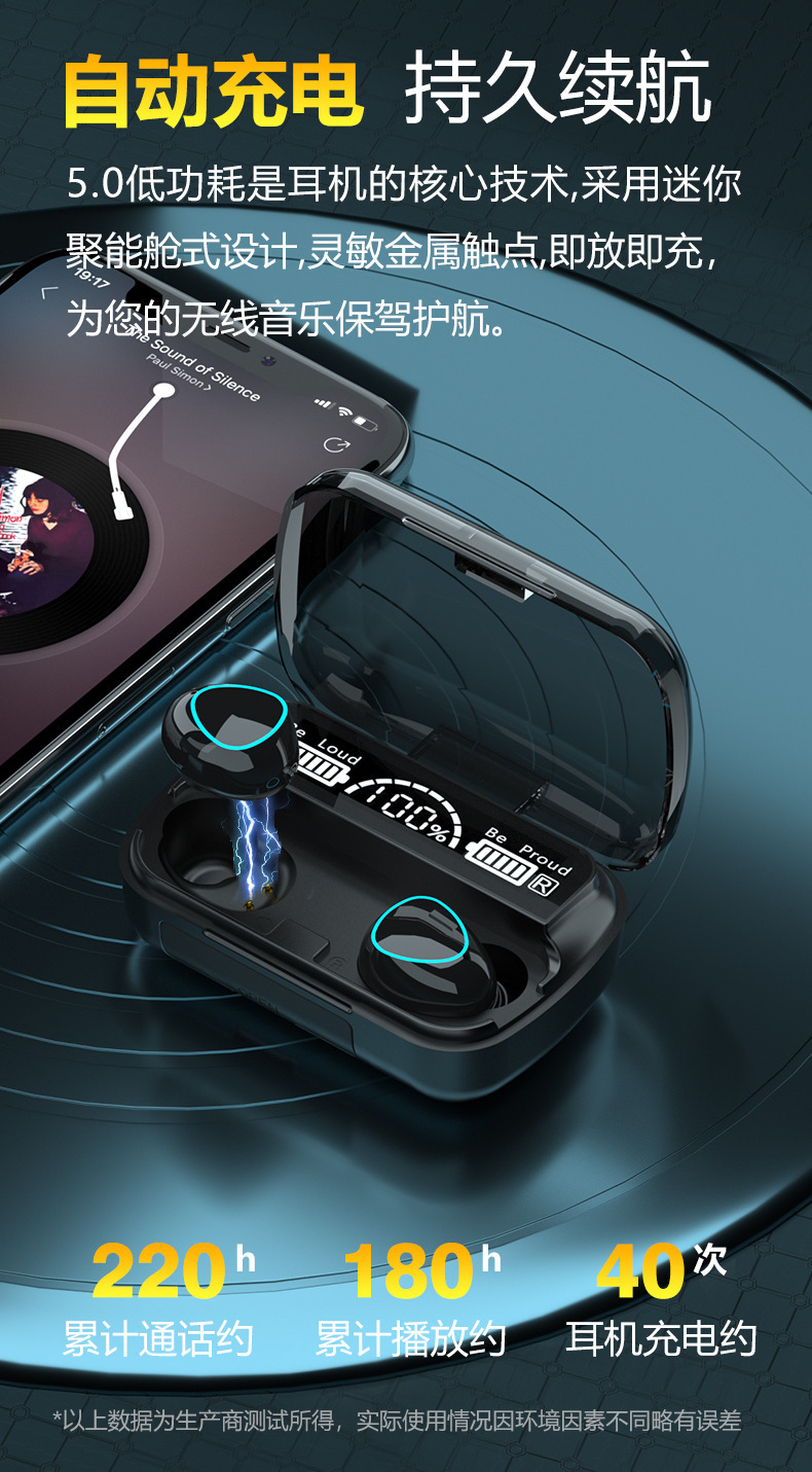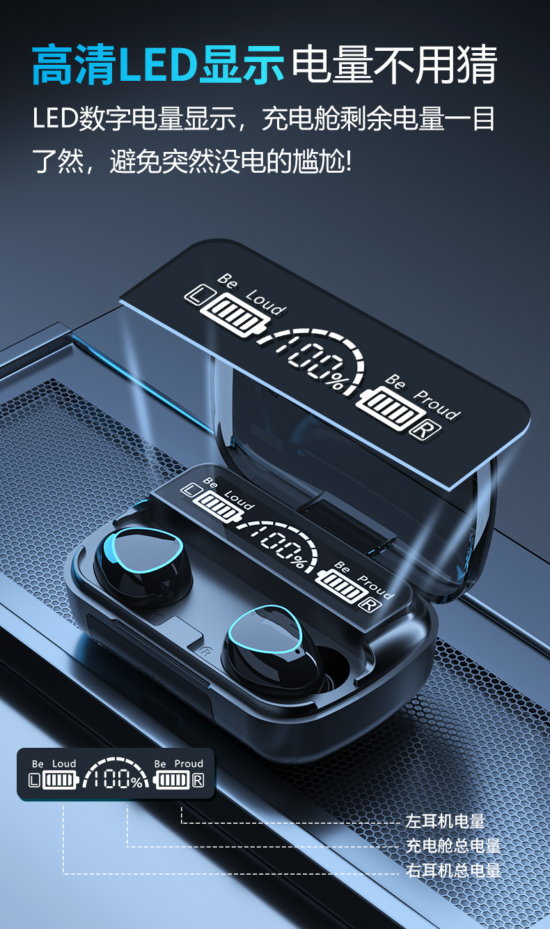 跨境热款M10蓝牙耳机M12大屏数显炫彩RGB动态灯效TWS游戏无线耳机