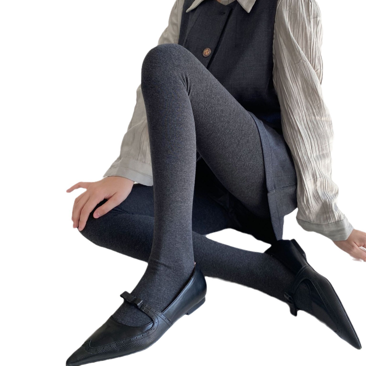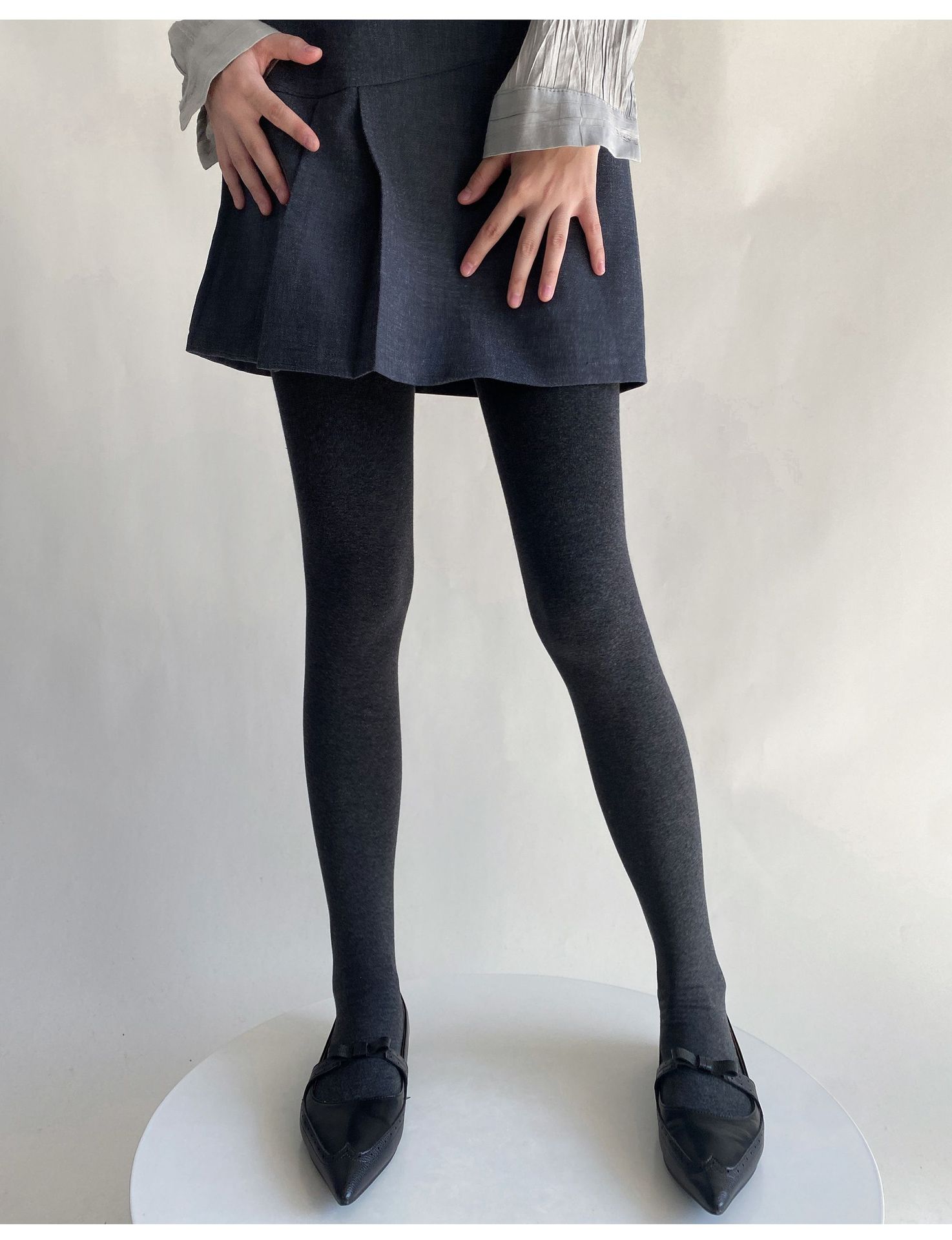 秋冬900D竖条加绒加厚保暖连裤袜女纯色打底袜平板袜裤基础款百搭