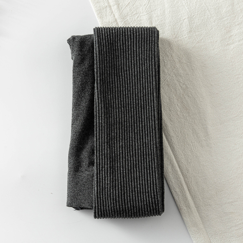 春秋棉竖条纹打底裤女款外穿白色连裤袜日系螺纹针织九分打底裤袜