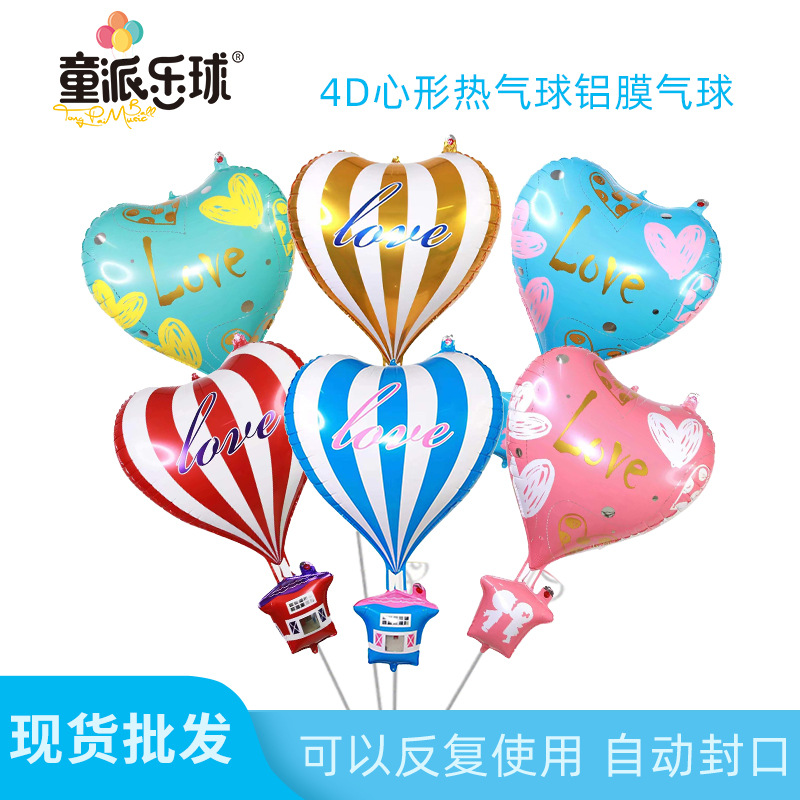 新款4D心形飘空热气球铝膜气球情人节派对商场活动生日装饰批发