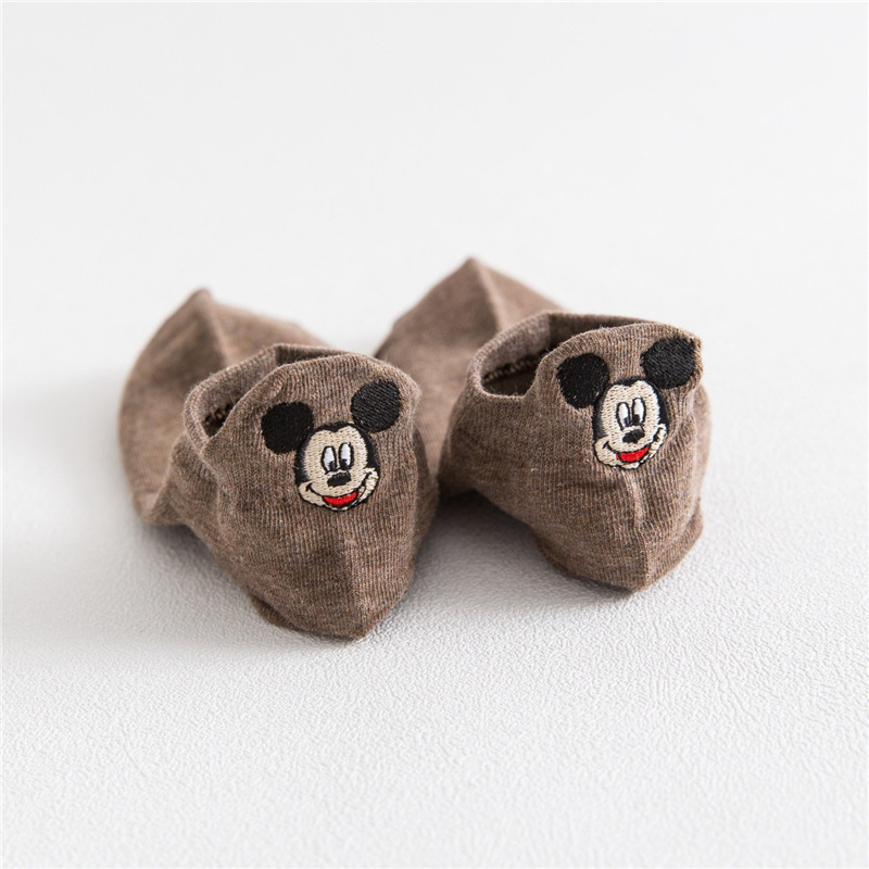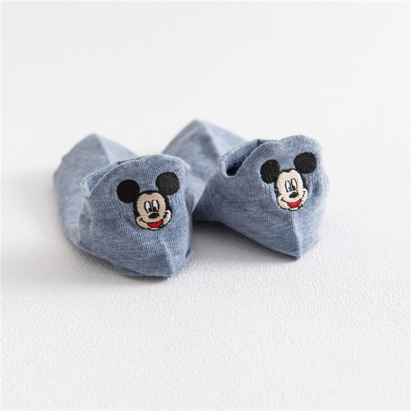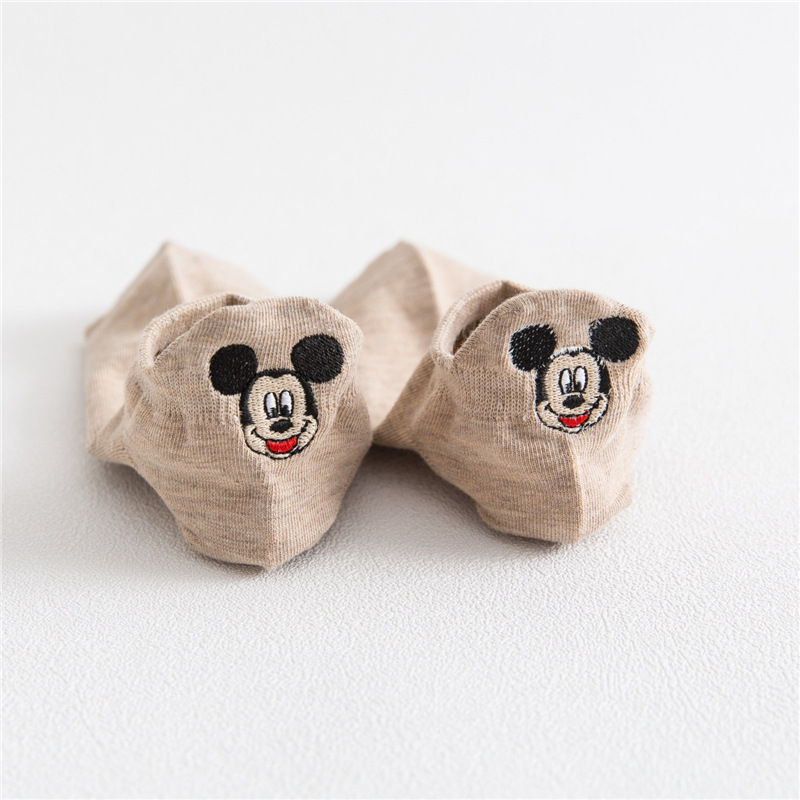 春夏新品袜子日系米老鼠刺绣女士船袜纯色低帮浅口短袜现货