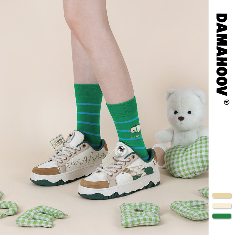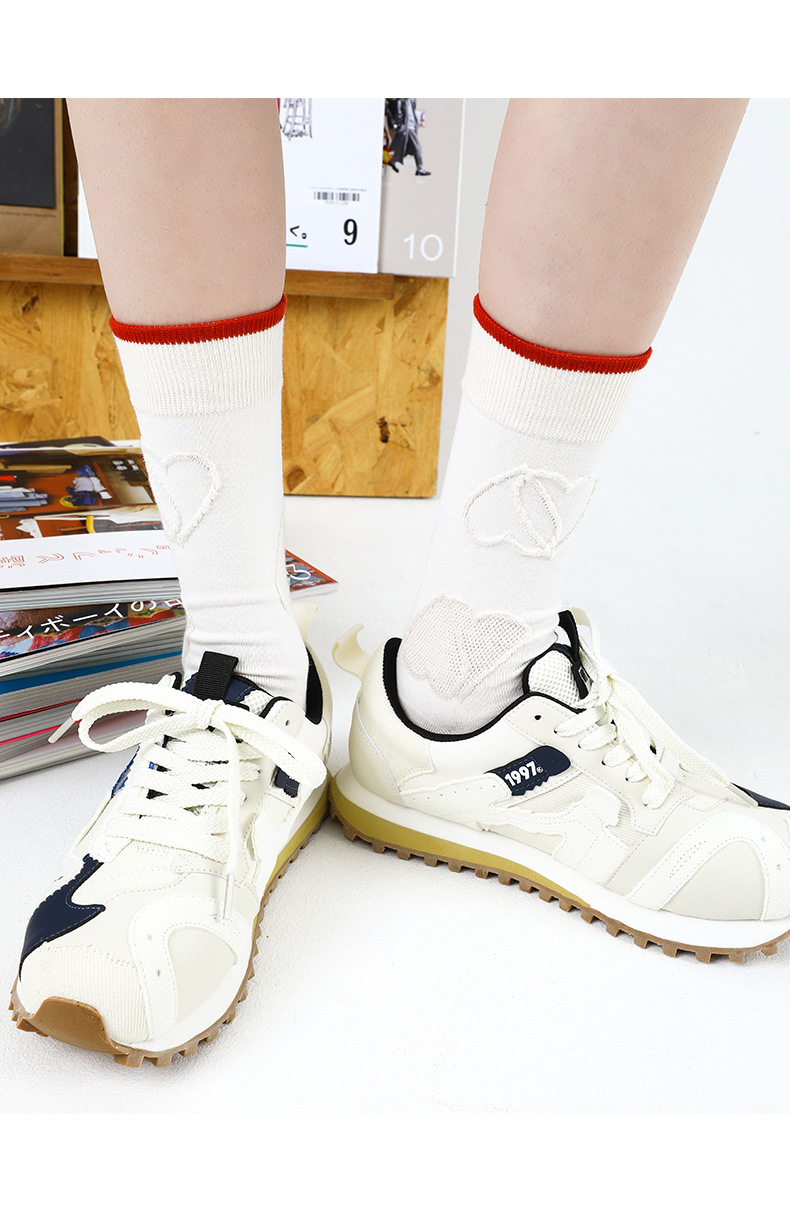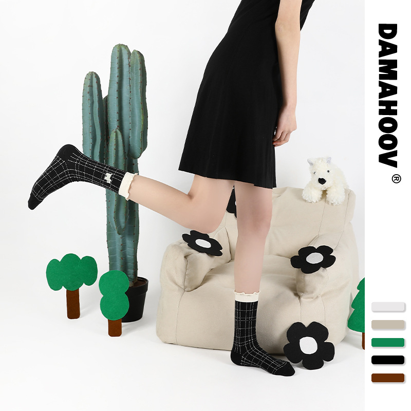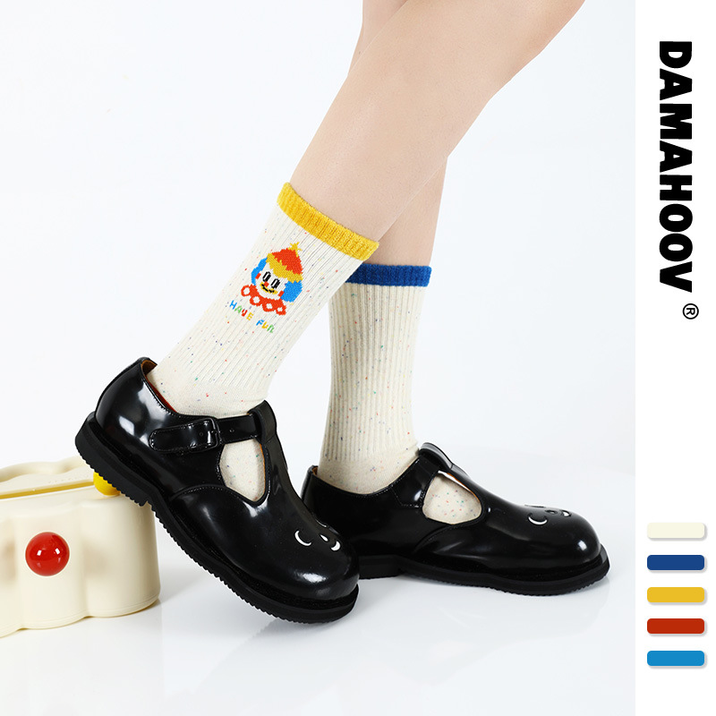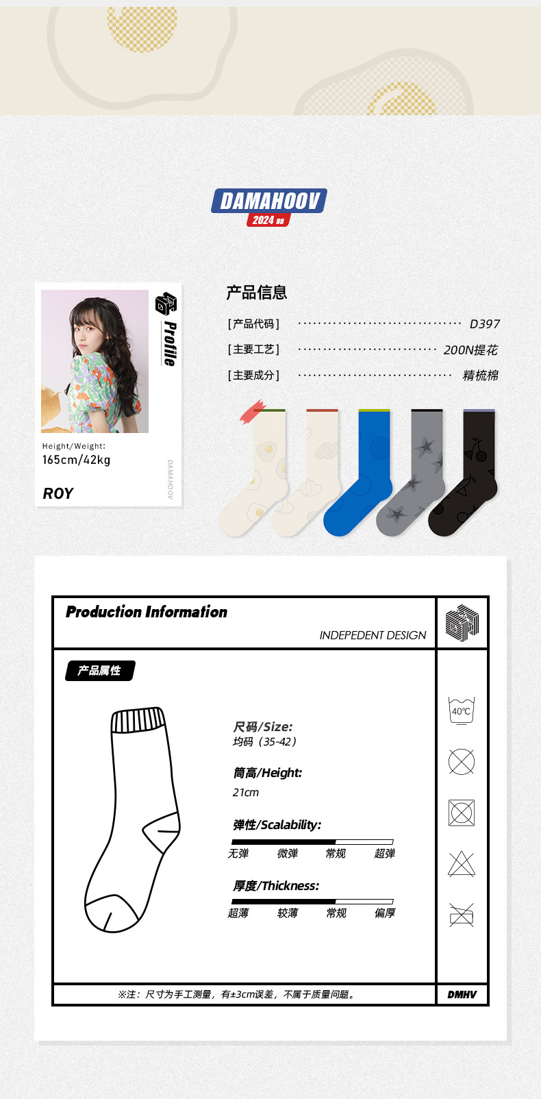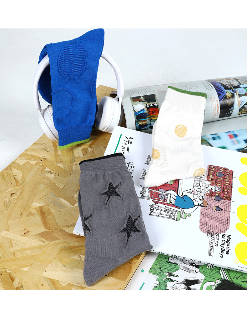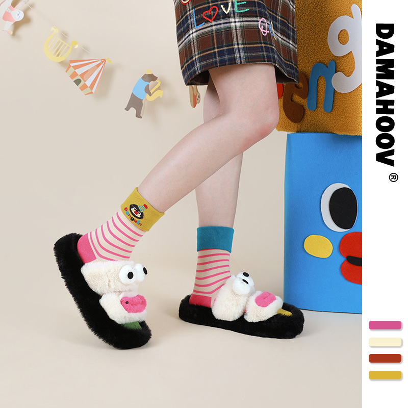 夏季新款诸暨袜子女月子袜无骨袜透气卡通爱心情侣款中筒休闲袜子