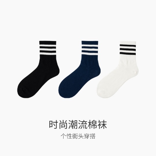 条纹袜子女春秋季情侣外穿中筒袜运动高腰长筒袜男袜运动袜子批发
