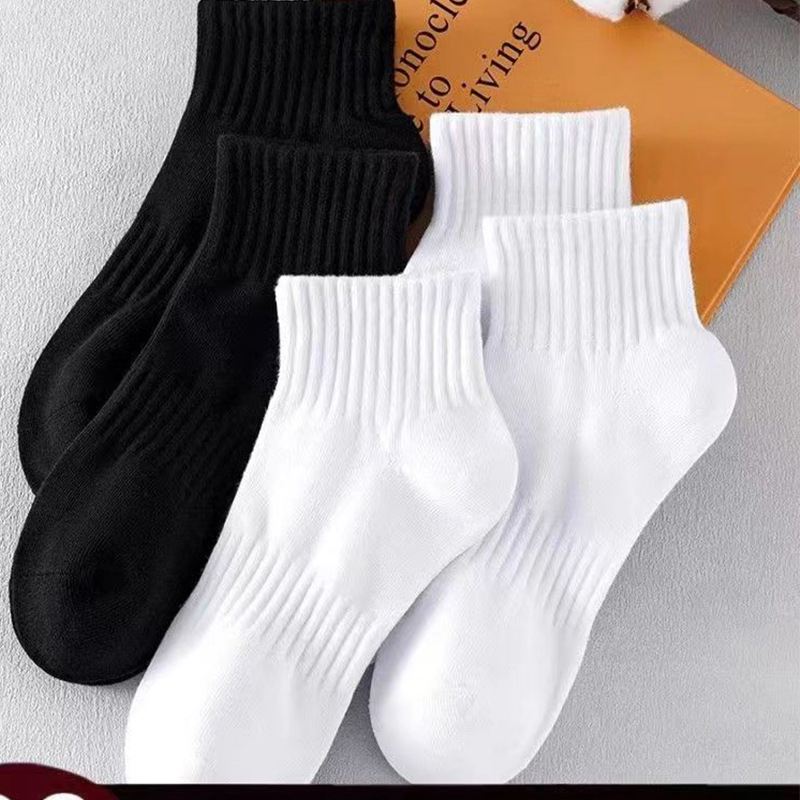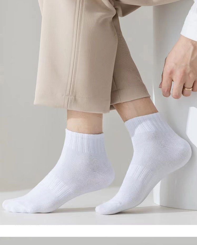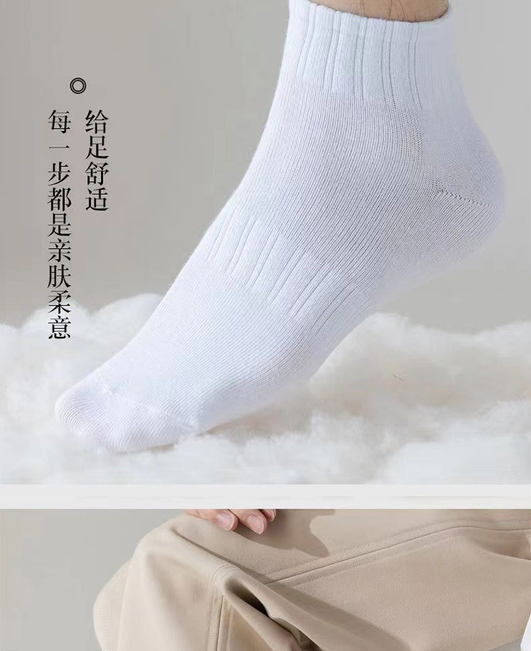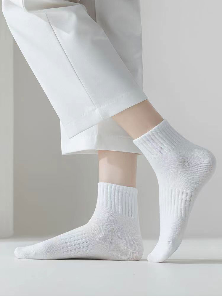 诸暨白袜子男士短袜夏季纯色全棉中筒袜防臭春秋款男生运动情侣袜