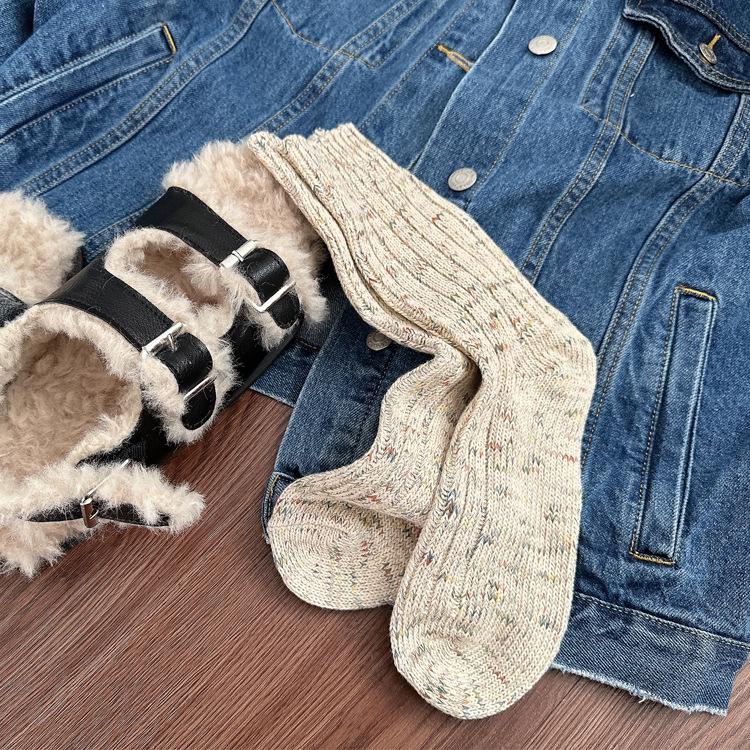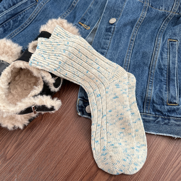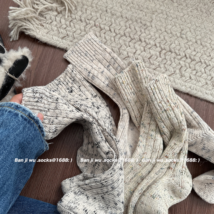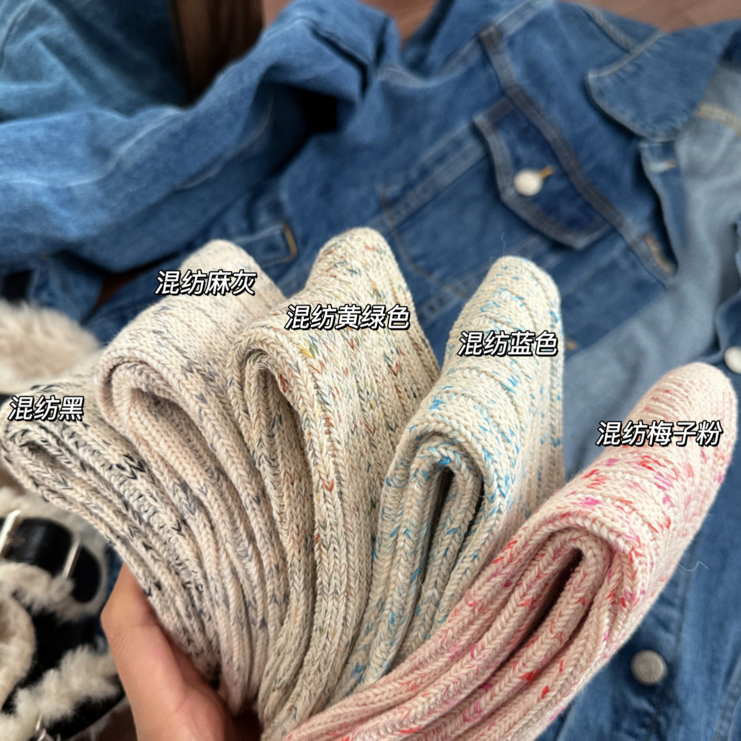 秋冬袜子复古粗线袜日系中筒袜男女棉并线堆堆袜长筒袜韩版情侣袜