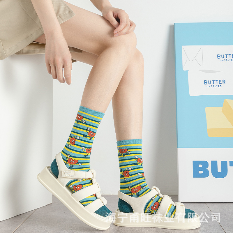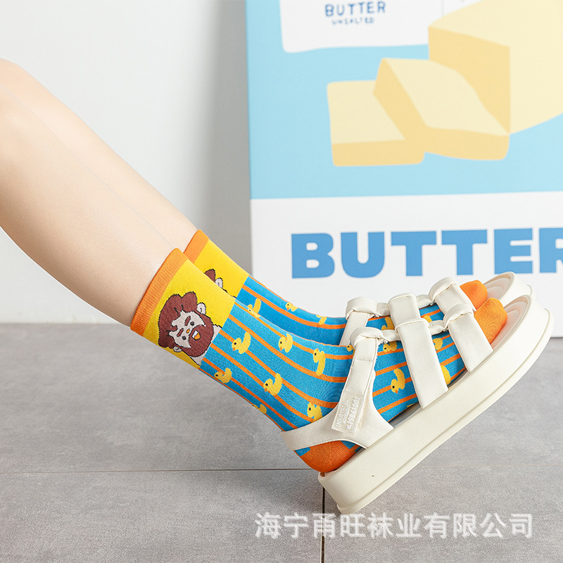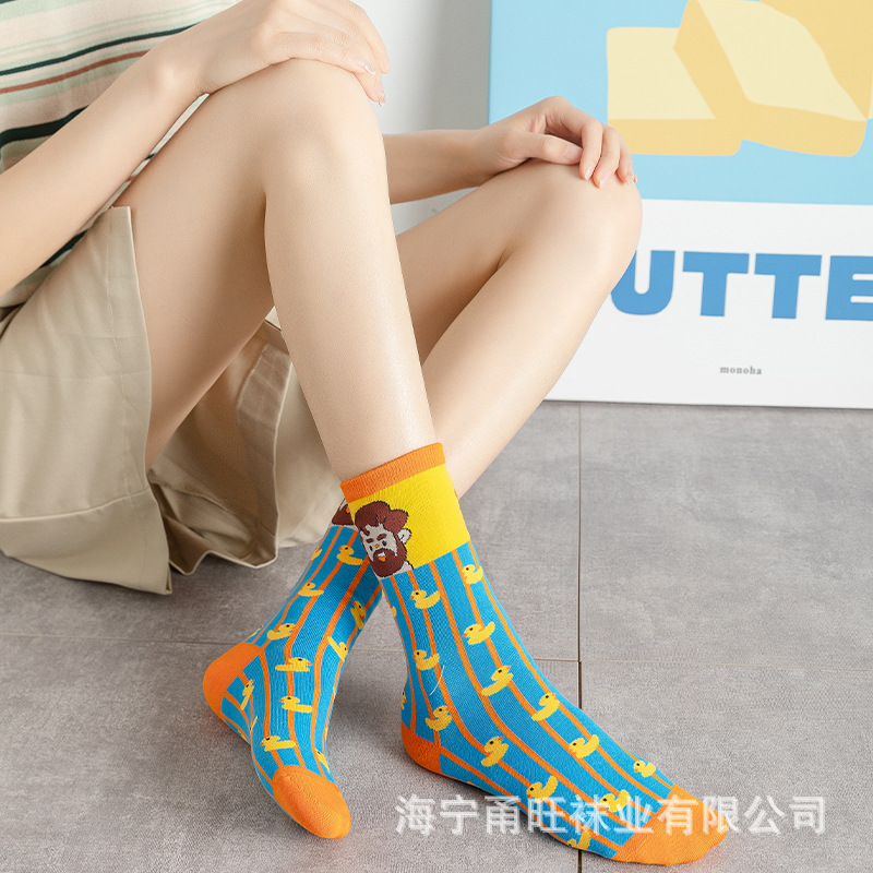春秋款创意袜子女情侣袜个性卡通提花长筒袜ins潮中筒袜现货批发