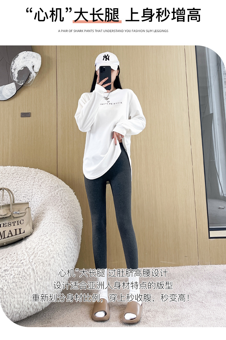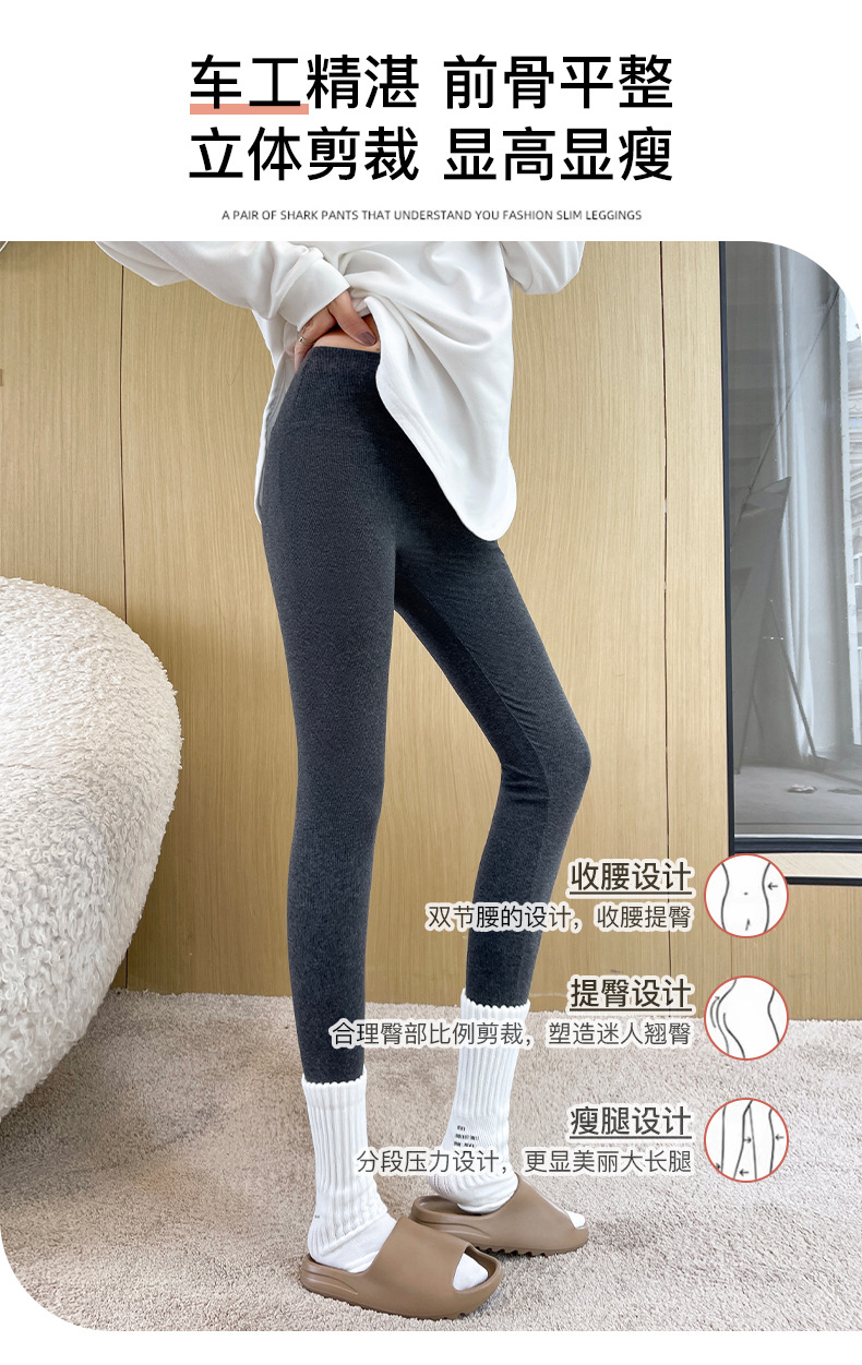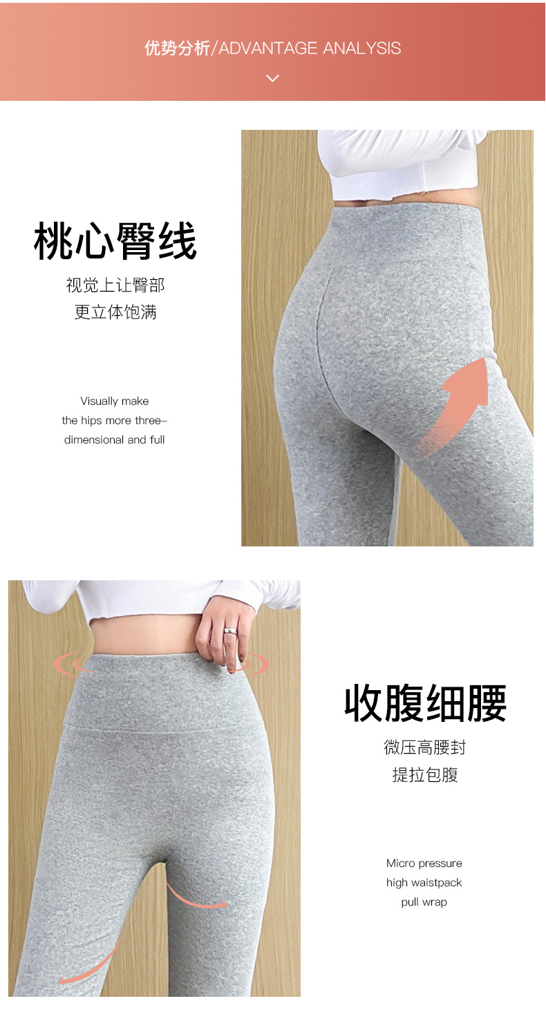 春秋新款女外穿加厚竖条纹螺纹灰色高腰修身提臀显瘦百搭棉打底裤